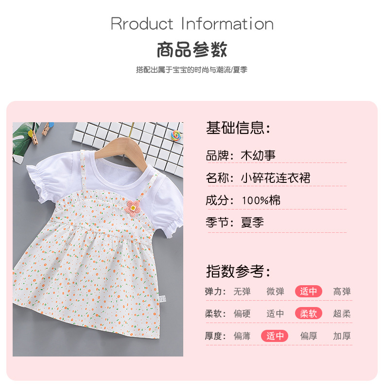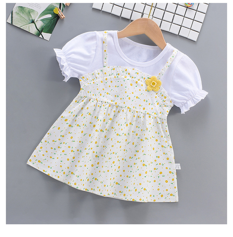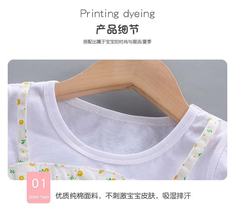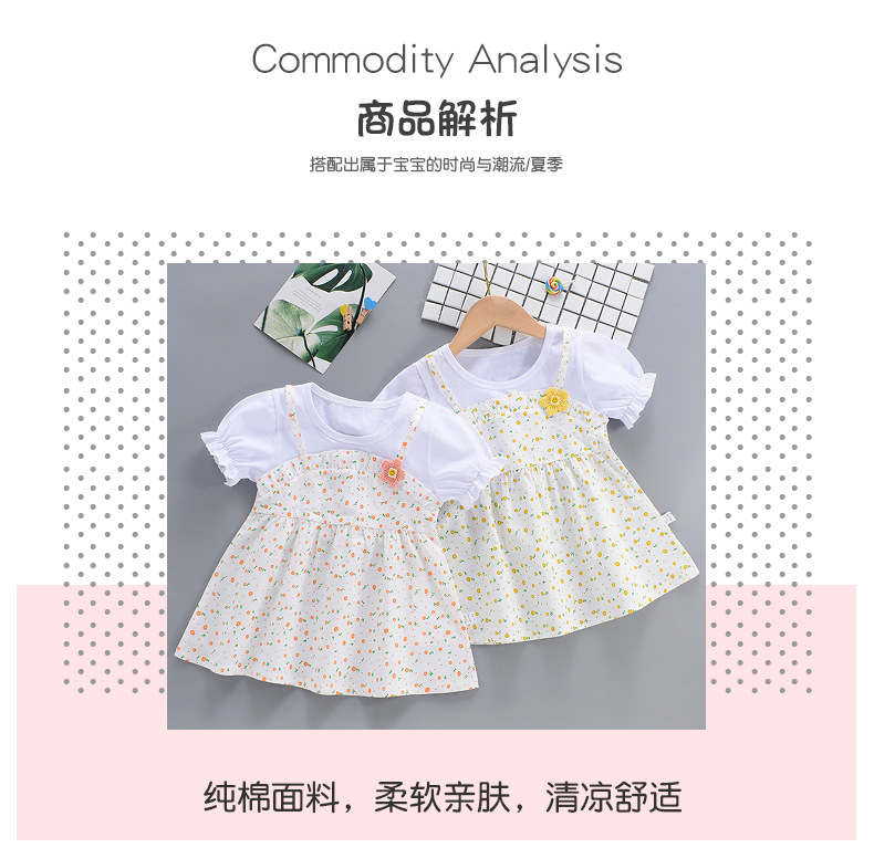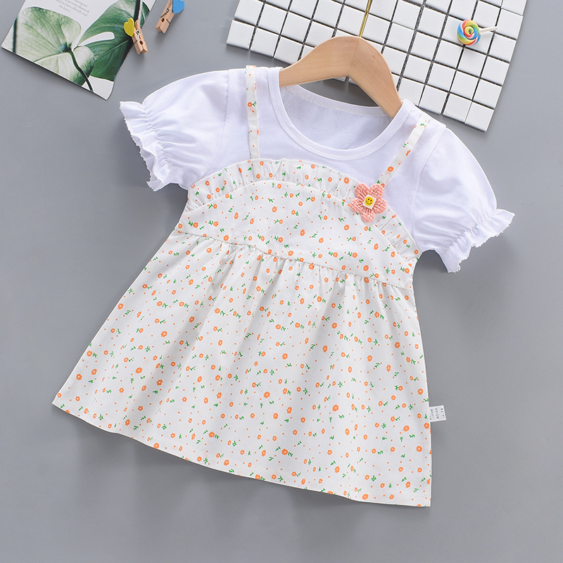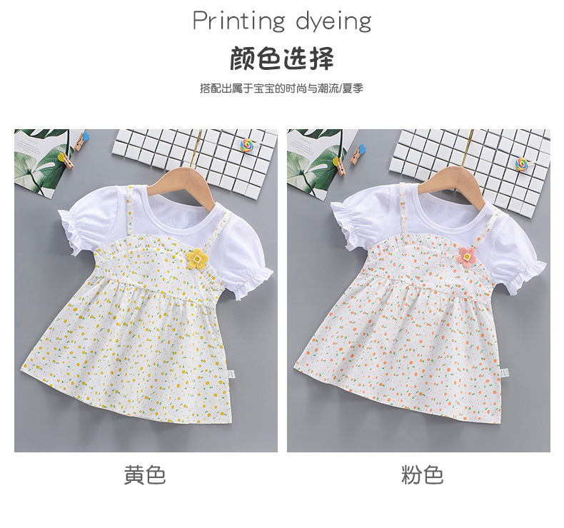여자 드레스 여름 새로운 반팔 얇은 스타일 유행 아기 소녀 가짜 투피스 서스펜더 꽃 치마스토어 가기