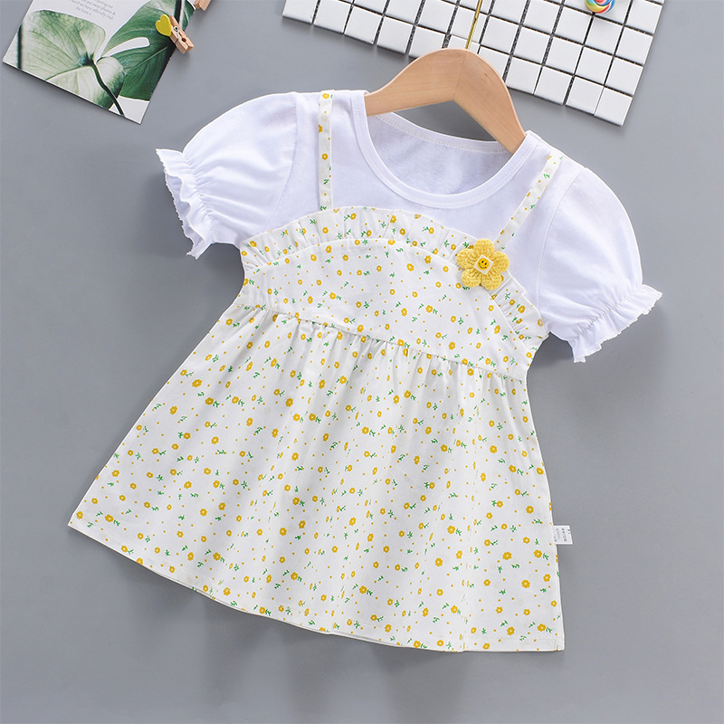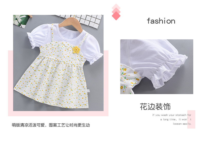여자 드레스 여름 새로운 반팔 얇은 스타일 유행 아기 소녀 가짜 투피스 서스펜더 꽃 치마