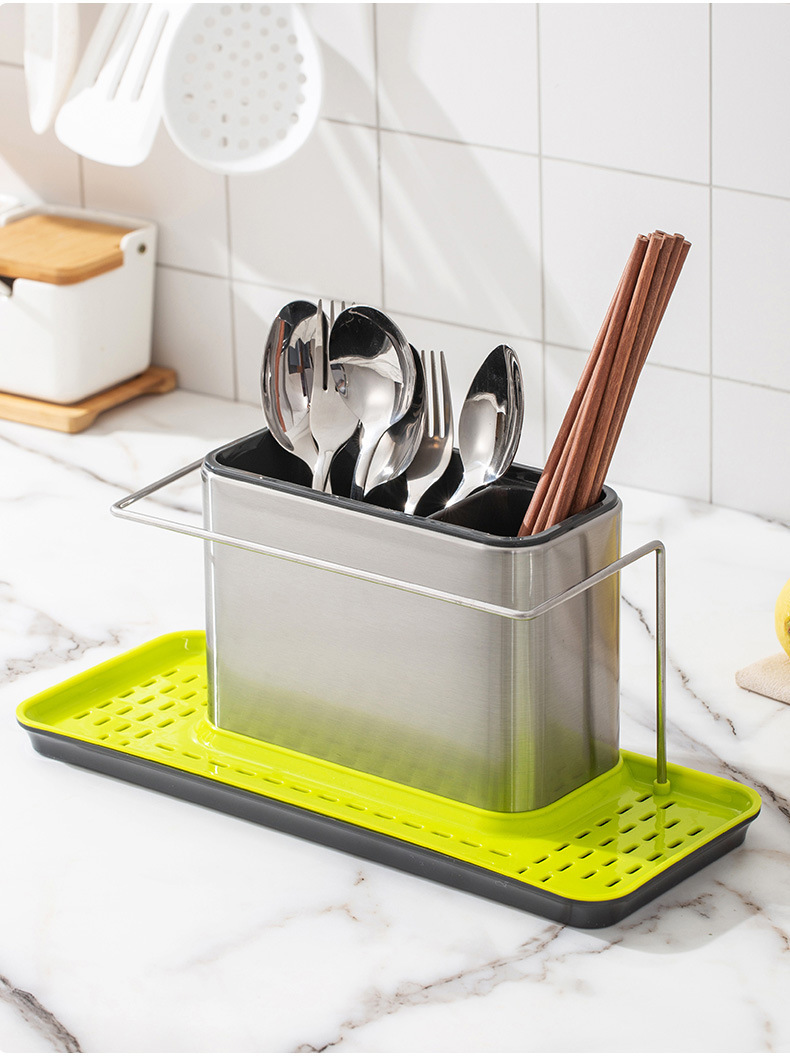 신형 주방 스테인레스 스틸 청소 수납 선반 다기능 쓰리인원 세척 액체 병 젓가락 주방용품 마무리 선반스토어 가기
