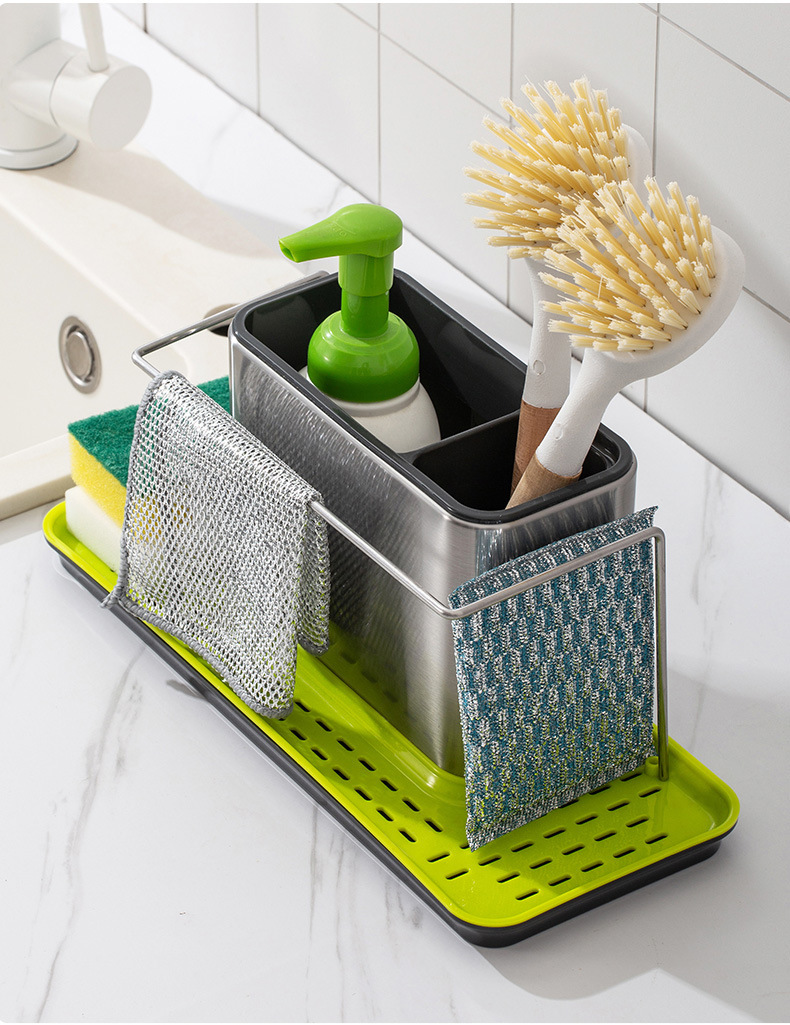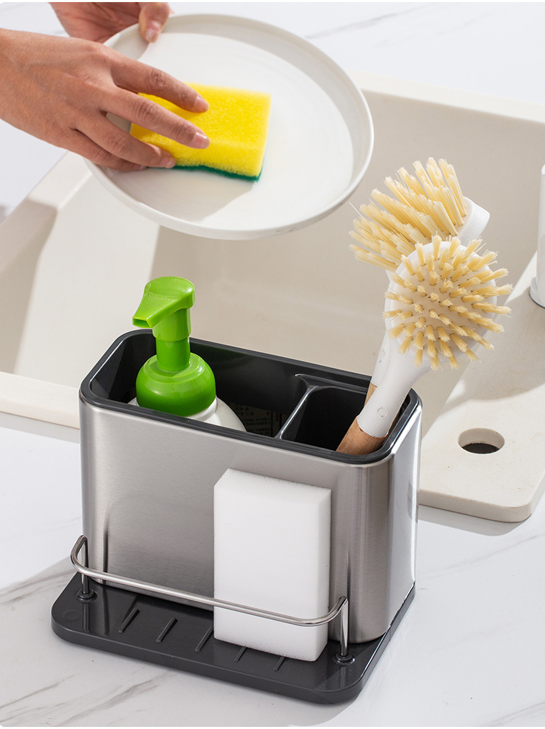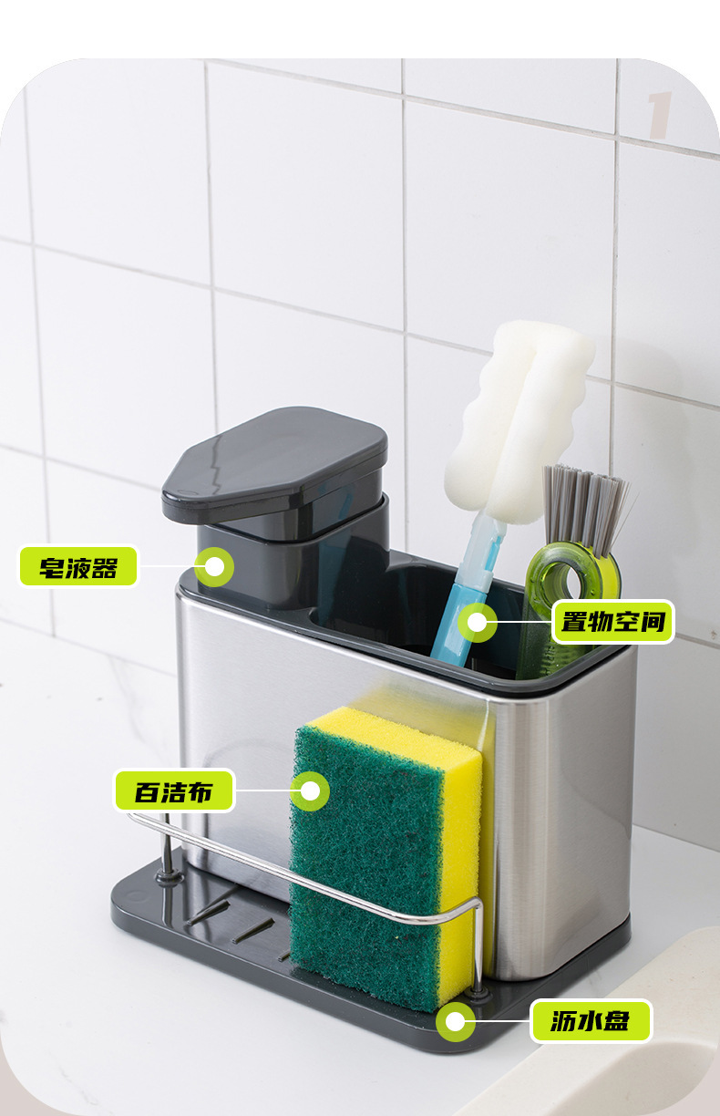 신형 주방 스테인레스 스틸 청소 수납 선반 다기능 쓰리인원 세척 액체 병 젓가락 주방용품 마무리 선반