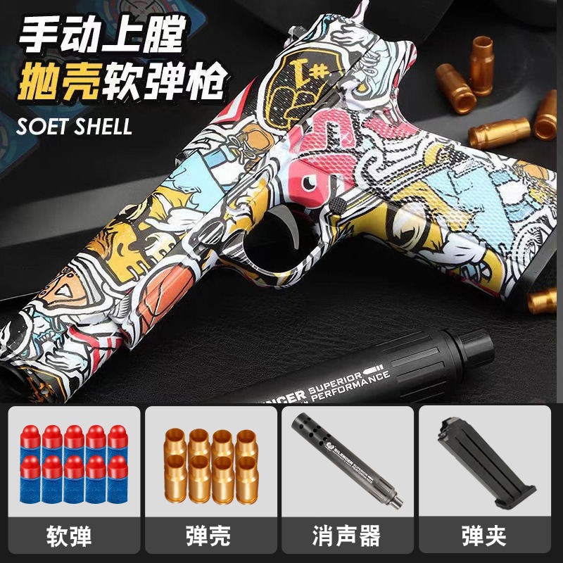 골드 데저트 이글 쉘 소프트 총알 총 m1911 권총 글록 어린이 장난감 시뮬레이션 도매 총알 롭