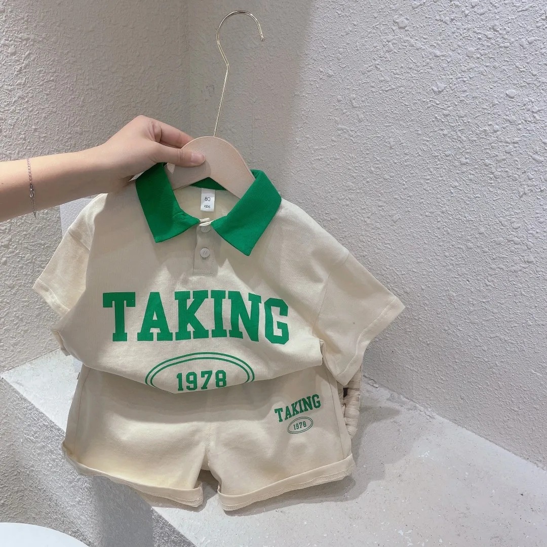 소년 소녀 아기 여름 세트 2023 새로운 외국 스타일 순면 어린이 유행 잘 생긴 셔츠 투피스 패션스토어 가기