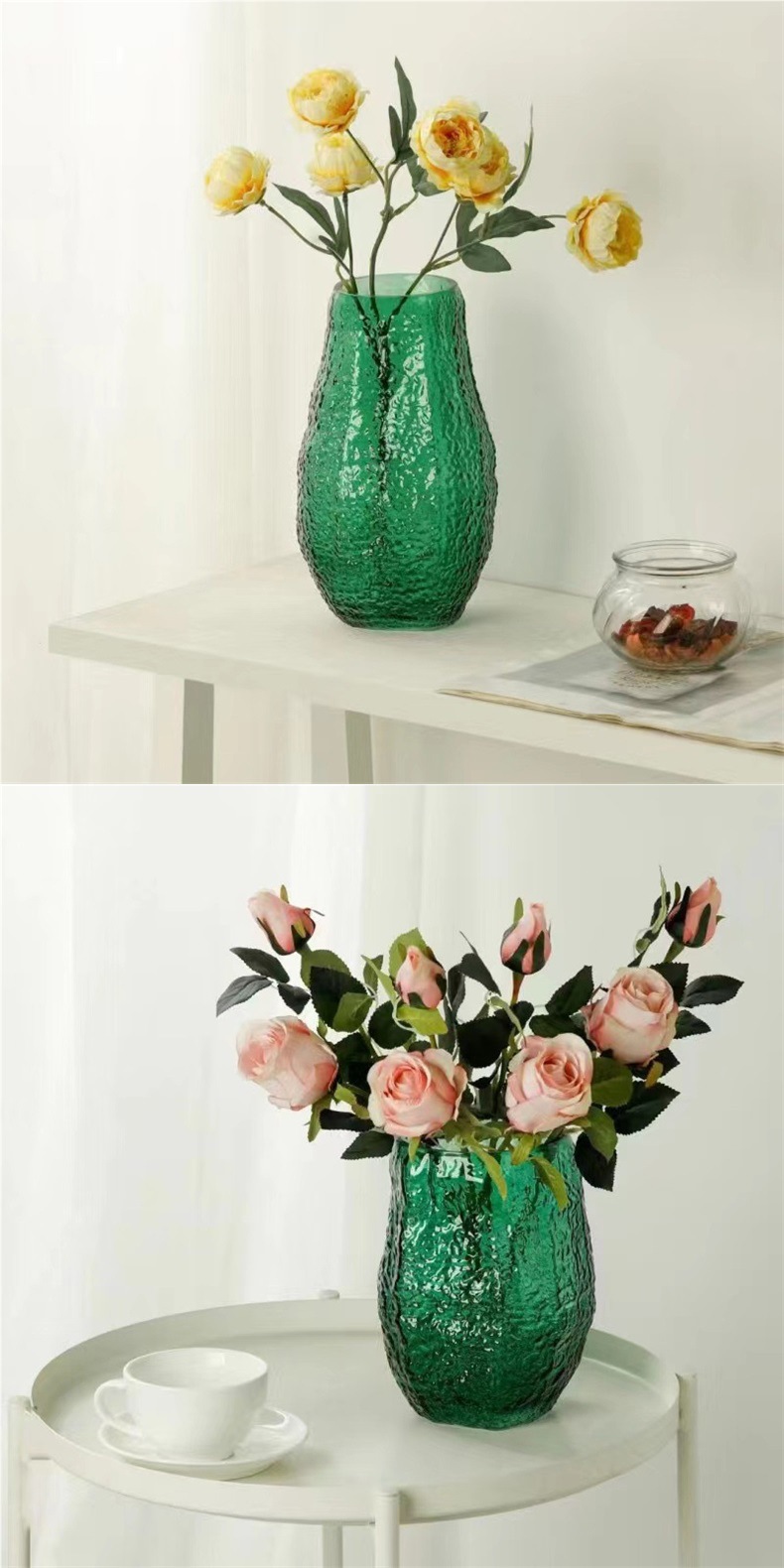 도매 현대 간단한 모든 경기 황금 매미 녹색 유리 꽃병 빛 럭셔리 거실 커피 테이블 식탁 수경 꽃 배열 장식품스토어 가기