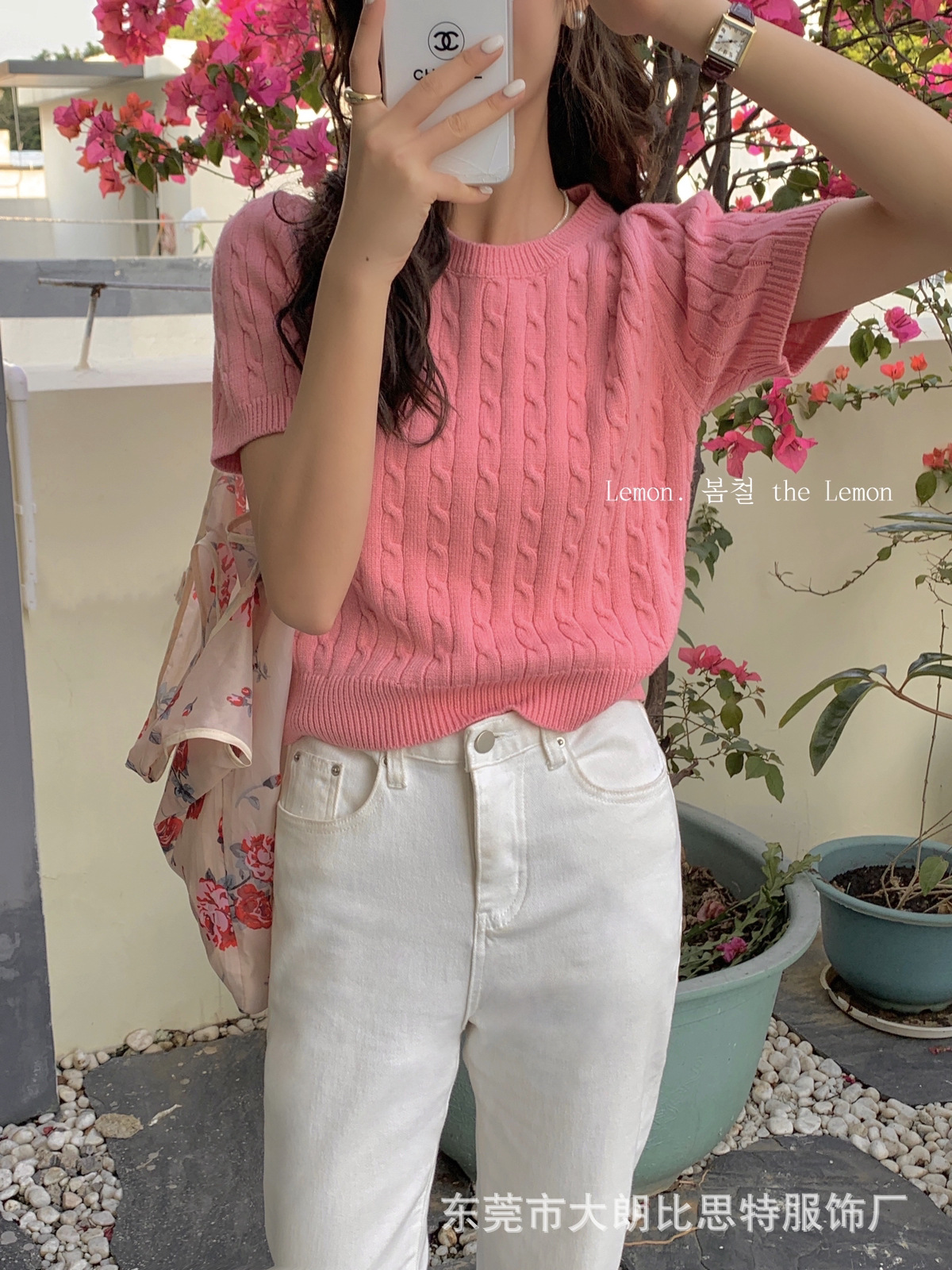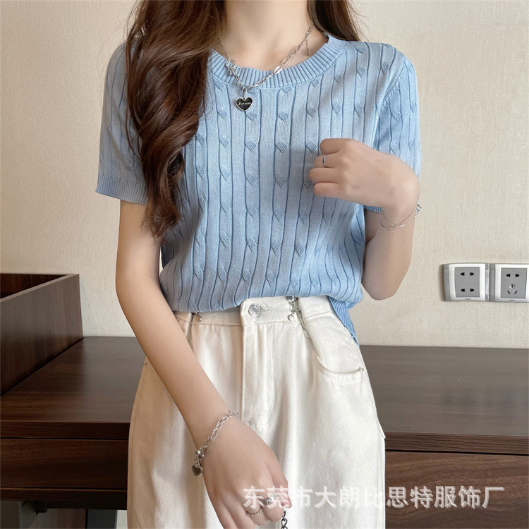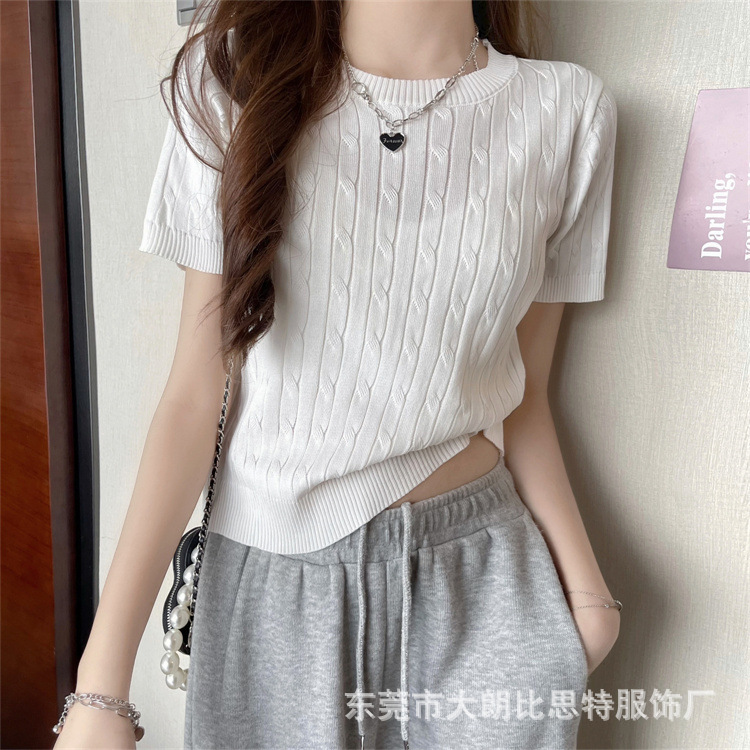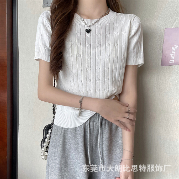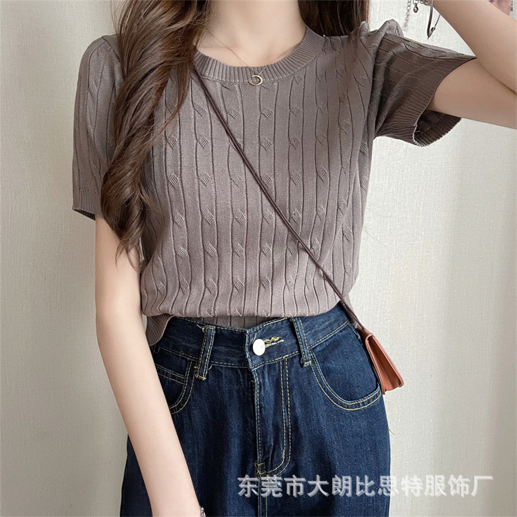 빈티지 라운드 넥 반팔 티셔츠 여성용 얇은 여름 디자인 틈새 시크 슬림핏 쇼트 탑스토어 가기