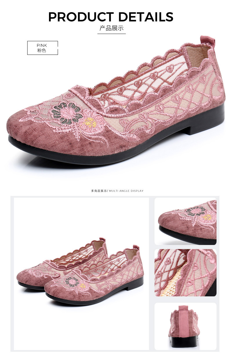 봄과 여름 새로운 여성 신발 오래 된 베이징 천 신발 여성 메쉬 신발 통기성 메쉬 플랫 편안한 엄마 노인을위한 신발