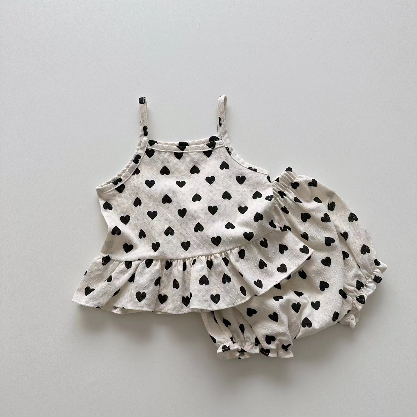한국 여름 아기 소녀의 슬링 인형 셔츠 반바지 투피스 세트 어린이 아기의 서양식 탑 러브 세트스토어 가기
