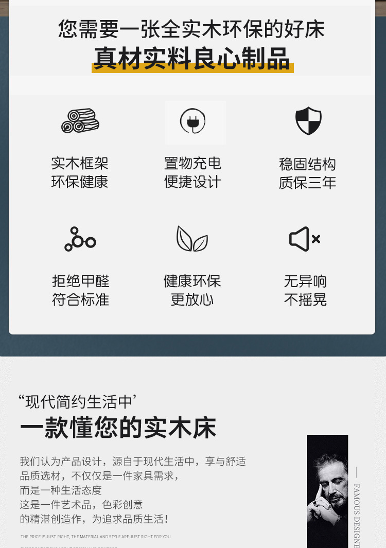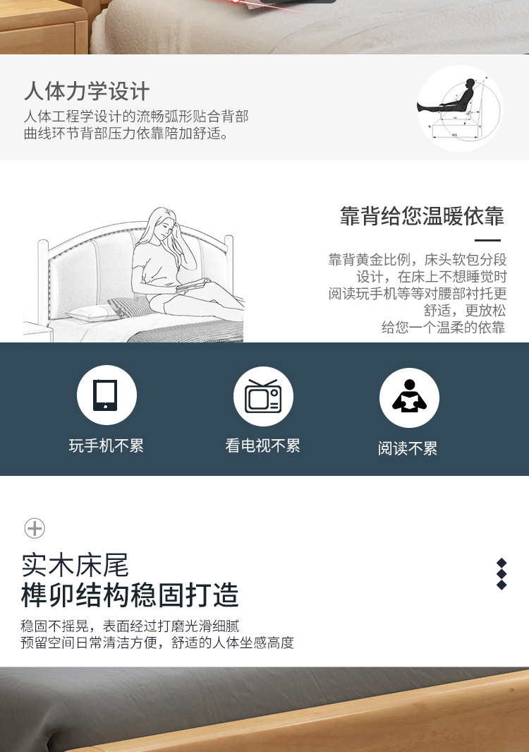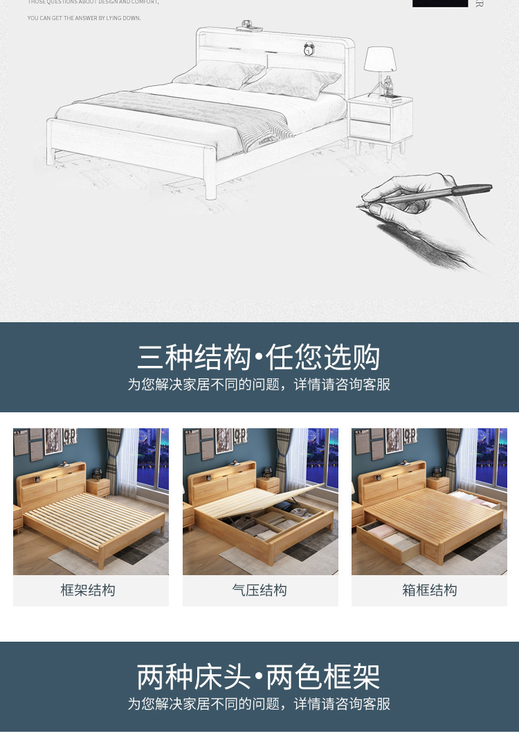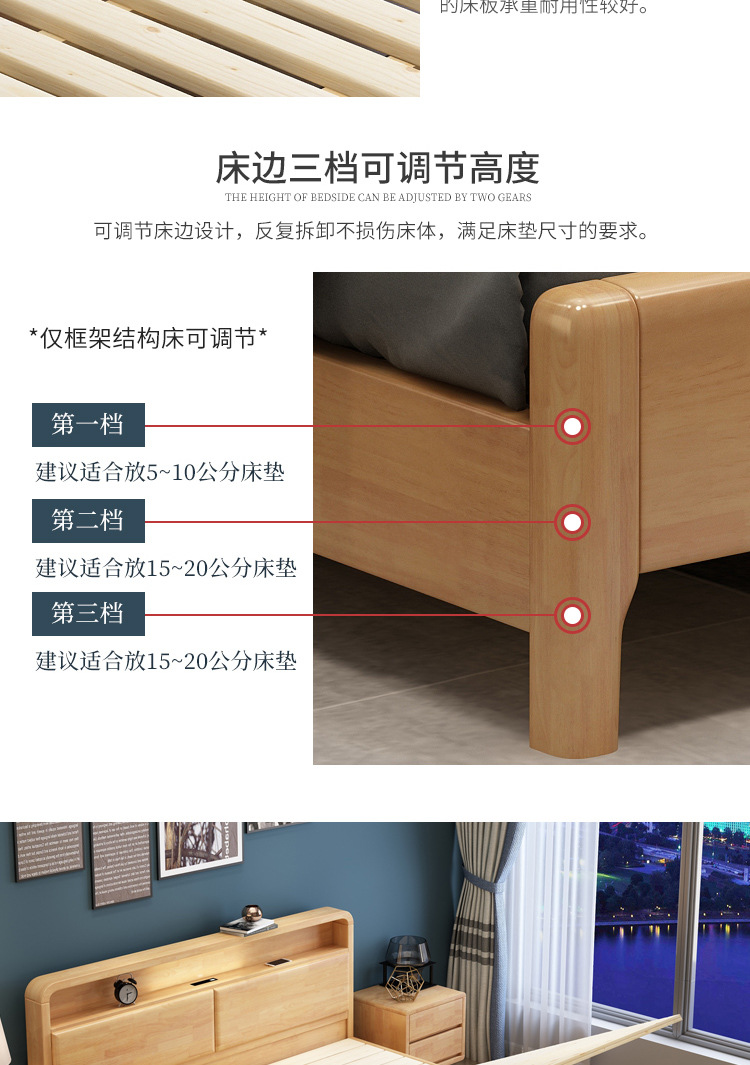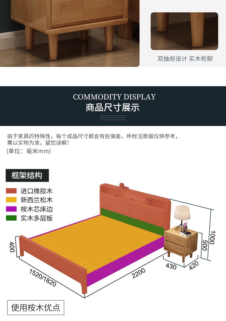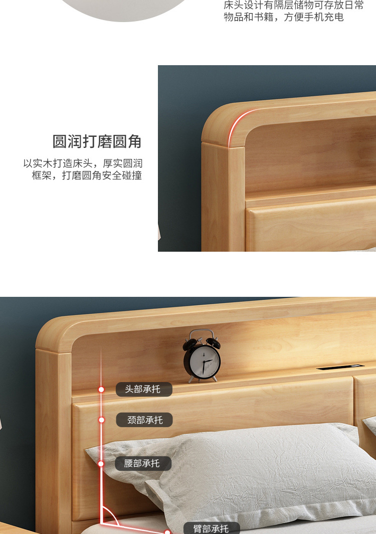 북유럽 현대 간단한 단단한 나무 침대 1.2 m 1.5 m 1.8 m 충전식 야간 조명 침대가있는 부드러운 더블 침대