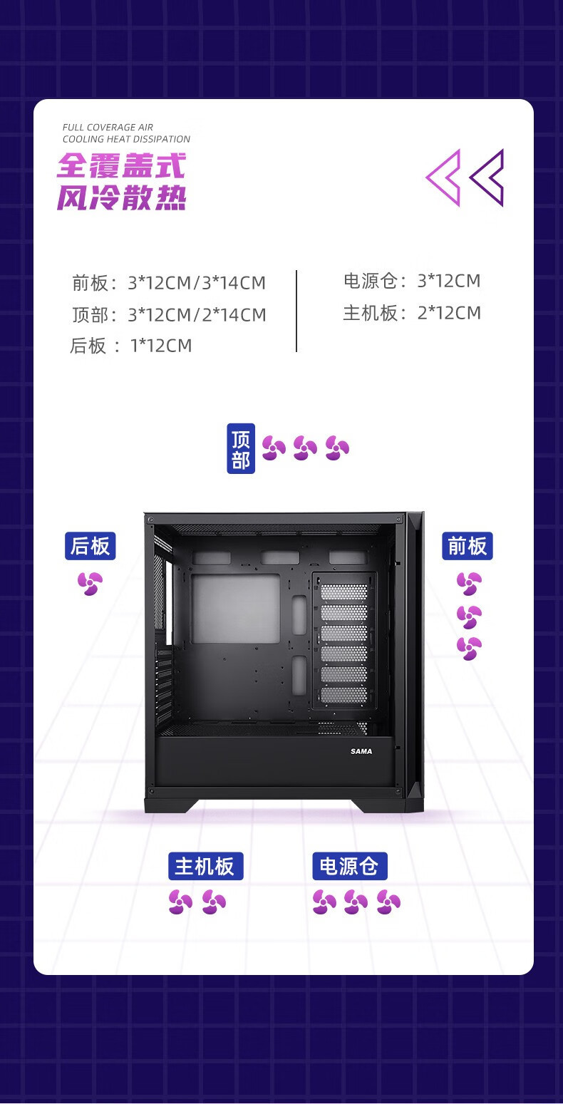 ATX xianma SAMA yanzhishen 컴퓨터 케이스 12 팬 비트/더블 360 수냉식 비트/멀티 디스크 비트에 적용 가능