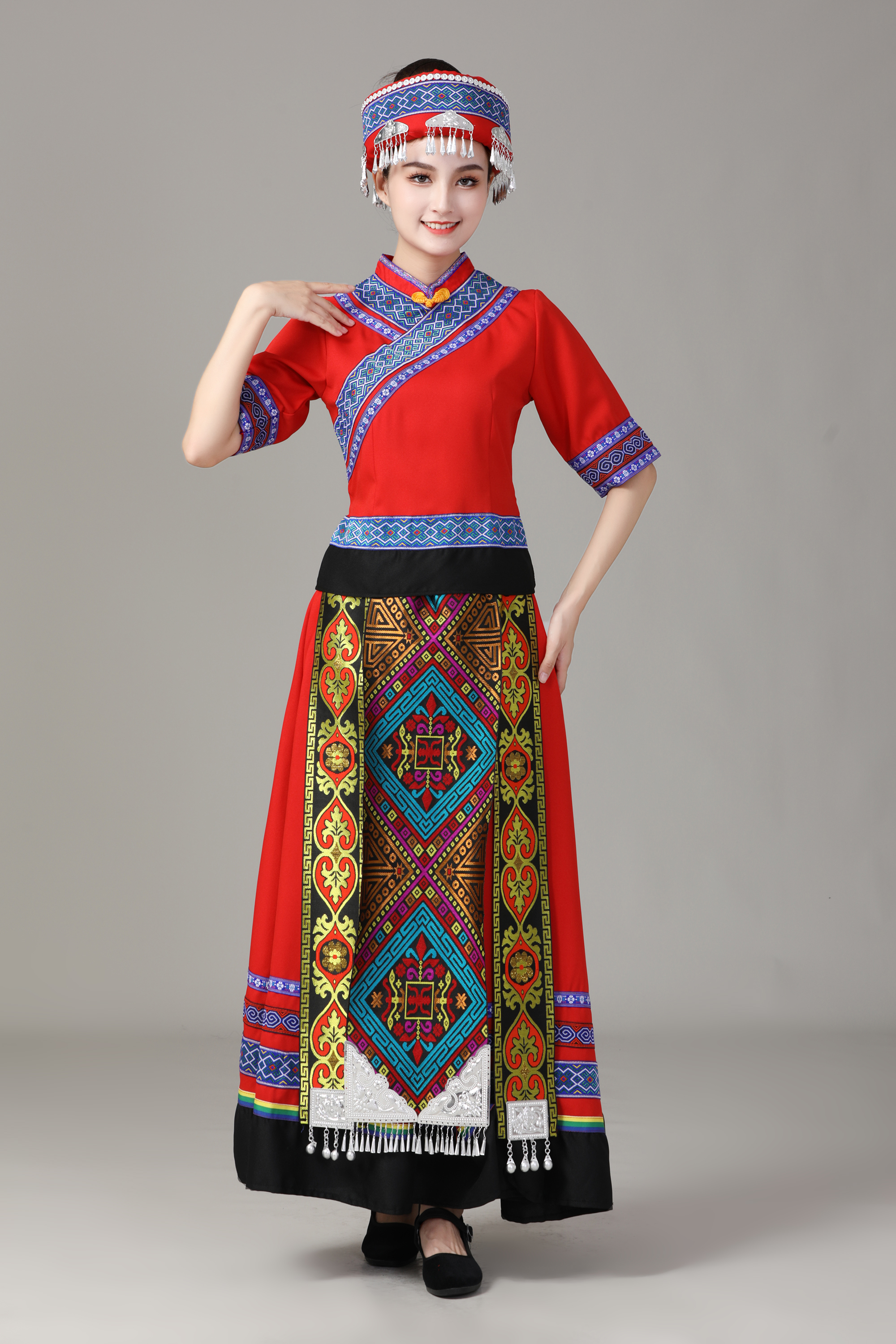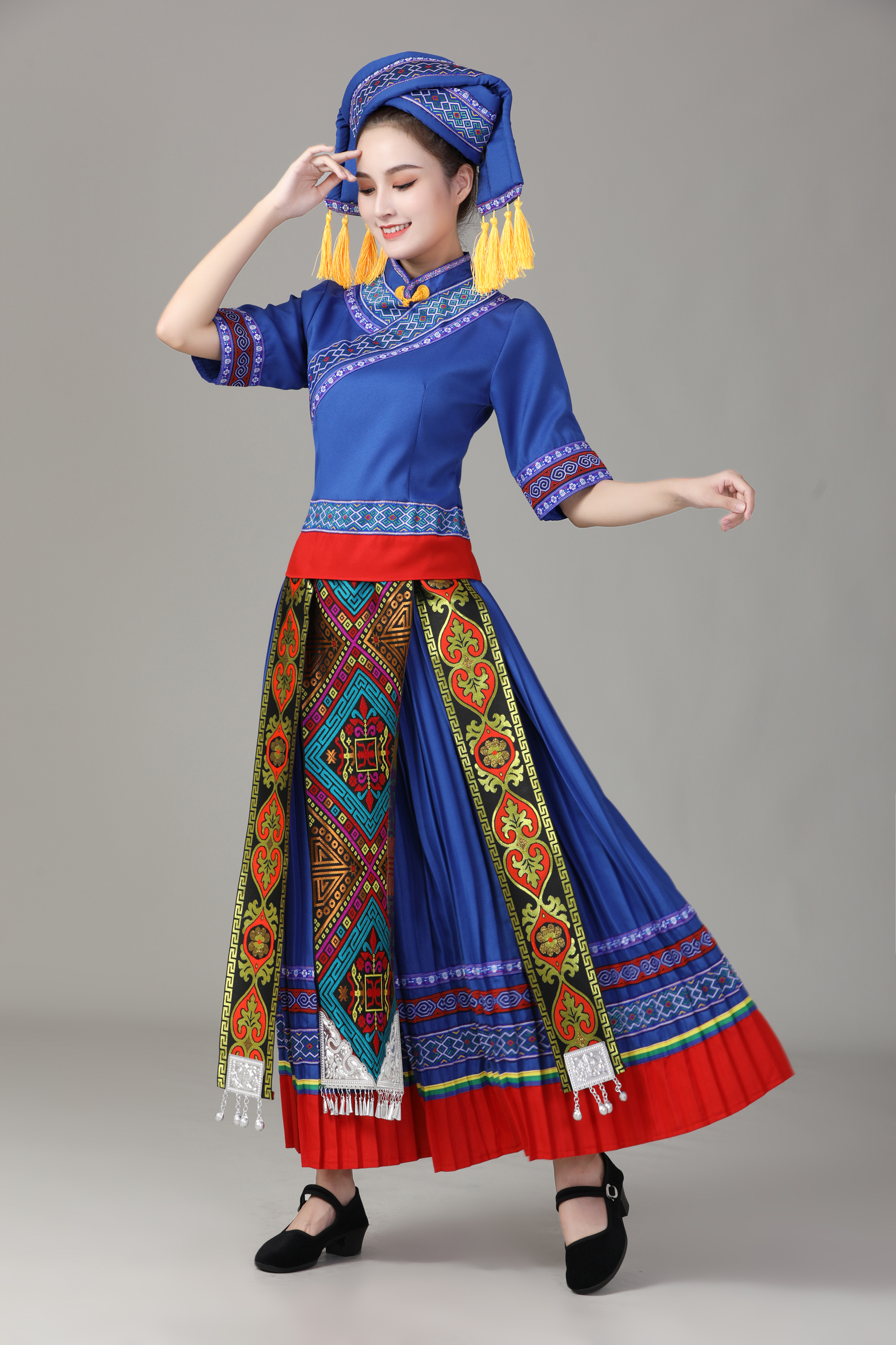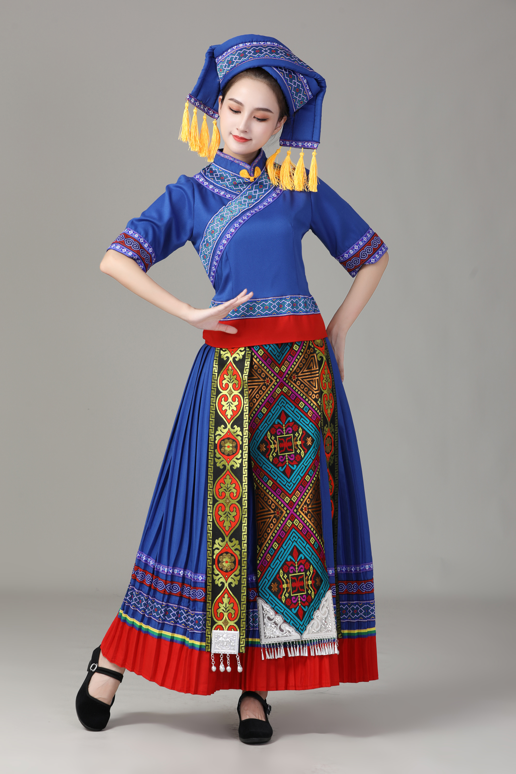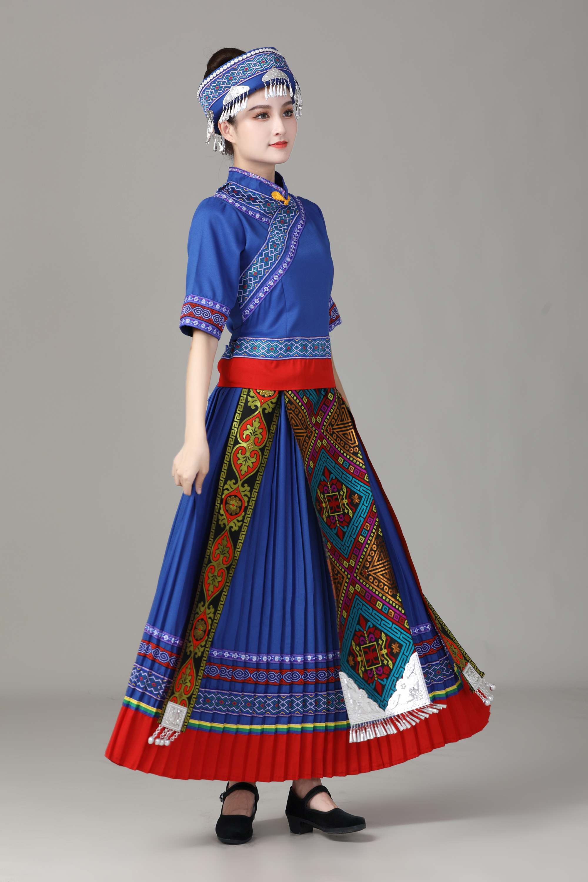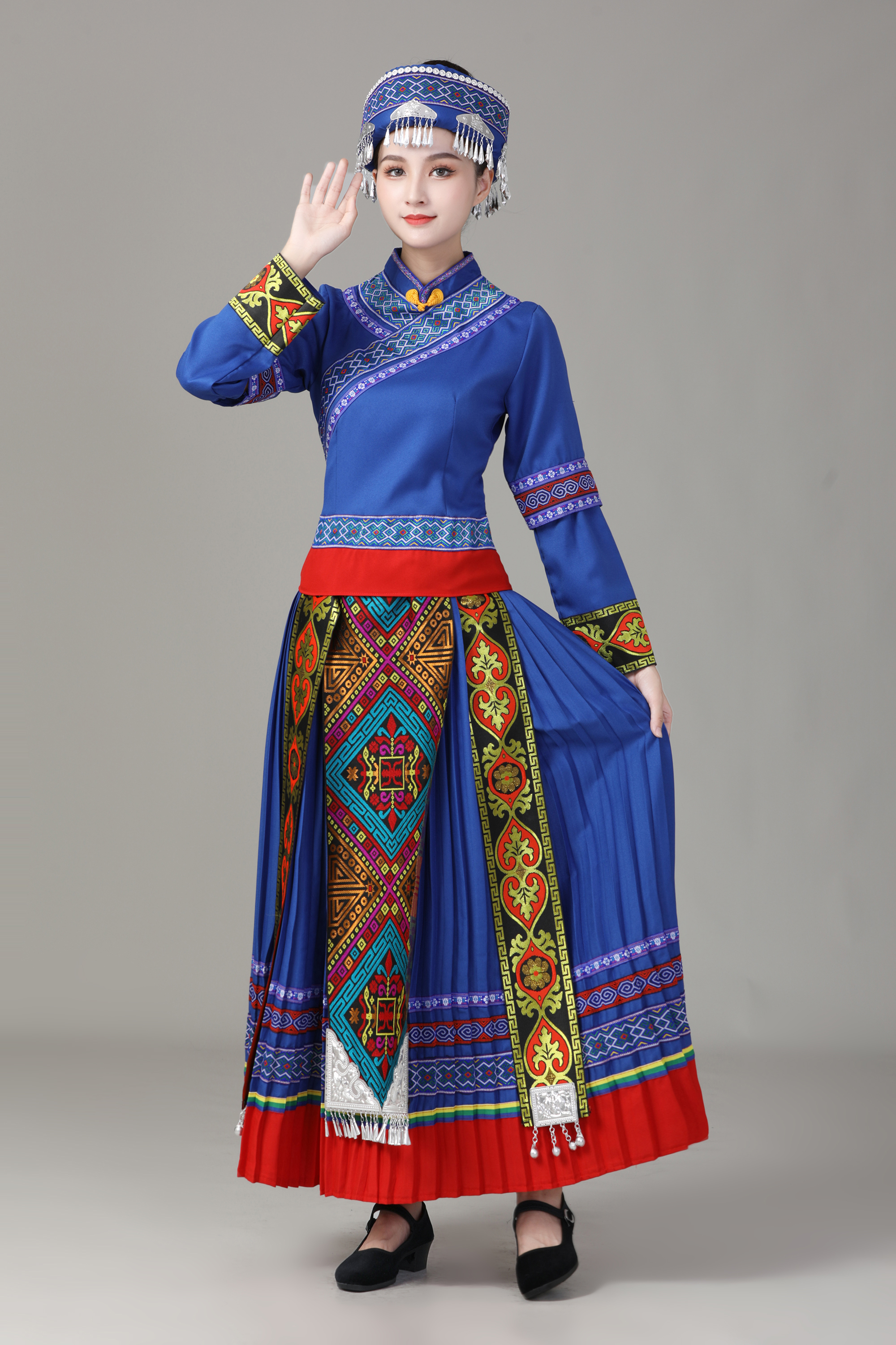민족 여성 독룡족 전통의상 성인 무대 댄스 공연 의상 합창 공연 의상 세트