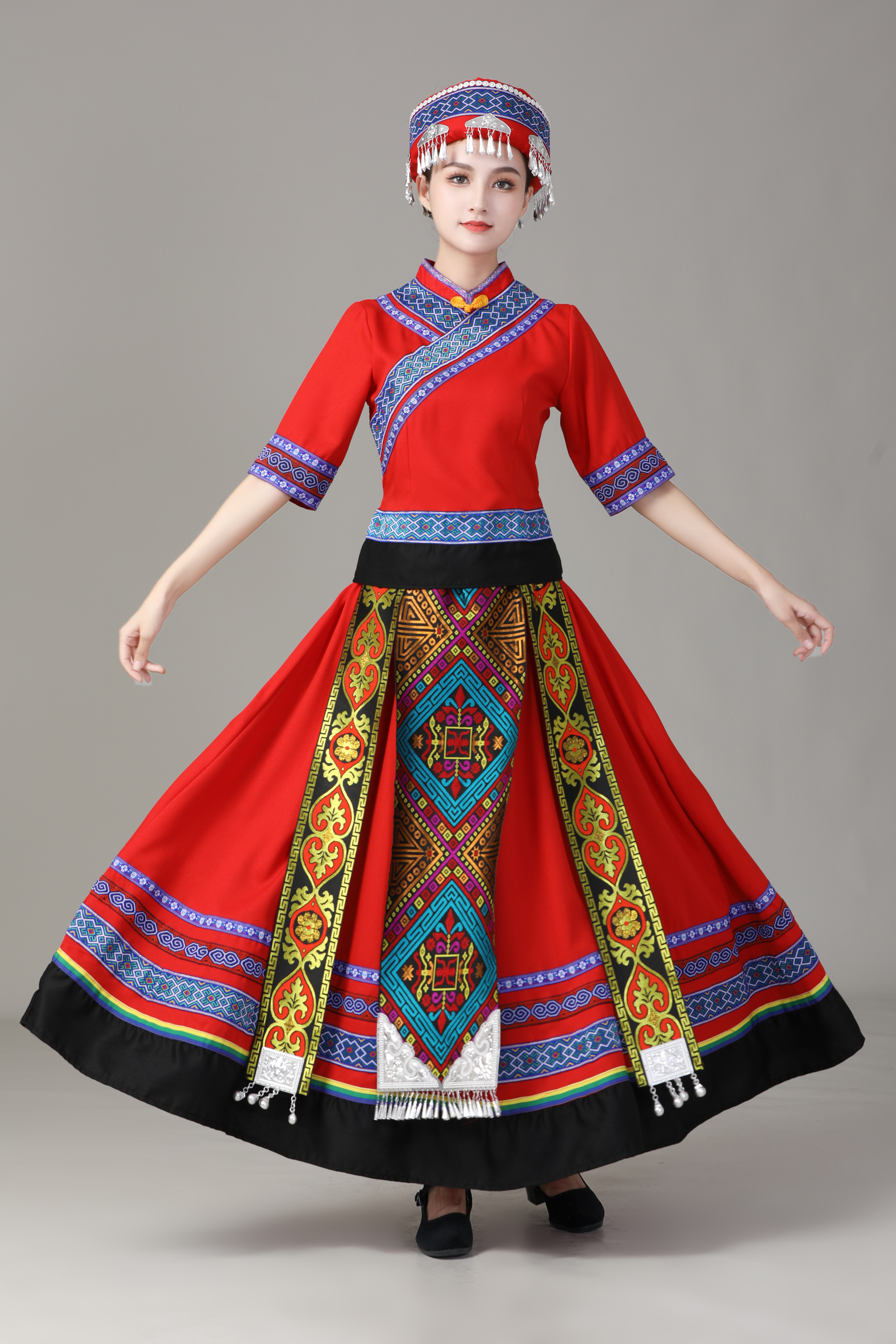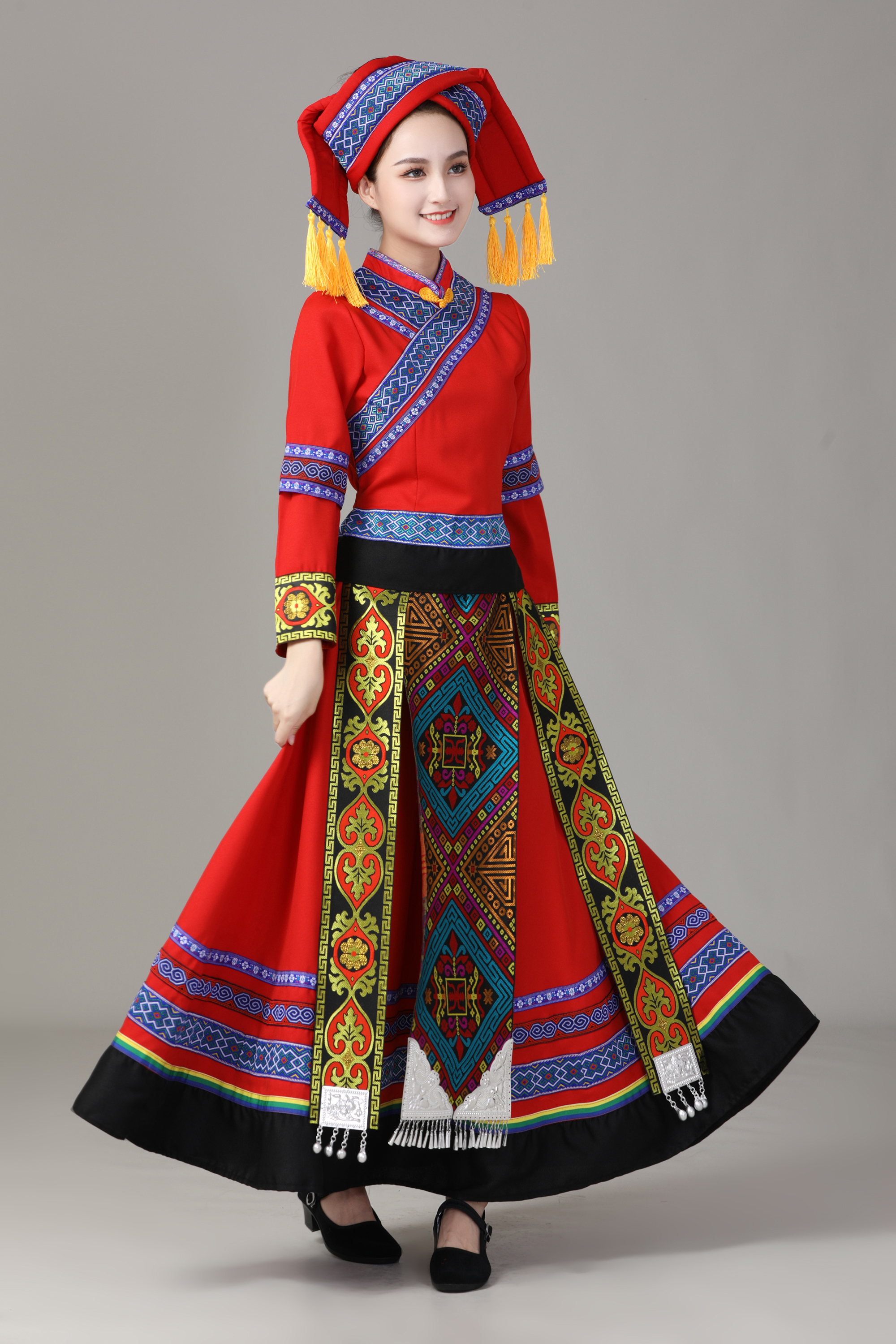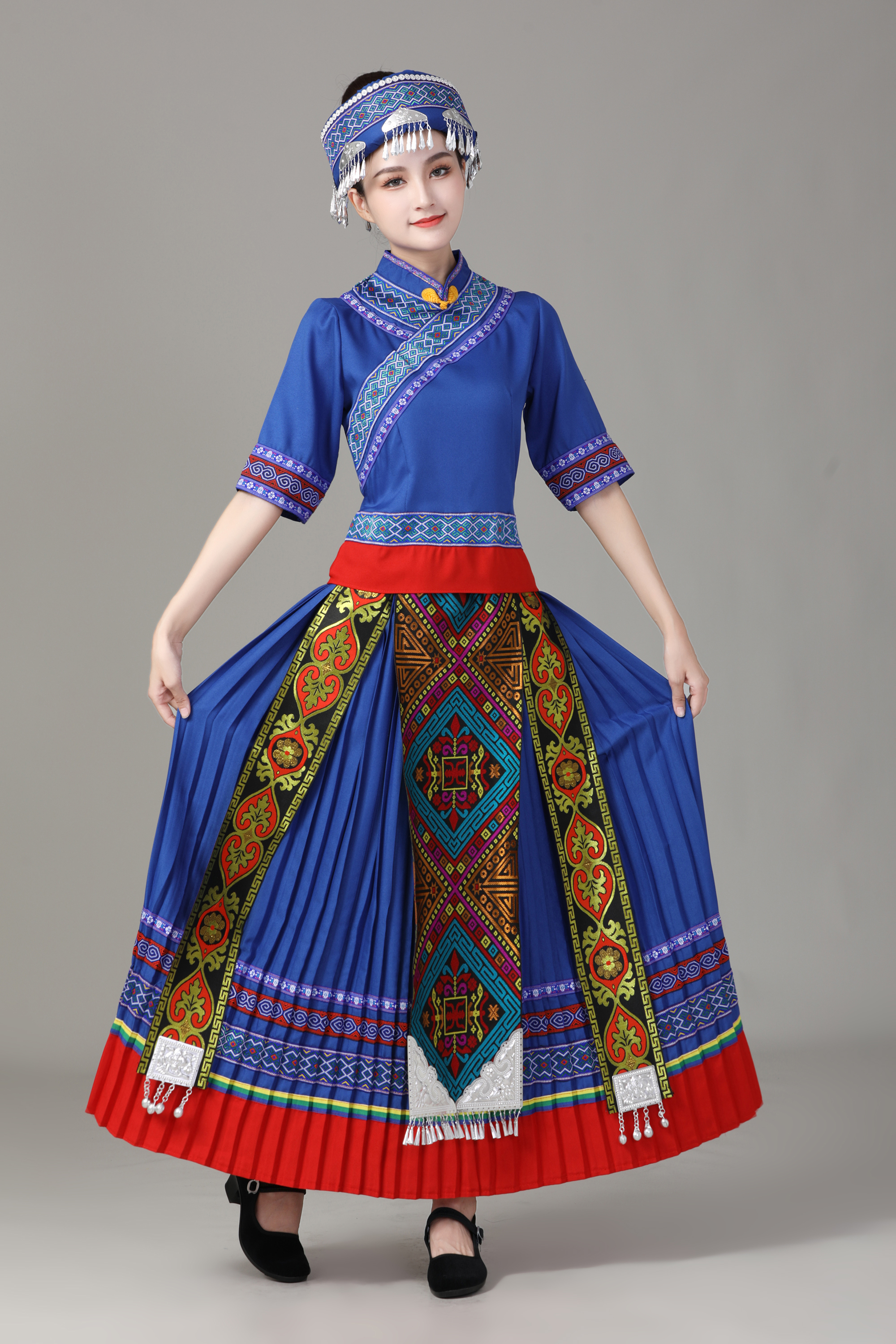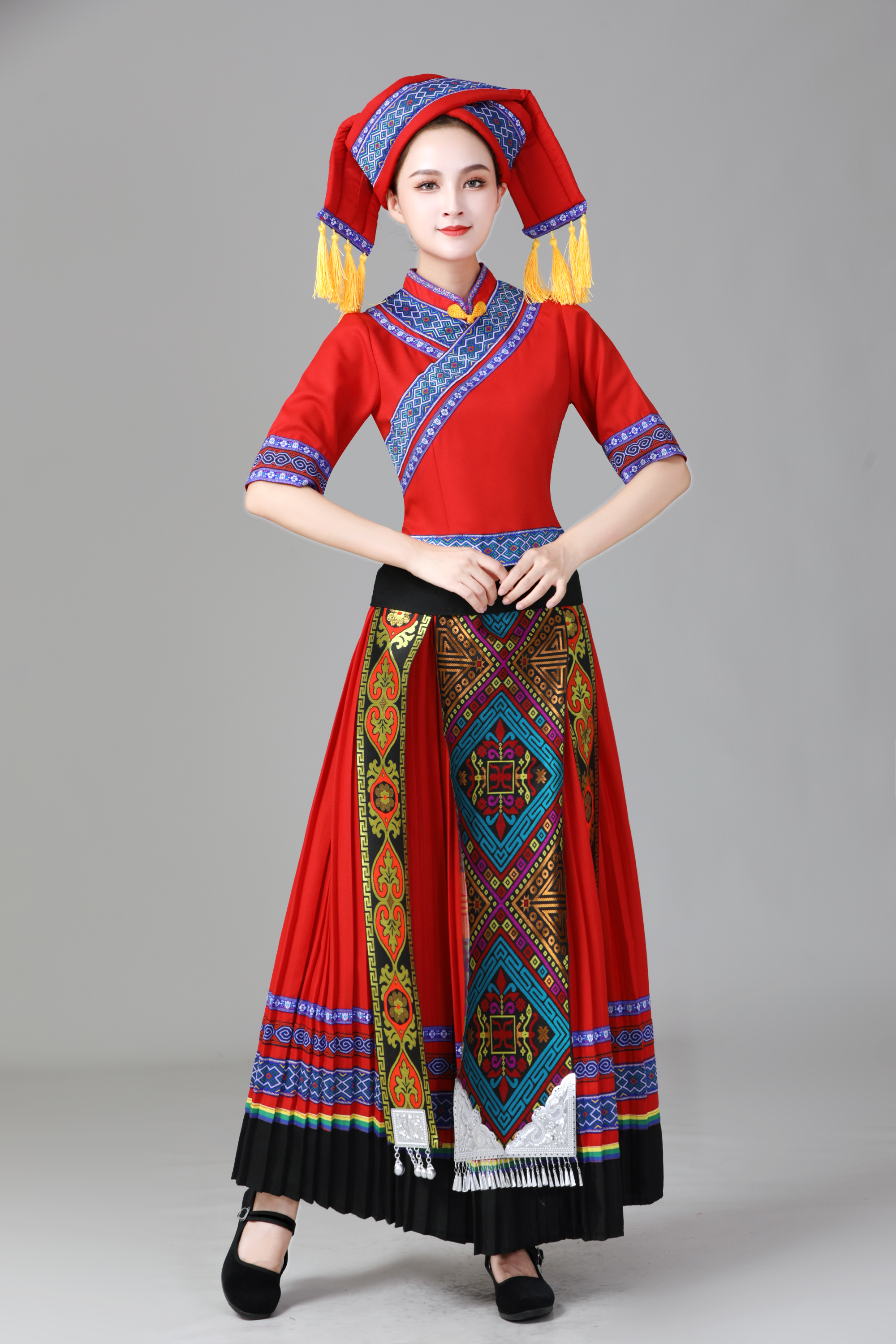민족 여성 독룡족 전통의상 성인 무대 댄스 공연 의상 합창 공연 의상 세트