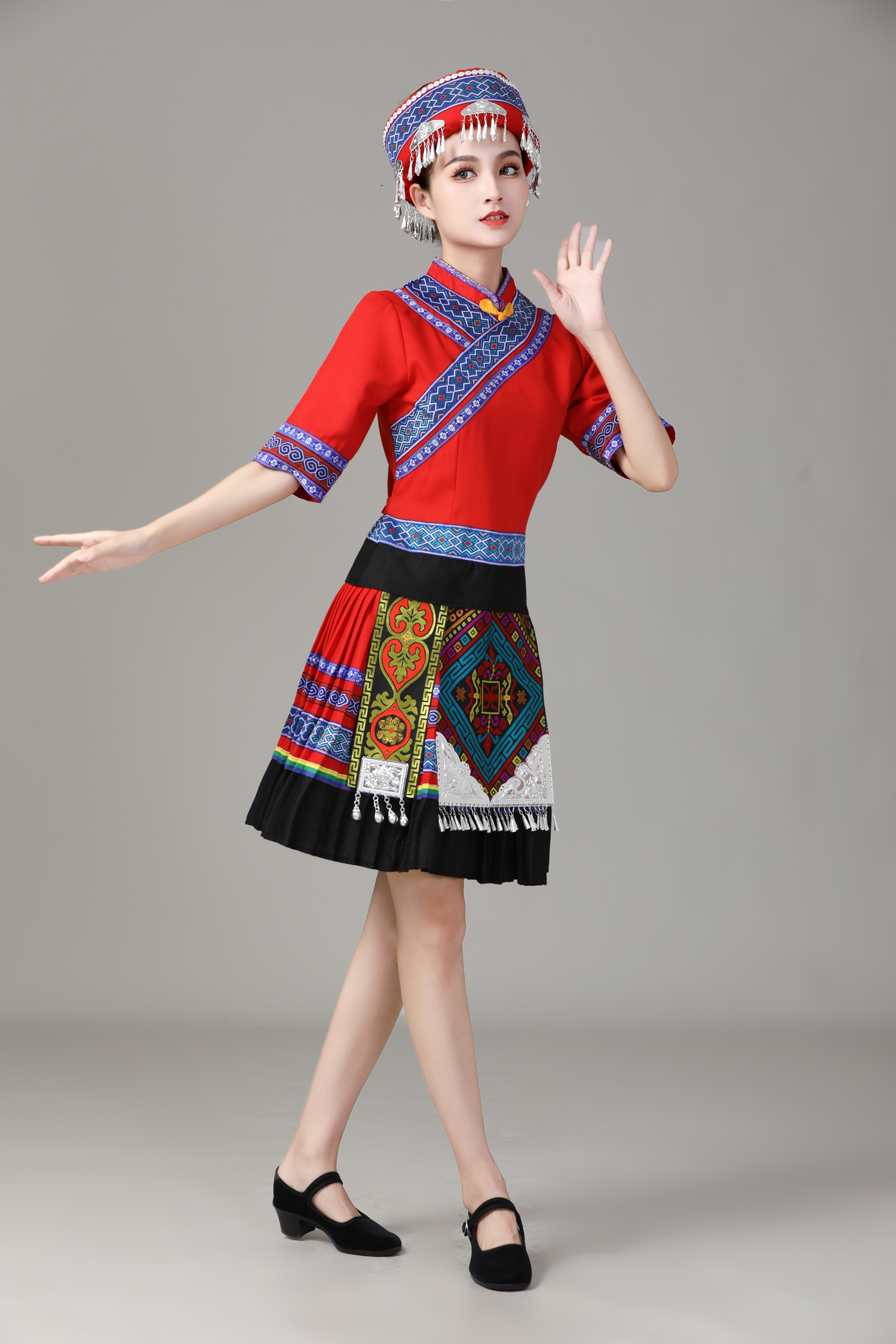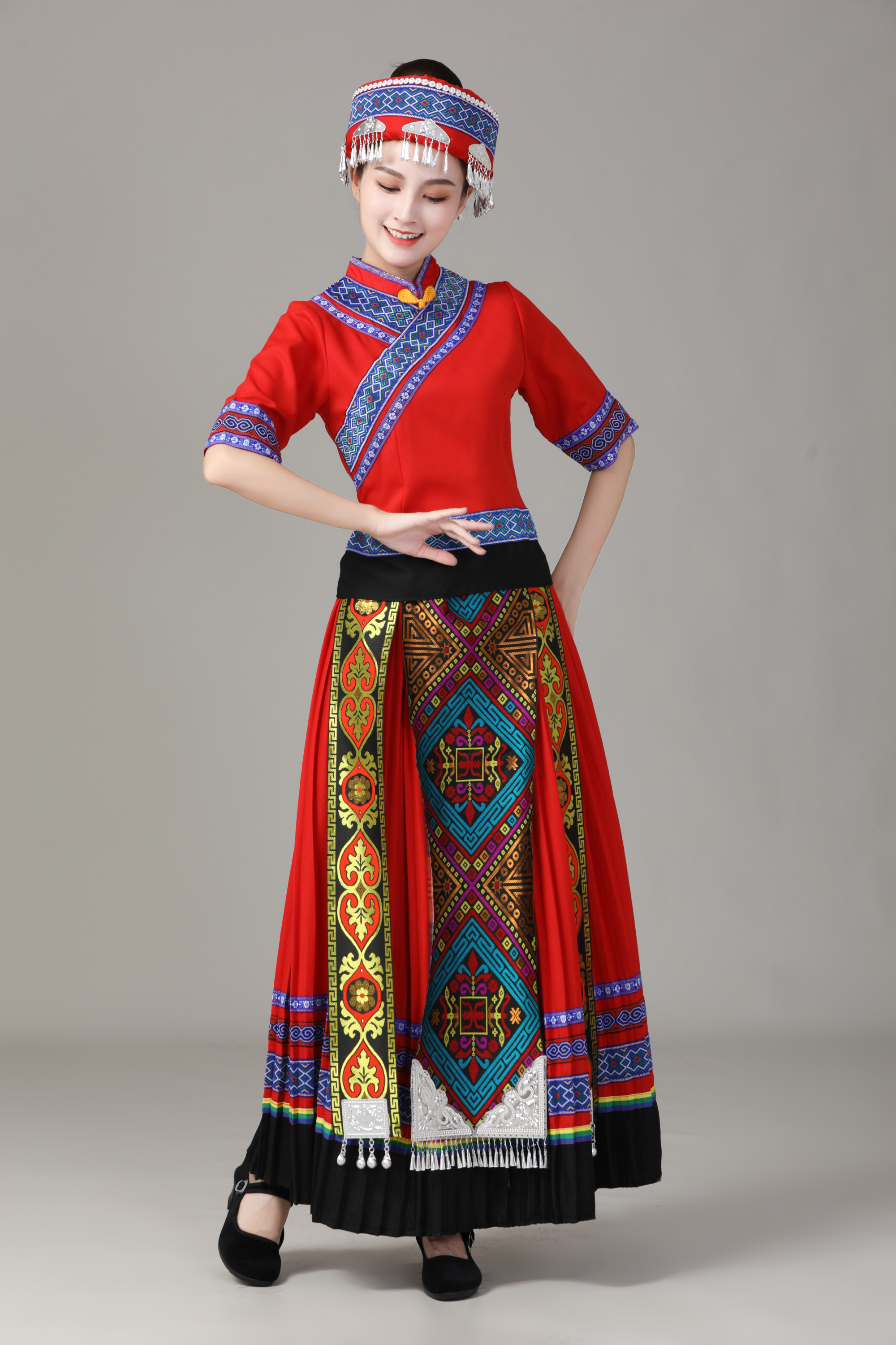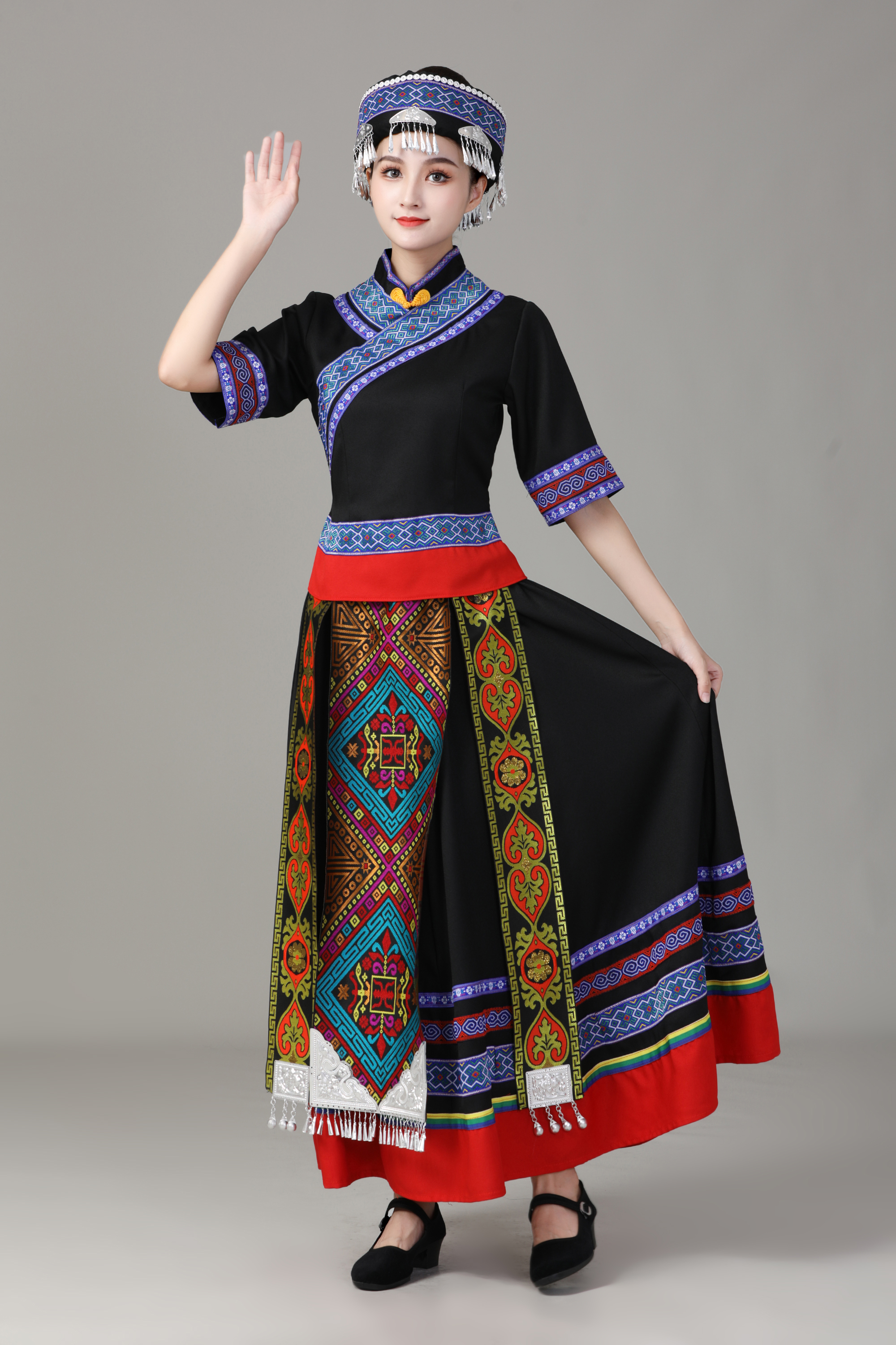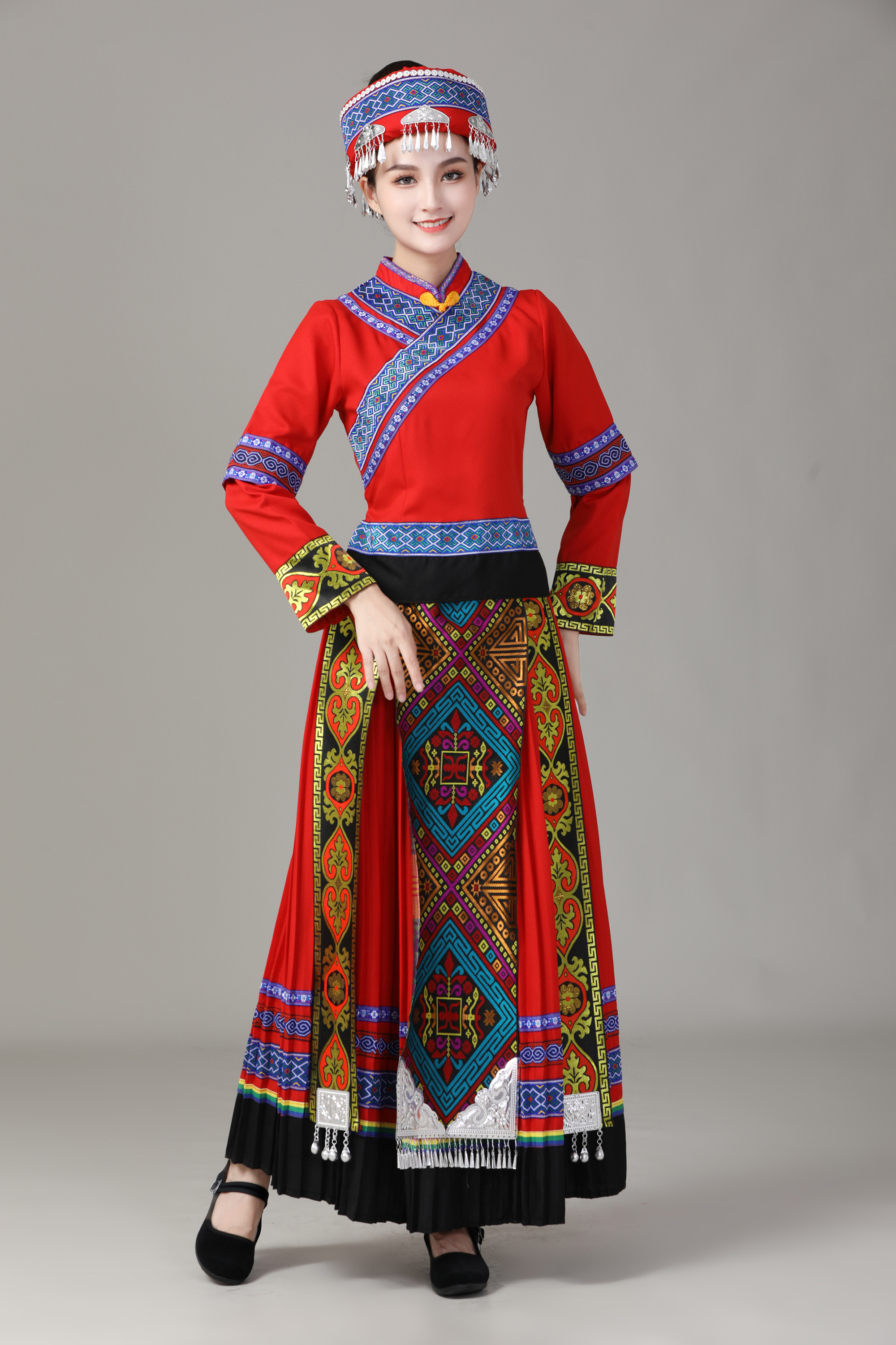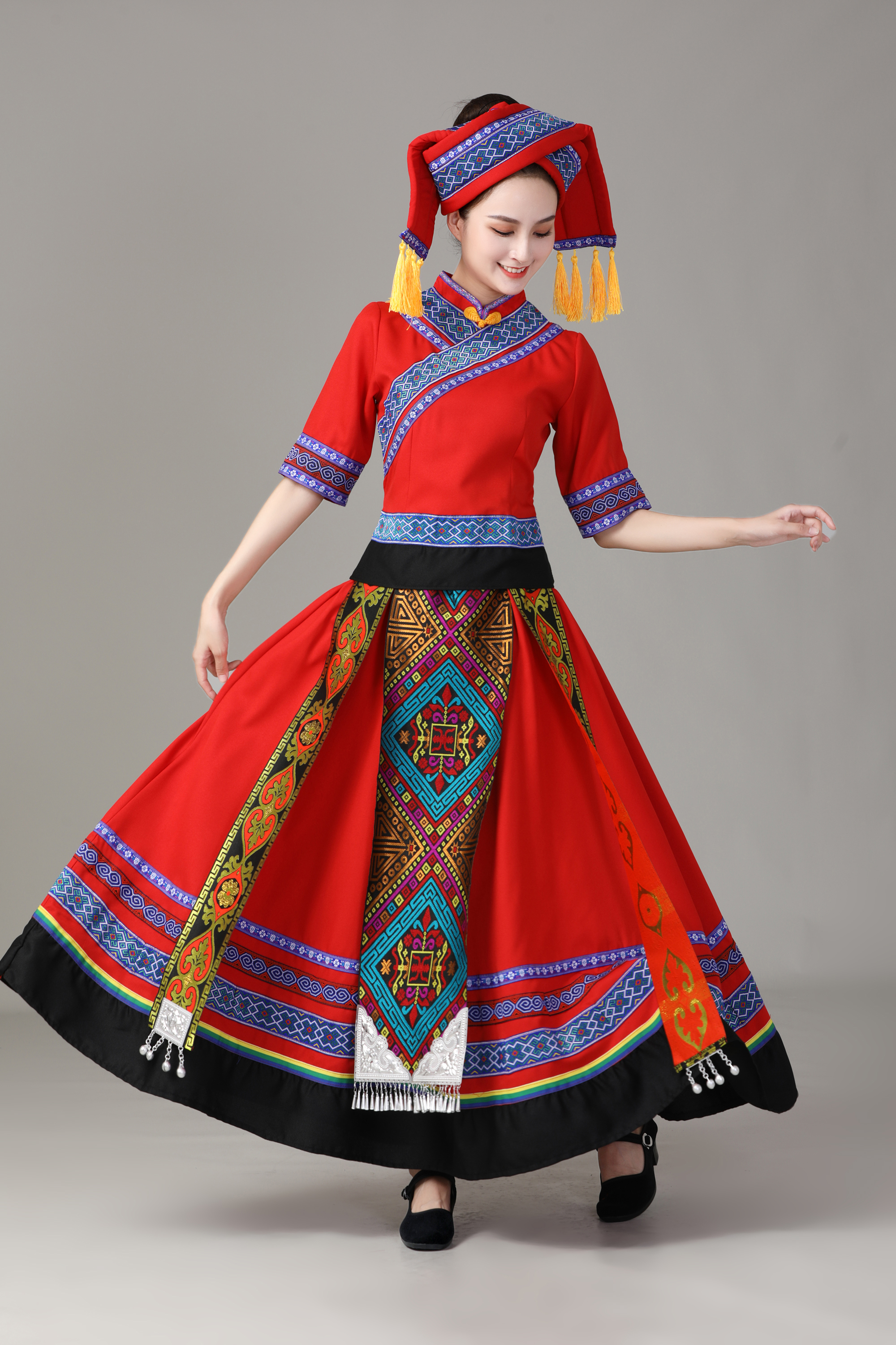민족 여성 독룡족 전통의상 성인 무대 댄스 공연 의상 합창 공연 의상 세트