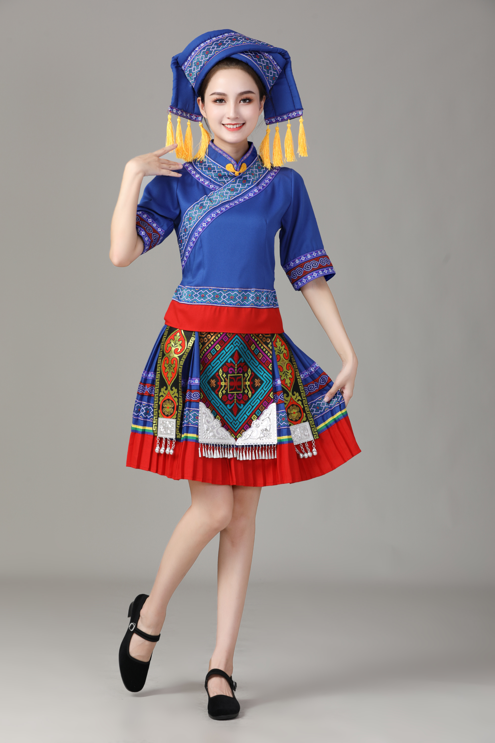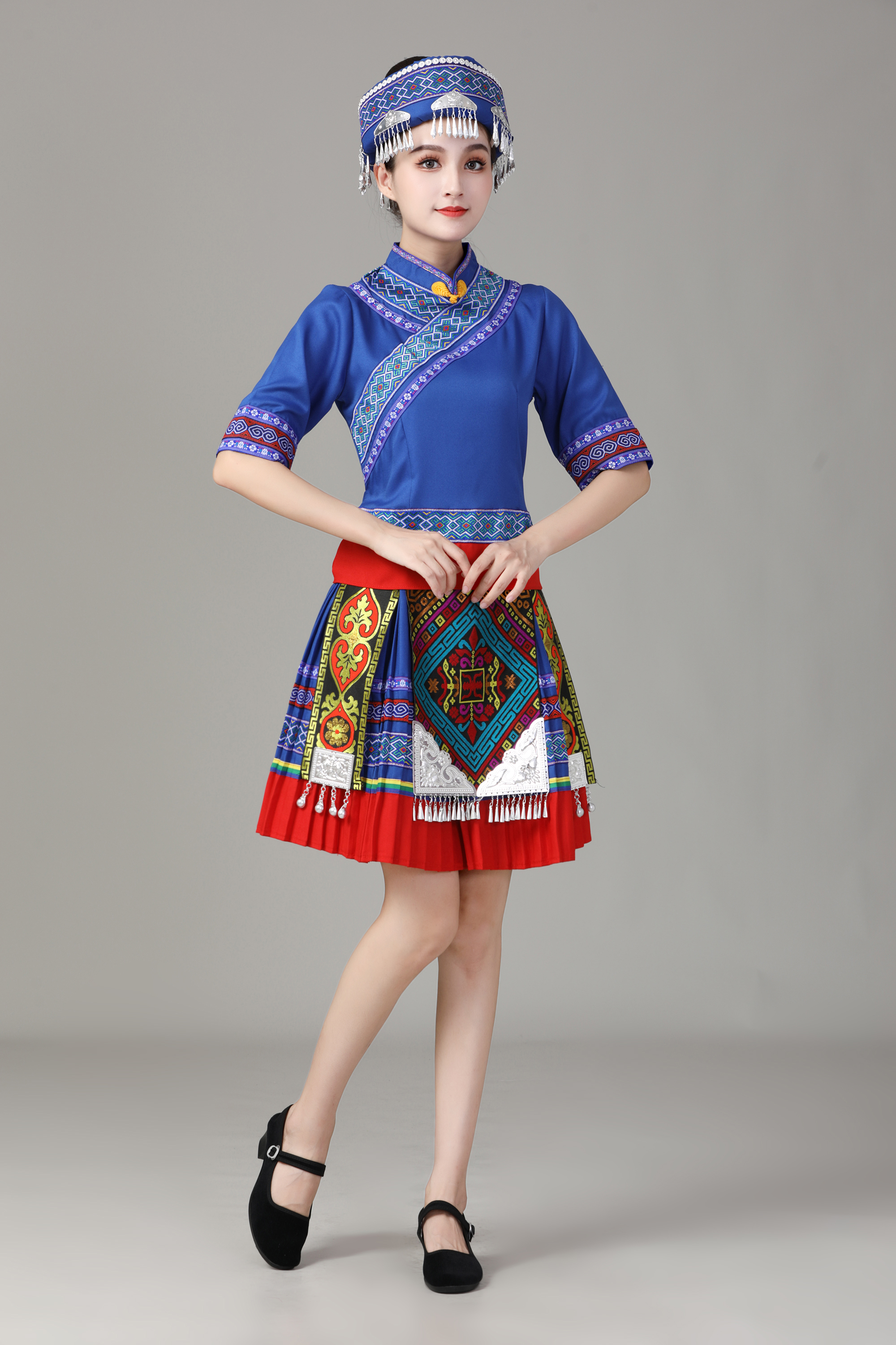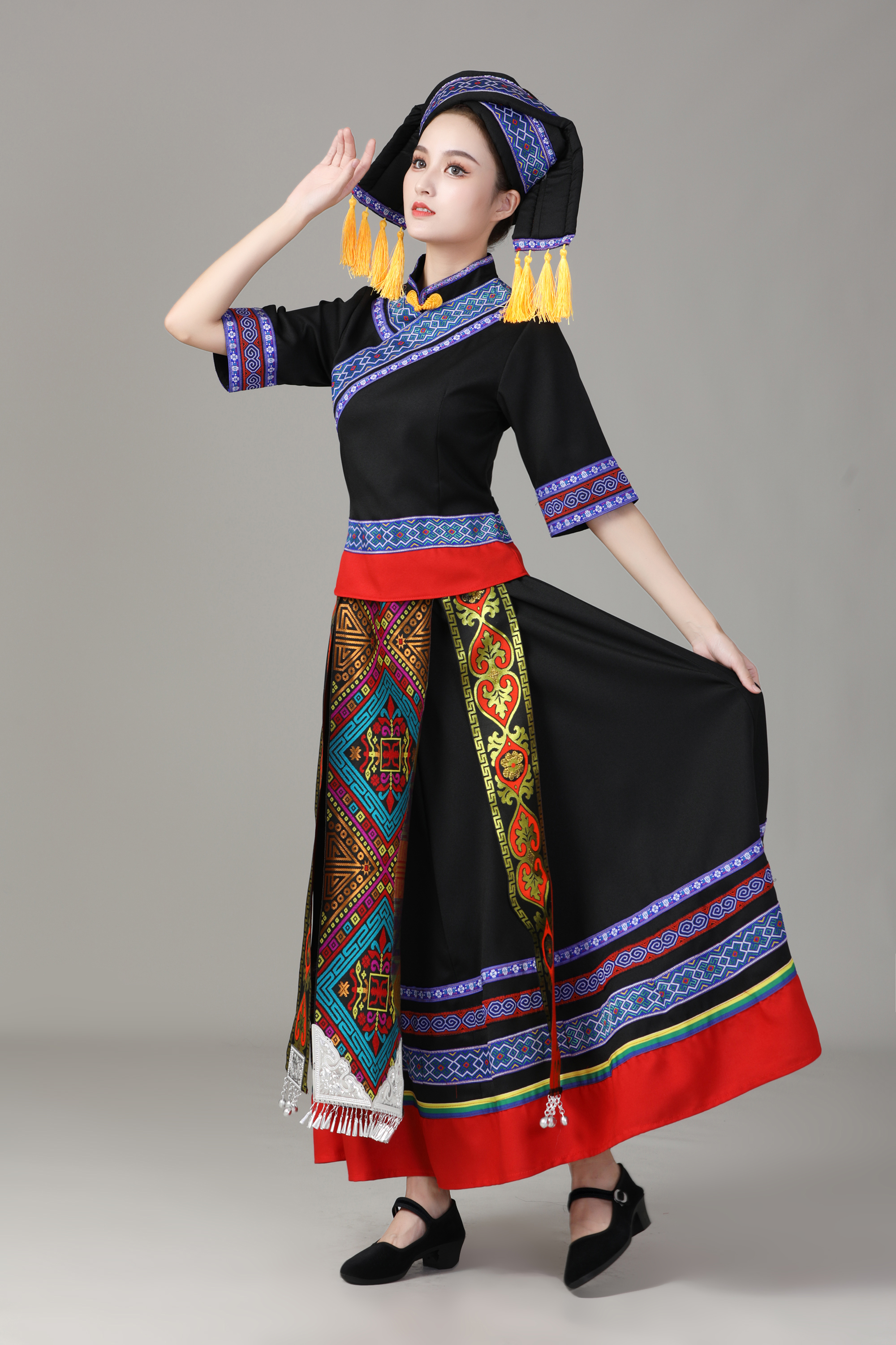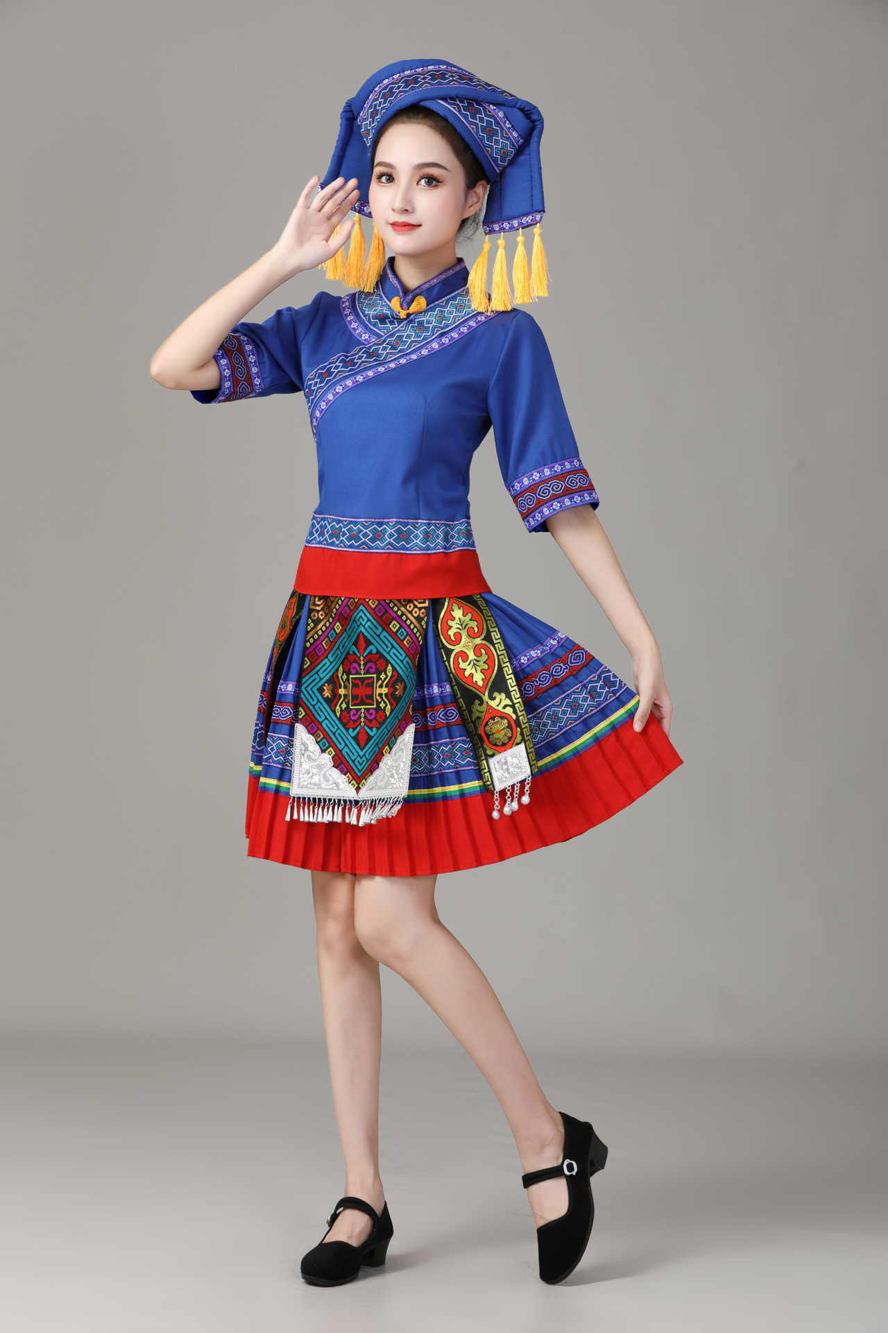민족 여성 독룡족 전통의상 성인 무대 댄스 공연 의상 합창 공연 의상 세트