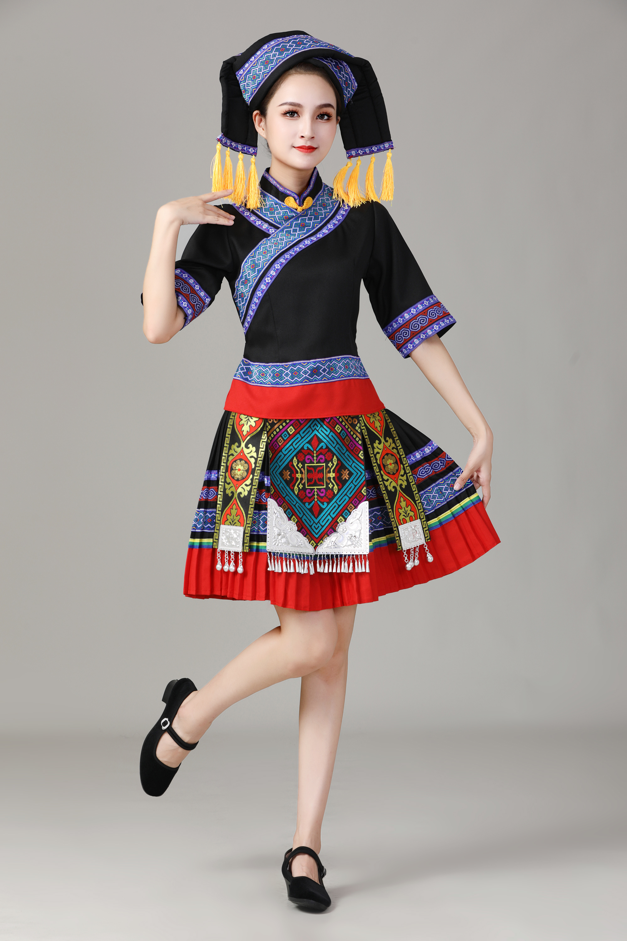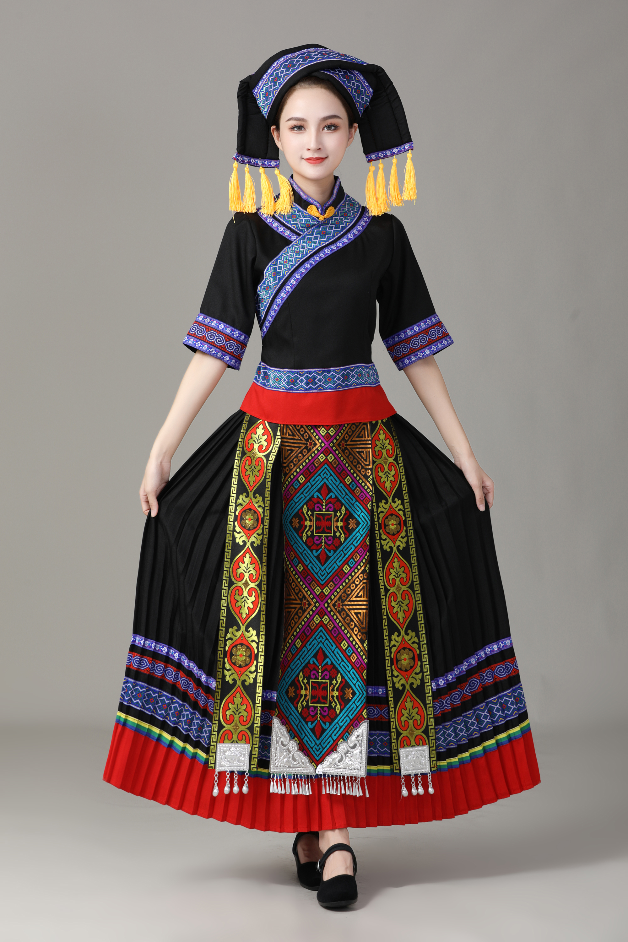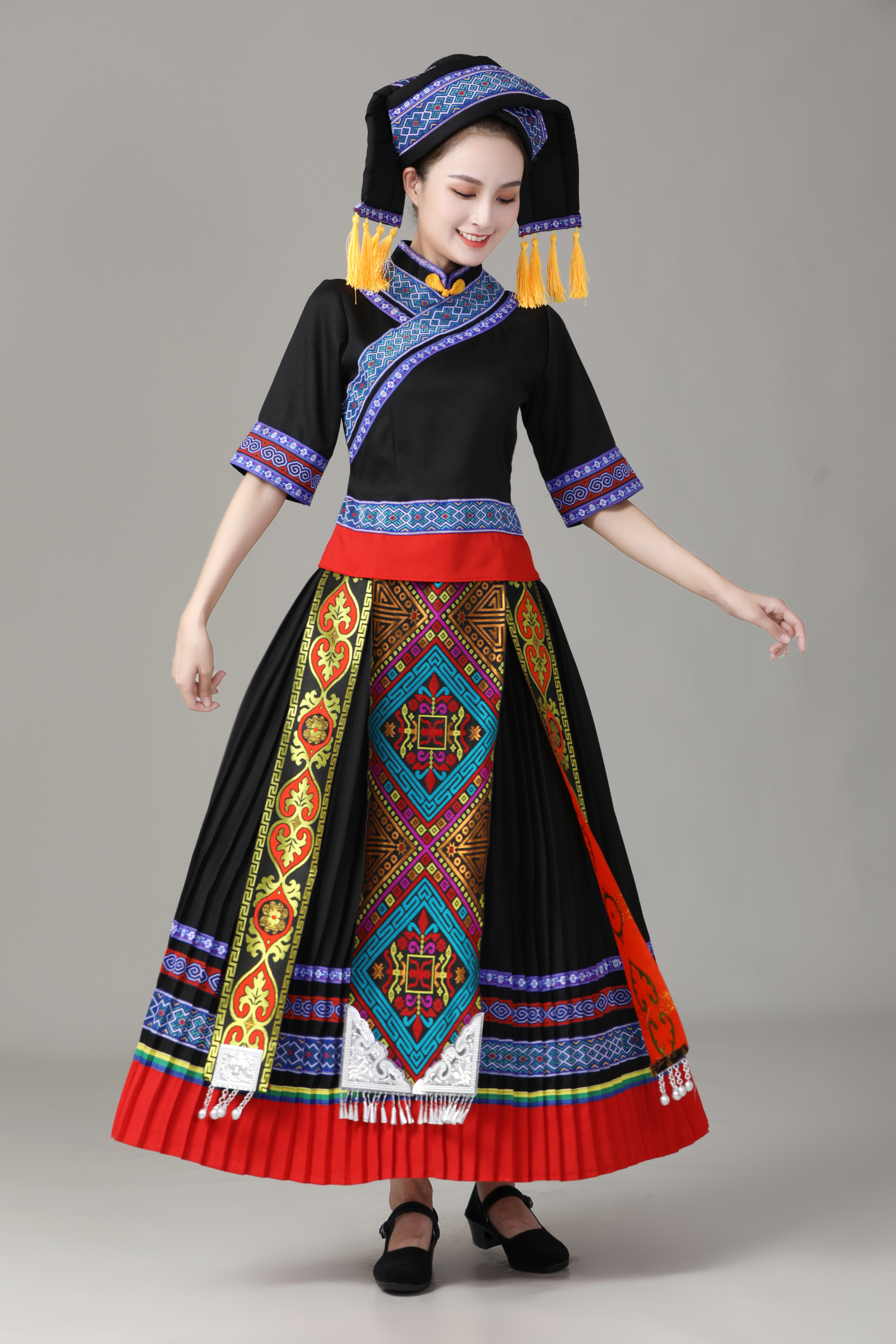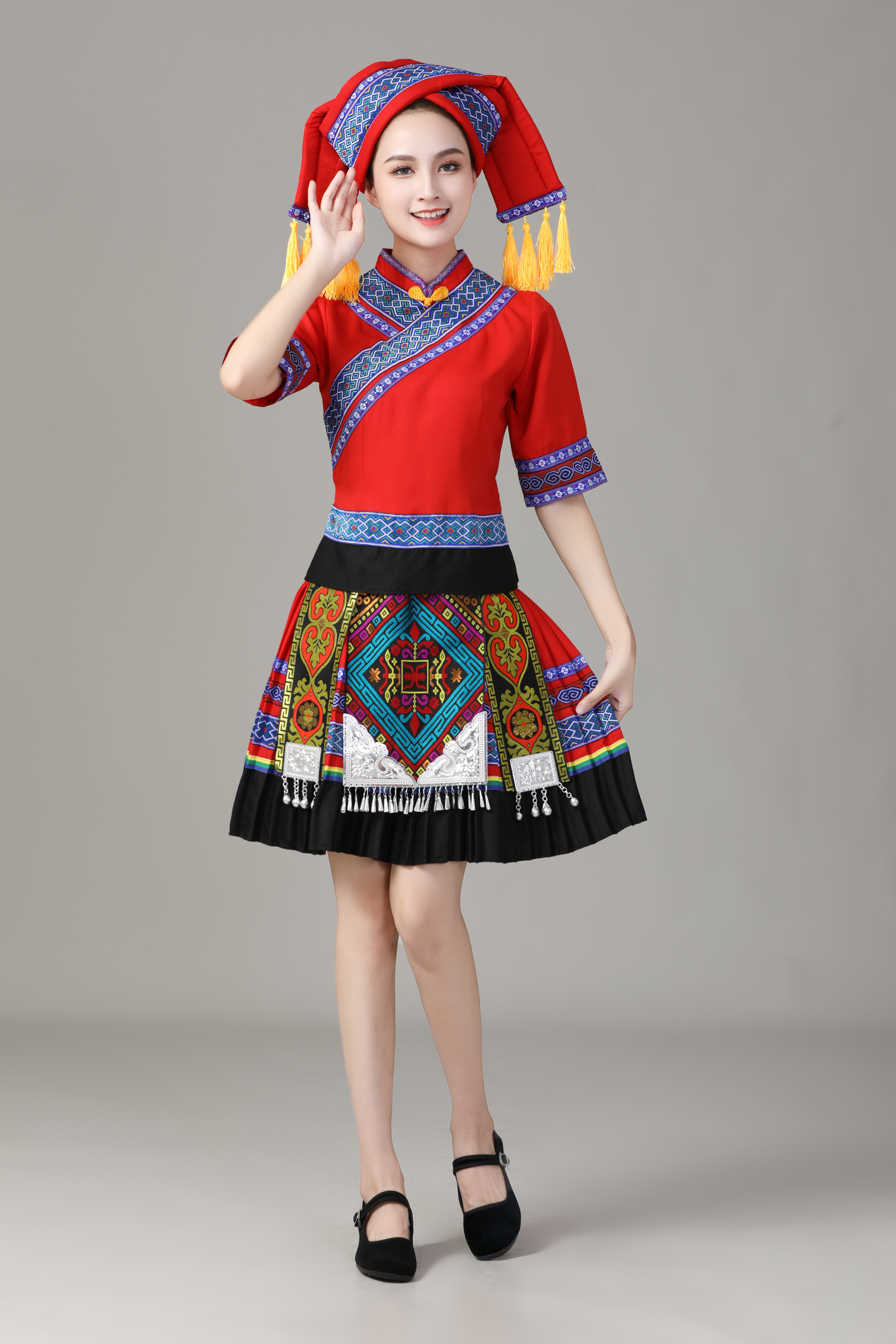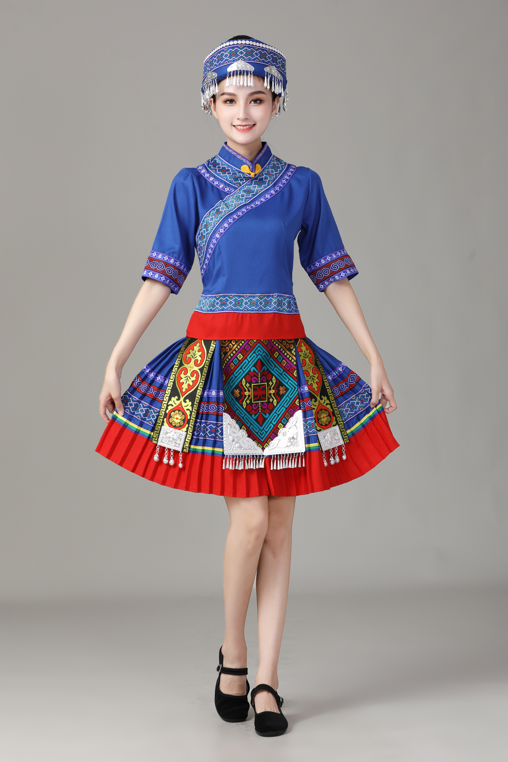 민족 여성 독룡족 전통의상 성인 무대 댄스 공연 의상 합창 공연 의상 세트