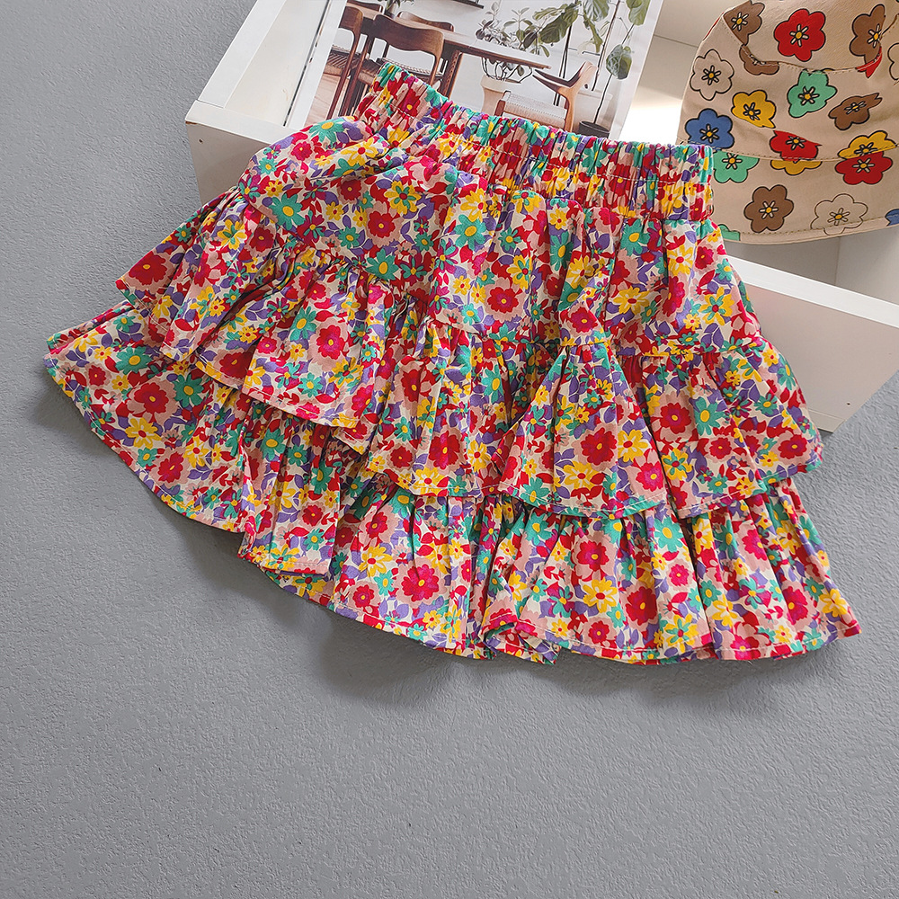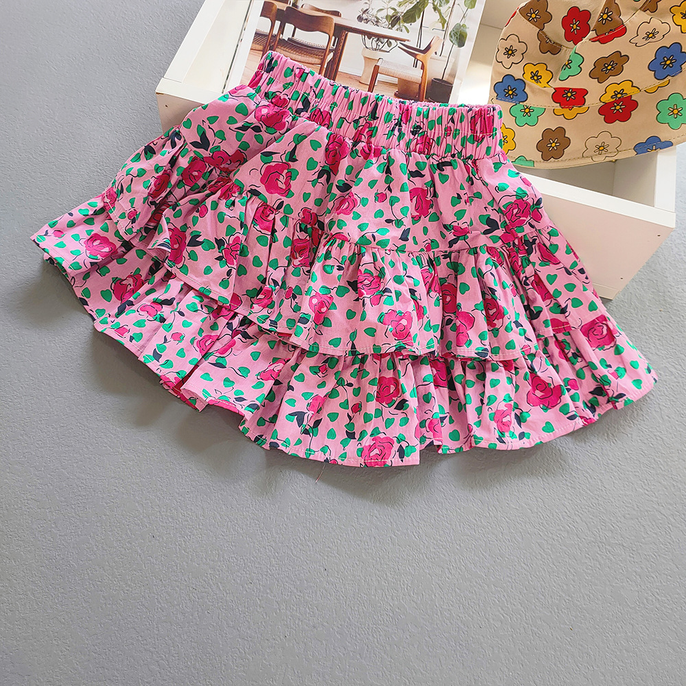 소녀의 프릴 케이크 스커트 여름 귀여운 공주 스커트 어린이 면 인쇄 스커트 아기 소녀 스커트
