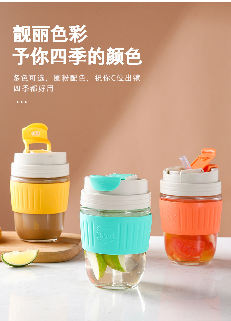 유리 이중 음료컵 여성용 커피컵 휴대용 귀여운 간편 보온 우유 크리스탈 물컵 주스 트렌디 음료스토어 가기