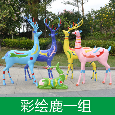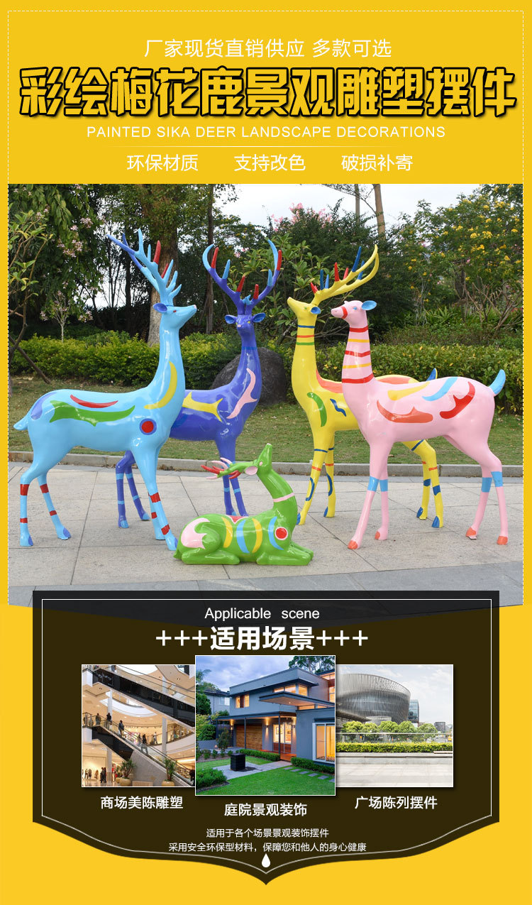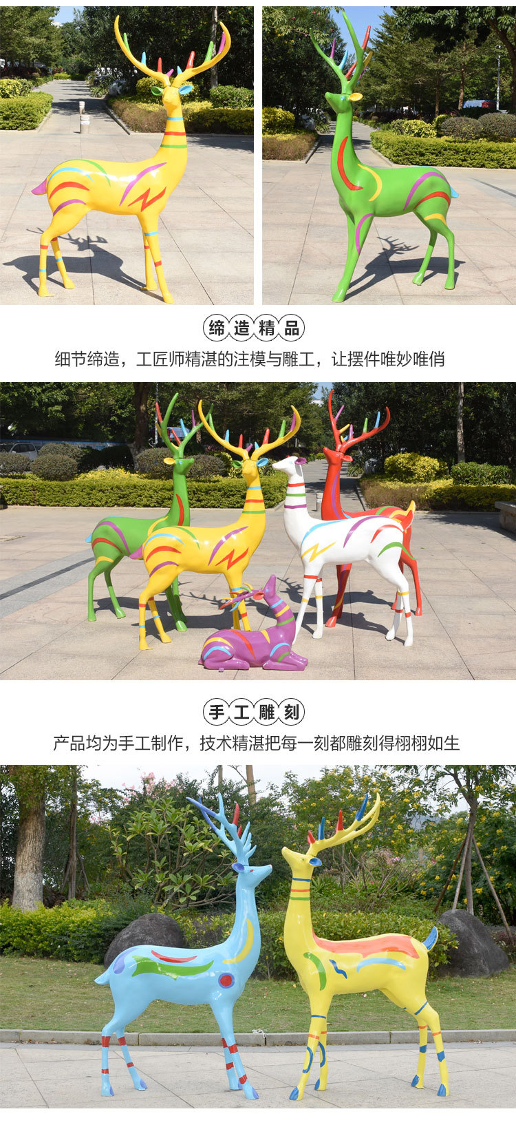 야외 시뮬레이션 스테인드 시카 사슴 유리 섬유 강화 플라스틱 조각 공원 커뮤니티 풍경 장식 쇼핑몰 광장 잔디 아름다운 첸