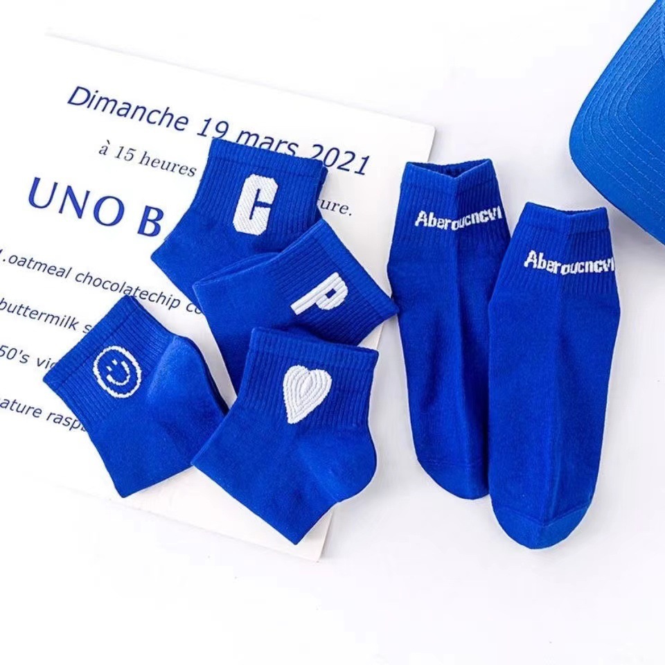 클라인 블루 양말 여성용 짧은 양말 얕은 입 순면 봄과 여름 얇은 인 트렌디 한 편지 짧은 튜브 낮은 양말