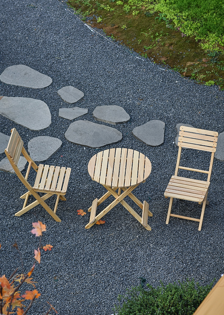 야외 단단한 나무 휴대용 원형 접이식 테이블 가정용 식탁 및 의자 간단한 설치-무료 식당 테이블스토어 가기