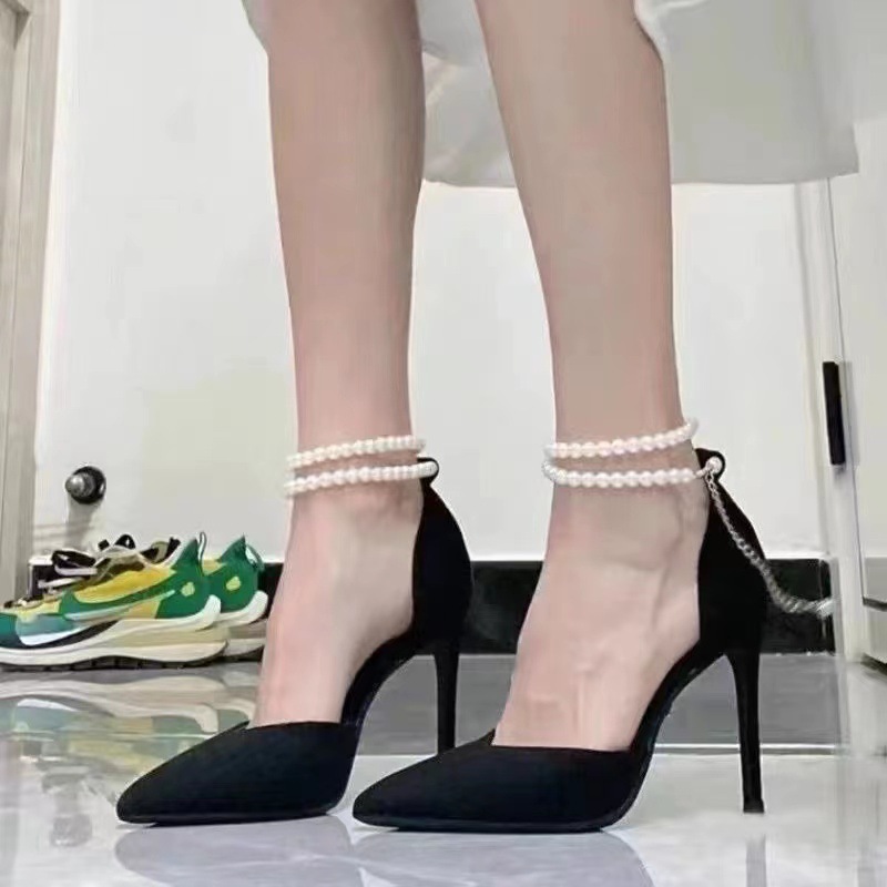 2023 유럽과 미국의 새로운 스타일 침대 하이힐 섹시한 얕은 활 뾰족한 발가락 스틸레토 힐 하이힐 샌들 여성용 작업 신발스토어 가기