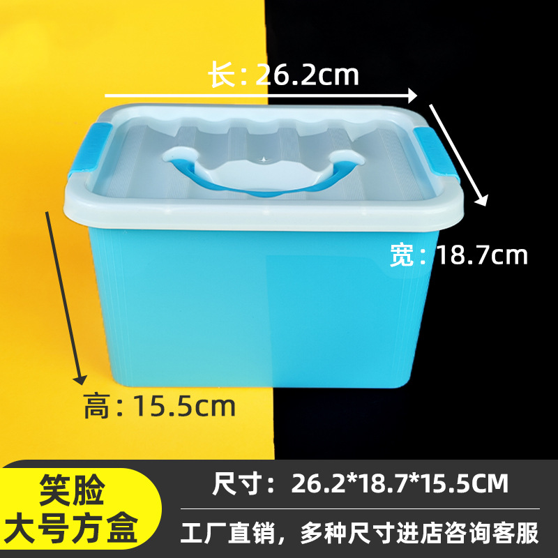 대형 스마일 페이스 휴대용 사각 보관함 어린이 장난감 간식 보관함 속옷 팬티 플라스틱 보관 배럴