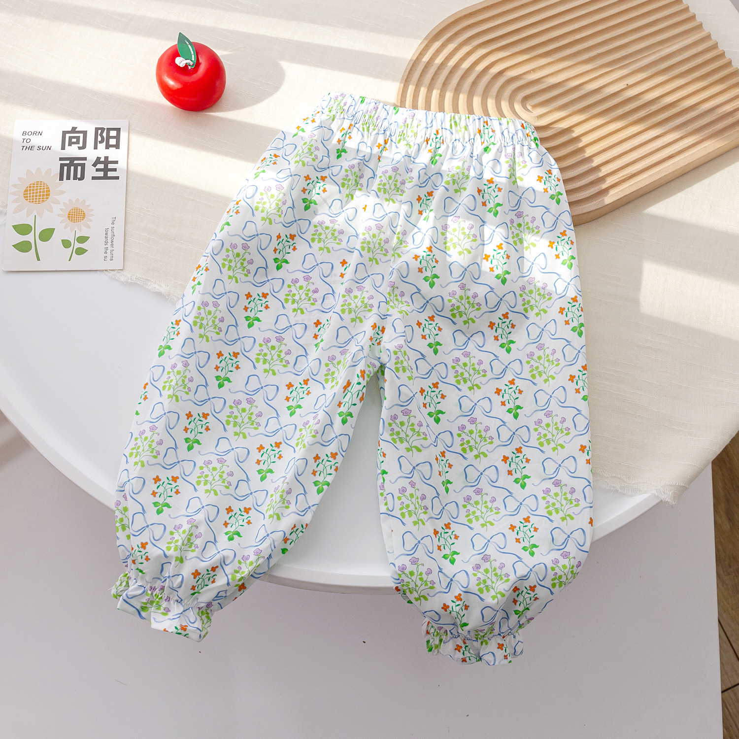 여아 여름 새로운 서양식 꽃 모기 방지 바지 어린이 신선한 프린트 에어컨 바지 아기의 달콤한 여름 바지