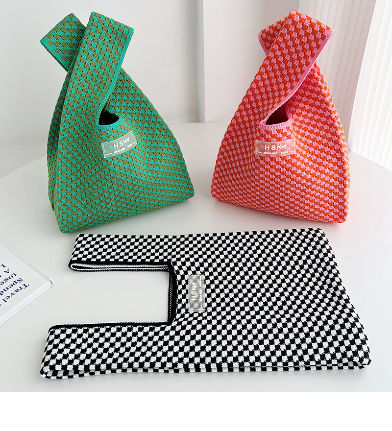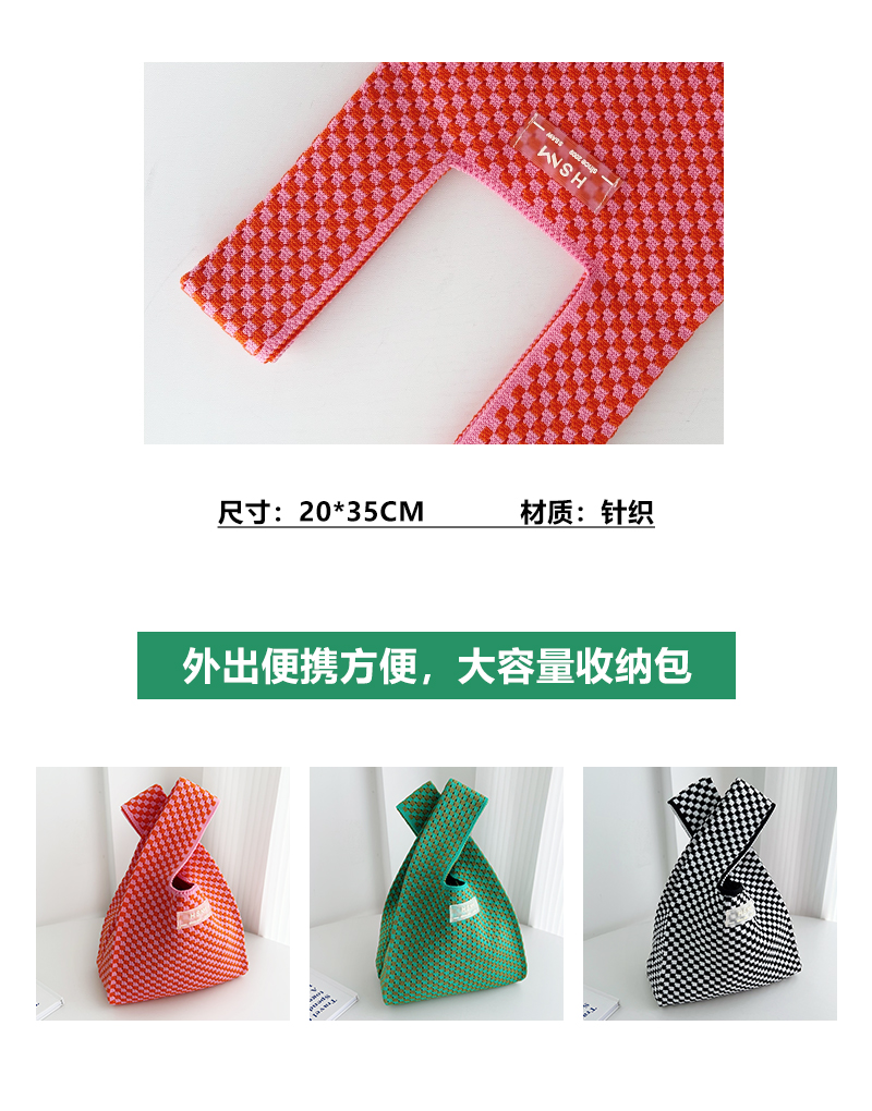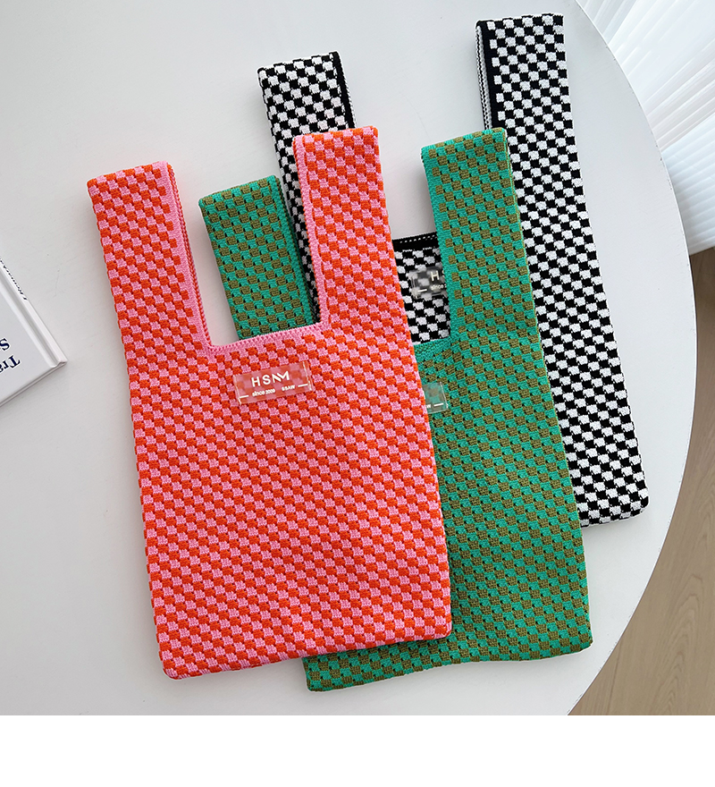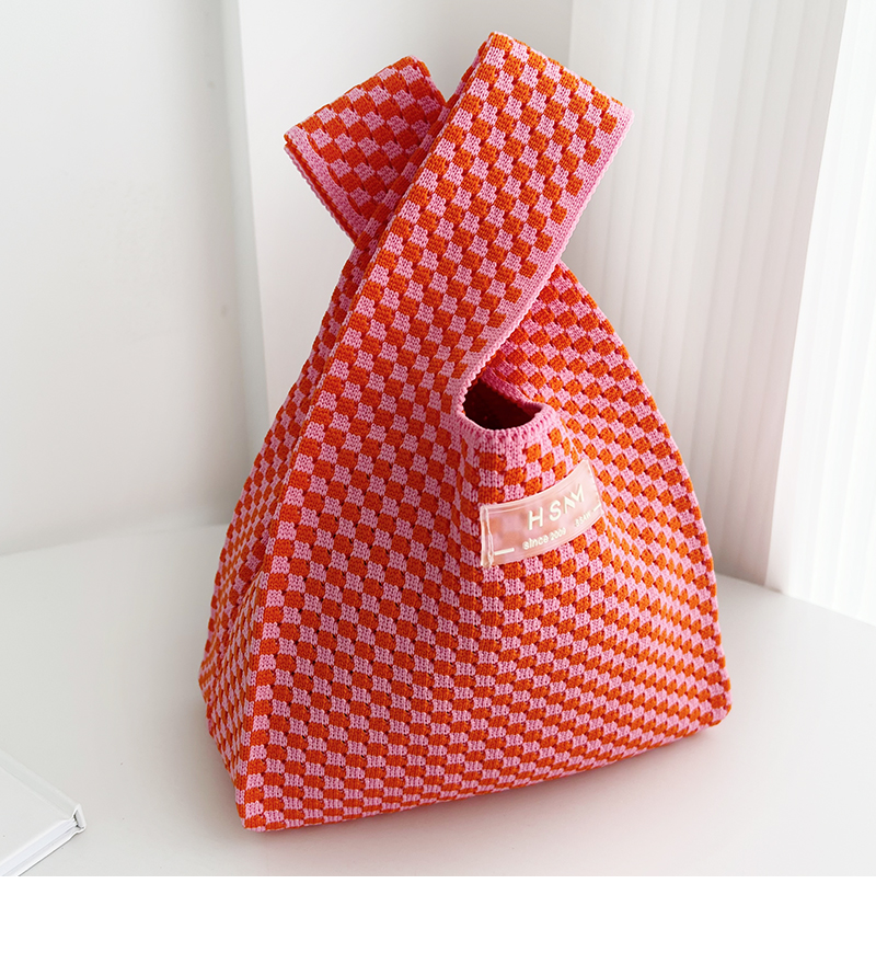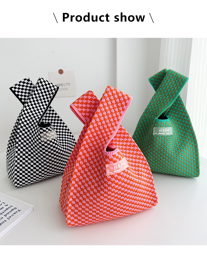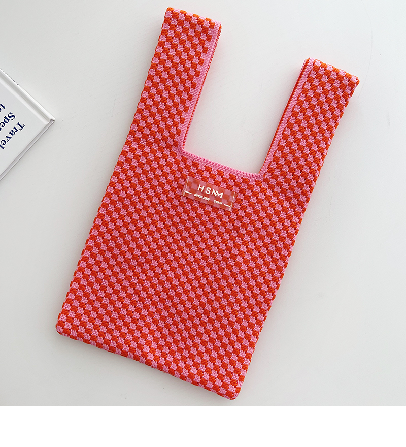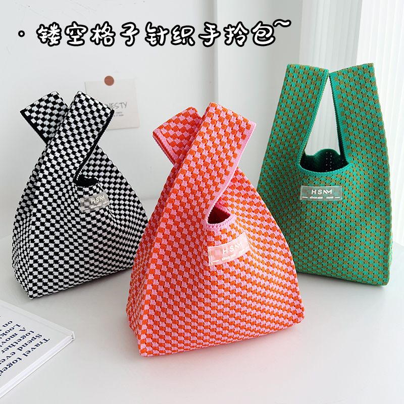 일본 중공 격자 무늬 니트 핸드백 딸기 사탕 핸드백 귀여운 여성용 가방 패션 모든 경기 조끼