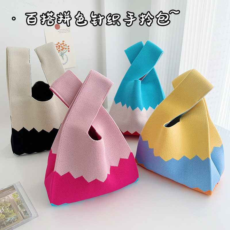 니트 다채로운 조끼 가방 모든 매치 컬러 매칭 조끼 가방 핸드백 휴대용 도시락 가방 캐주얼 워킹 핸드백