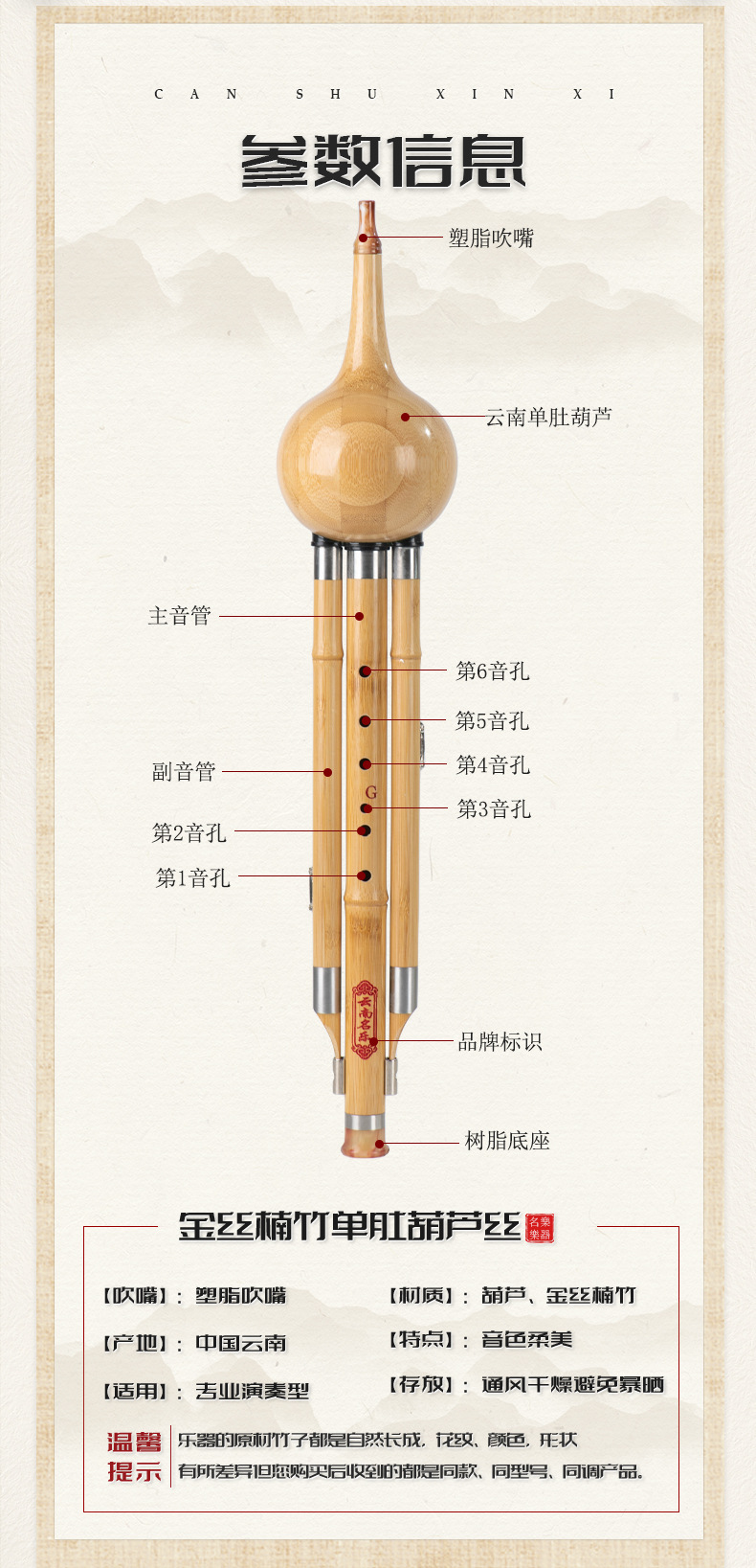 운남 제조업체 도매 금사 난주(楠竹) 연주용 싱글벨리 호루라기악기, 균열 방지 및 곰팡이 방지, 전문 악기, 가죽 포장스토어 가기