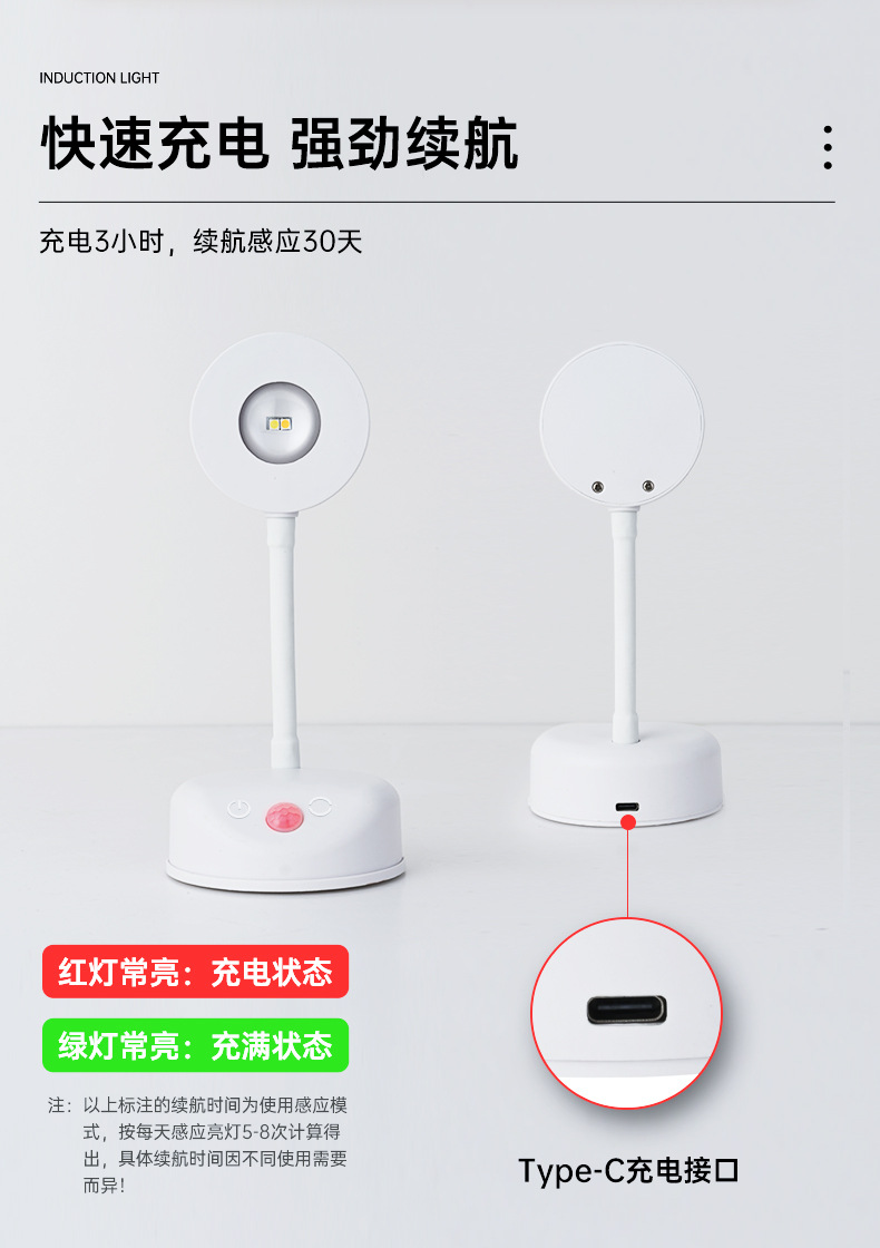 국경 간 새로운 충전 배선 무료 실내 벽 램프 스포트라이트 지능형 led 인체 유도 램프 원격 제어 포토 램프