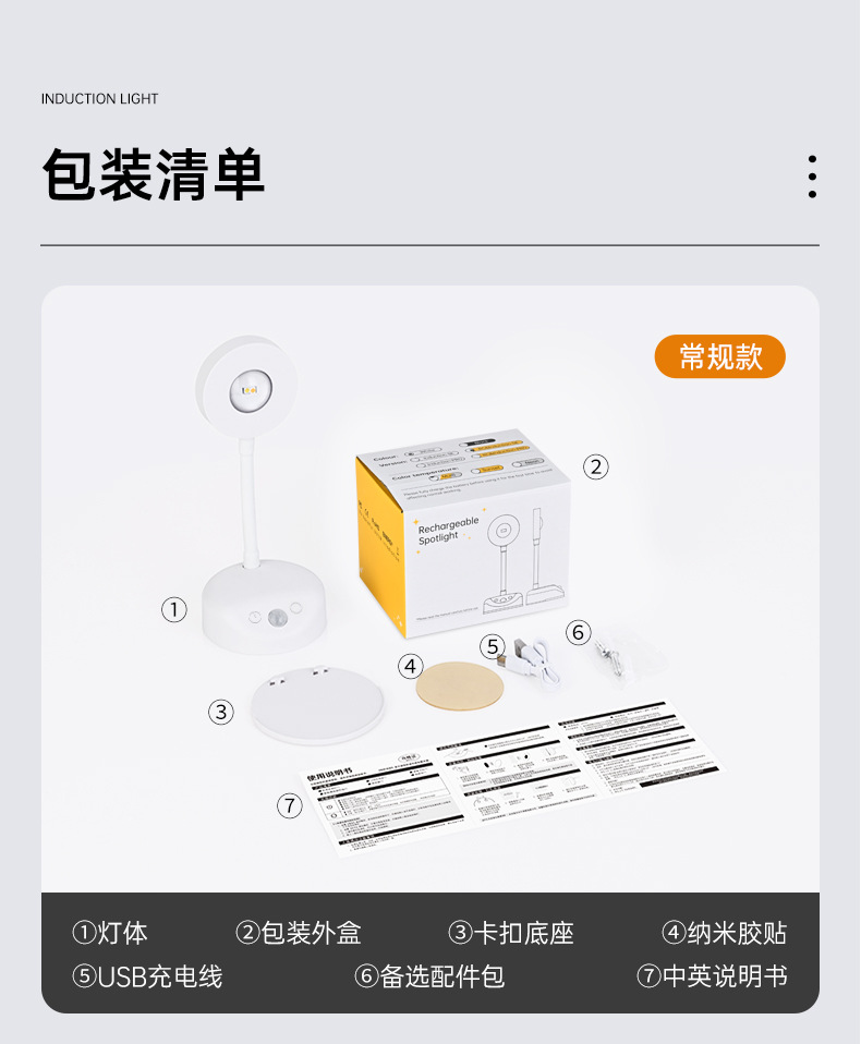 국경 간 새로운 충전 배선 무료 실내 벽 램프 스포트라이트 지능형 led 인체 유도 램프 원격 제어 포토 램프스토어 가기