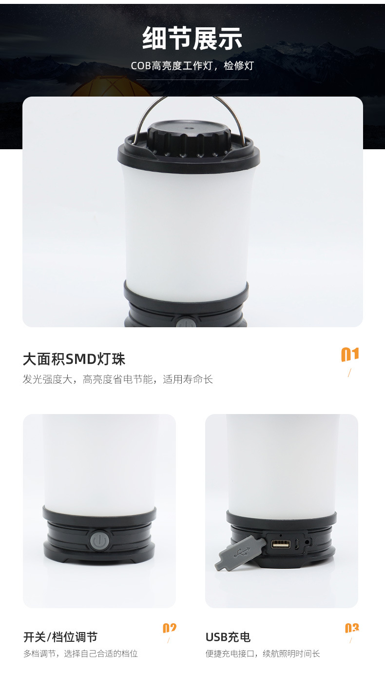 매달린 야외 캠핑 라이트 SMD 충전식 휴대용 텐트 야시장 스톨 비상 캠핑 충전식 조명