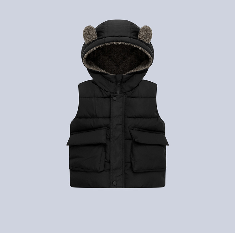 2023 대외 무역 아동복 아동복 가을과 겨울 기모 따뜻한 어린이 어깨 단색 어린이 남성 및 여성 후드 조끼