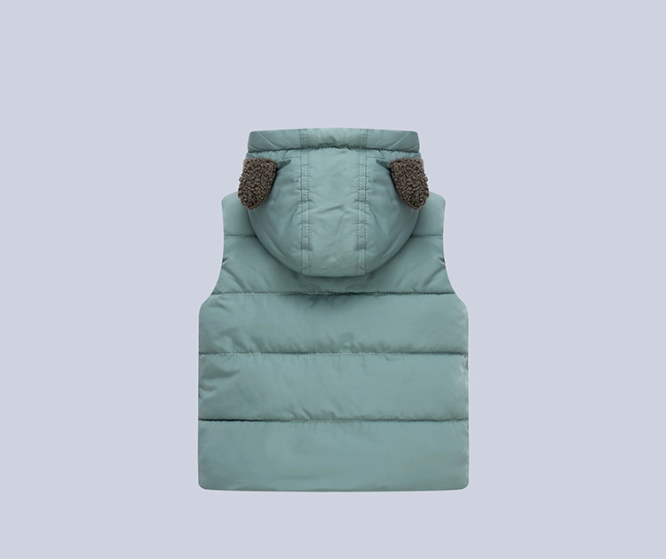 2023 대외 무역 아동복 아동복 가을과 겨울 기모 따뜻한 어린이 어깨 단색 어린이 남성 및 여성 후드 조끼스토어 가기