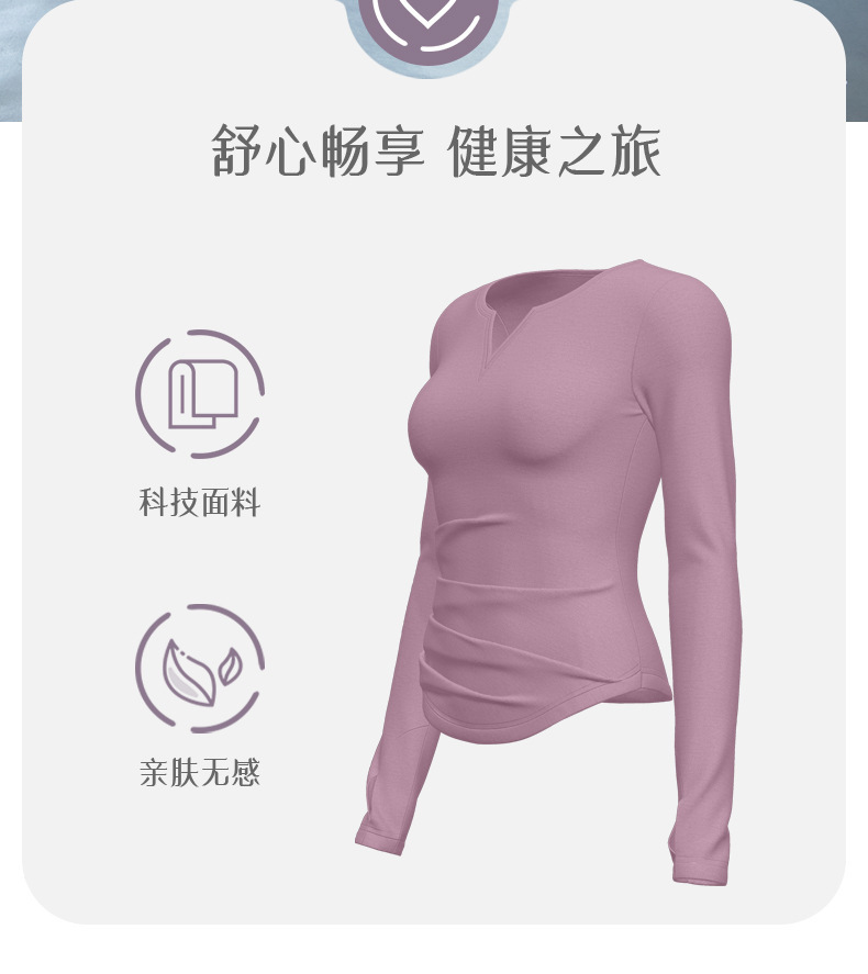 복숭아 V 넥 엄지 커프 주름 허리 긴 소매 티셔츠 패션 프로 러닝 피트니스 스포츠 탑 사이클링 옷