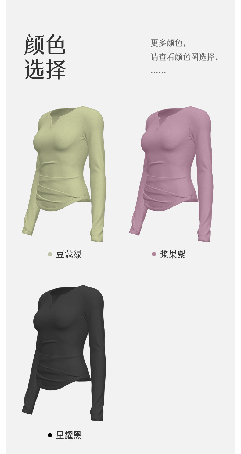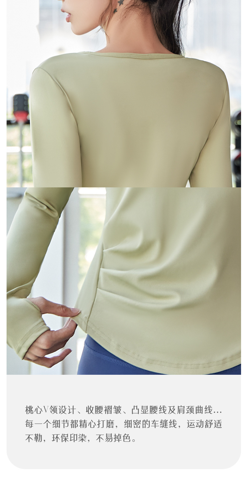 복숭아 V 넥 엄지 커프 주름 허리 긴 소매 티셔츠 패션 프로 러닝 피트니스 스포츠 탑 사이클링 옷스토어 가기