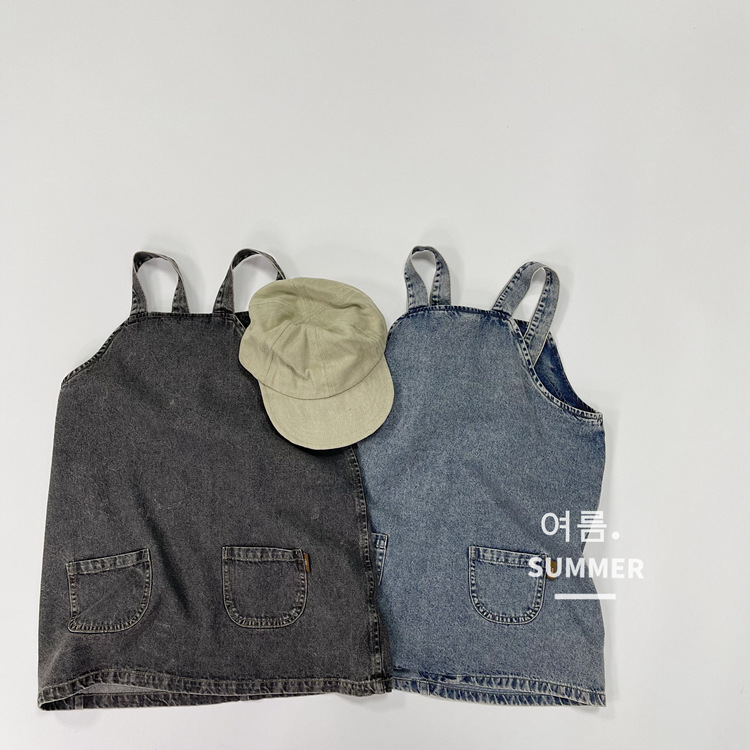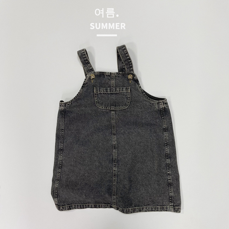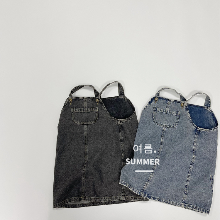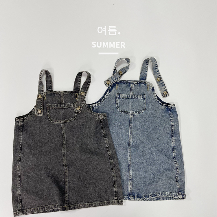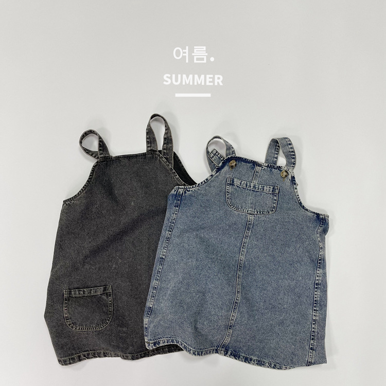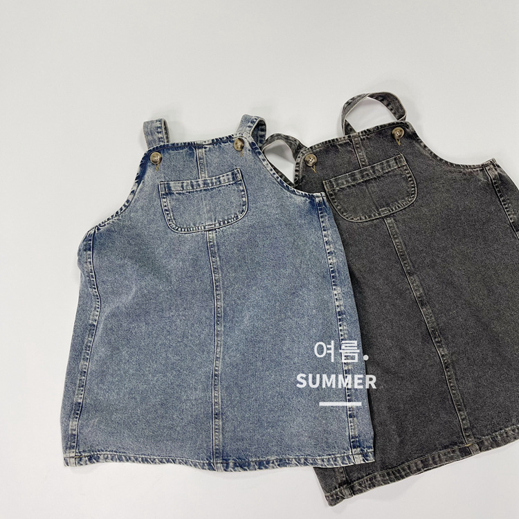 2023 일본식 포켓 데님 슬링 원피스 소녀의 여름 짧은 데님 스커트 작은 소녀의 슬링 스커트스토어 가기