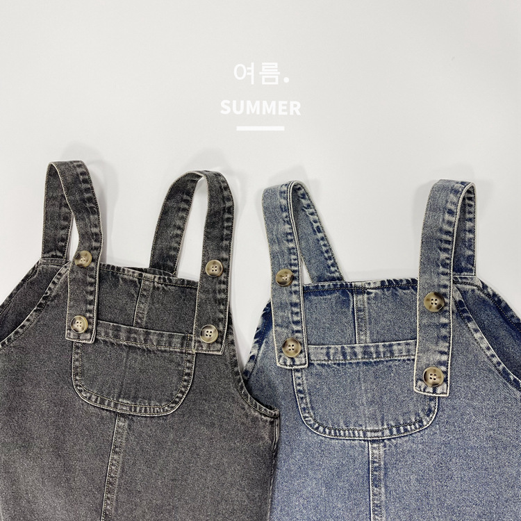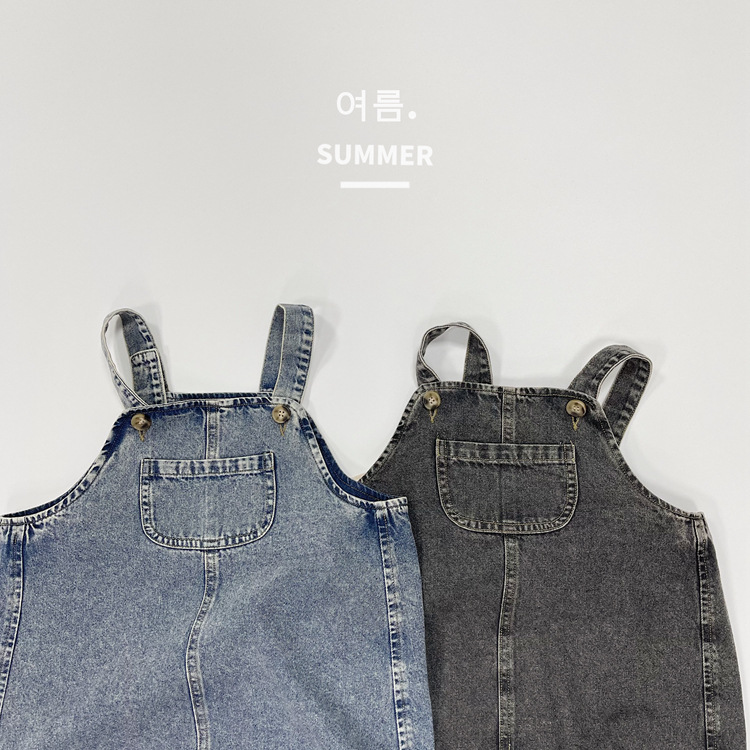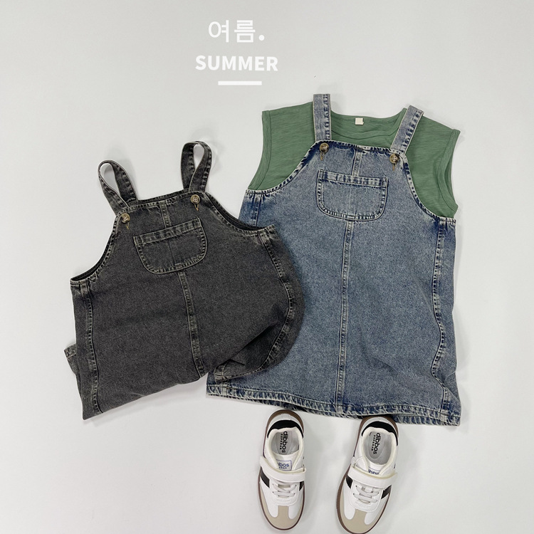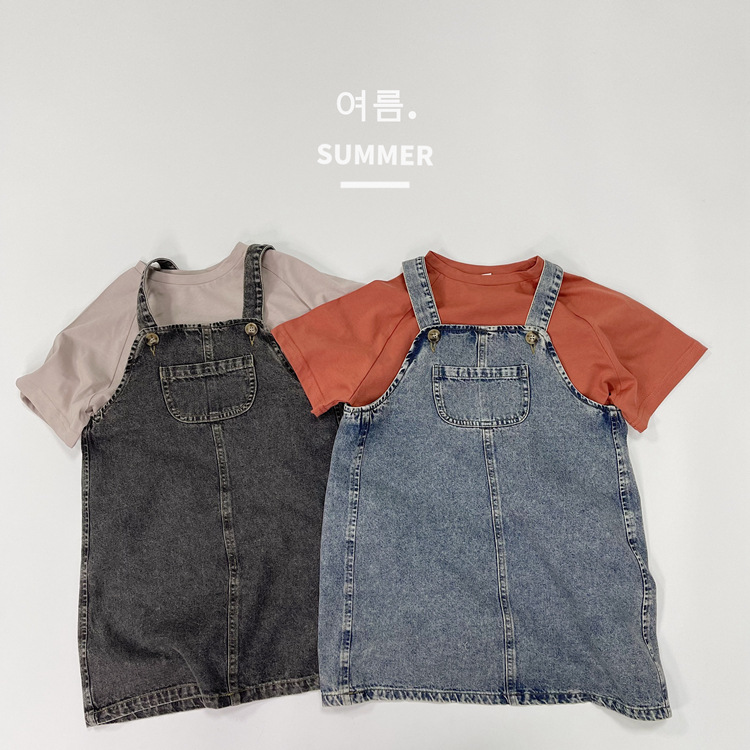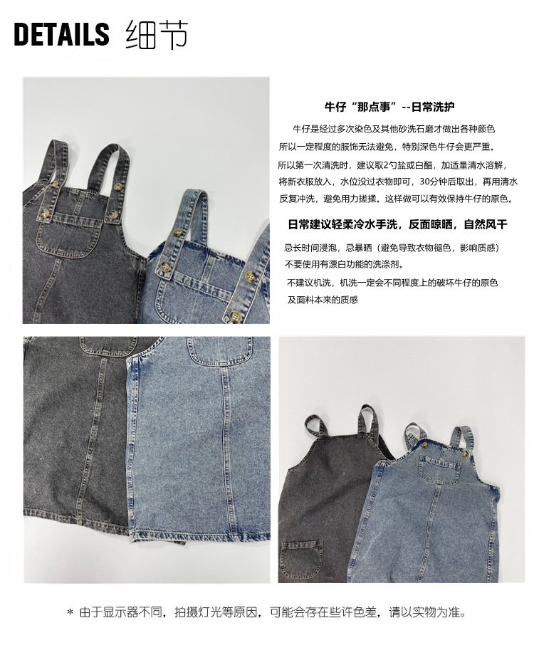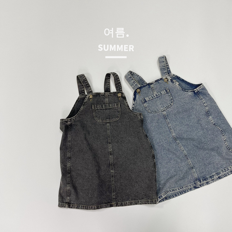 2023 일본식 포켓 데님 슬링 원피스 소녀의 여름 짧은 데님 스커트 작은 소녀의 슬링 스커트스토어 가기