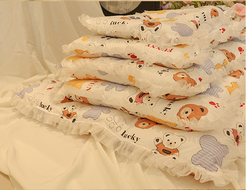 • 순면 화이트 곰돌이 패턴 레이스 장식