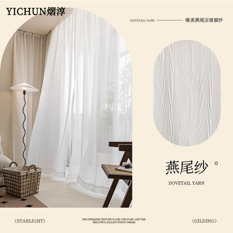 새로운 도브테일 커튼 투명 관통 거즈 커튼 프랑스어 항목 고급 고급 창 화면 안티 후크 실크 필링 없음 흰색 거즈스토어 가기