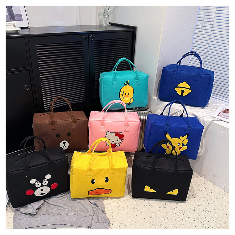 한국 스타일 만화 여행 펠트 가방 대용량 학생 수하물 가방 캐주얼 경량 클러치 백 여성 화장품 가방