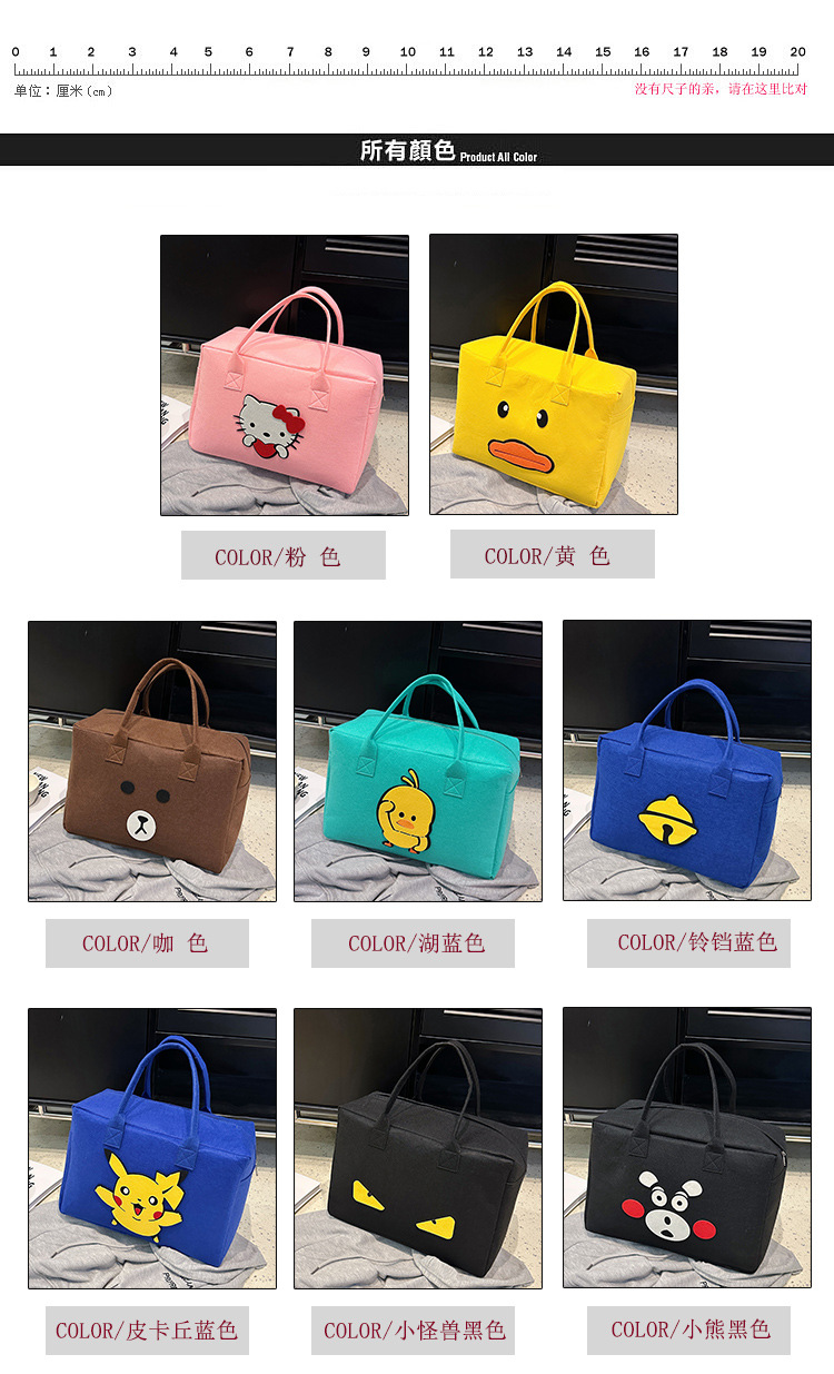 한국 스타일 만화 여행 펠트 가방 대용량 학생 수하물 가방 캐주얼 경량 클러치 백 여성 화장품 가방스토어 가기
