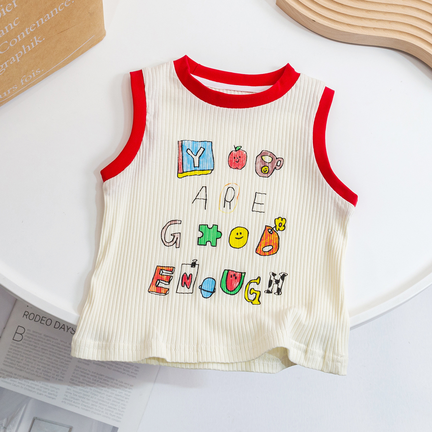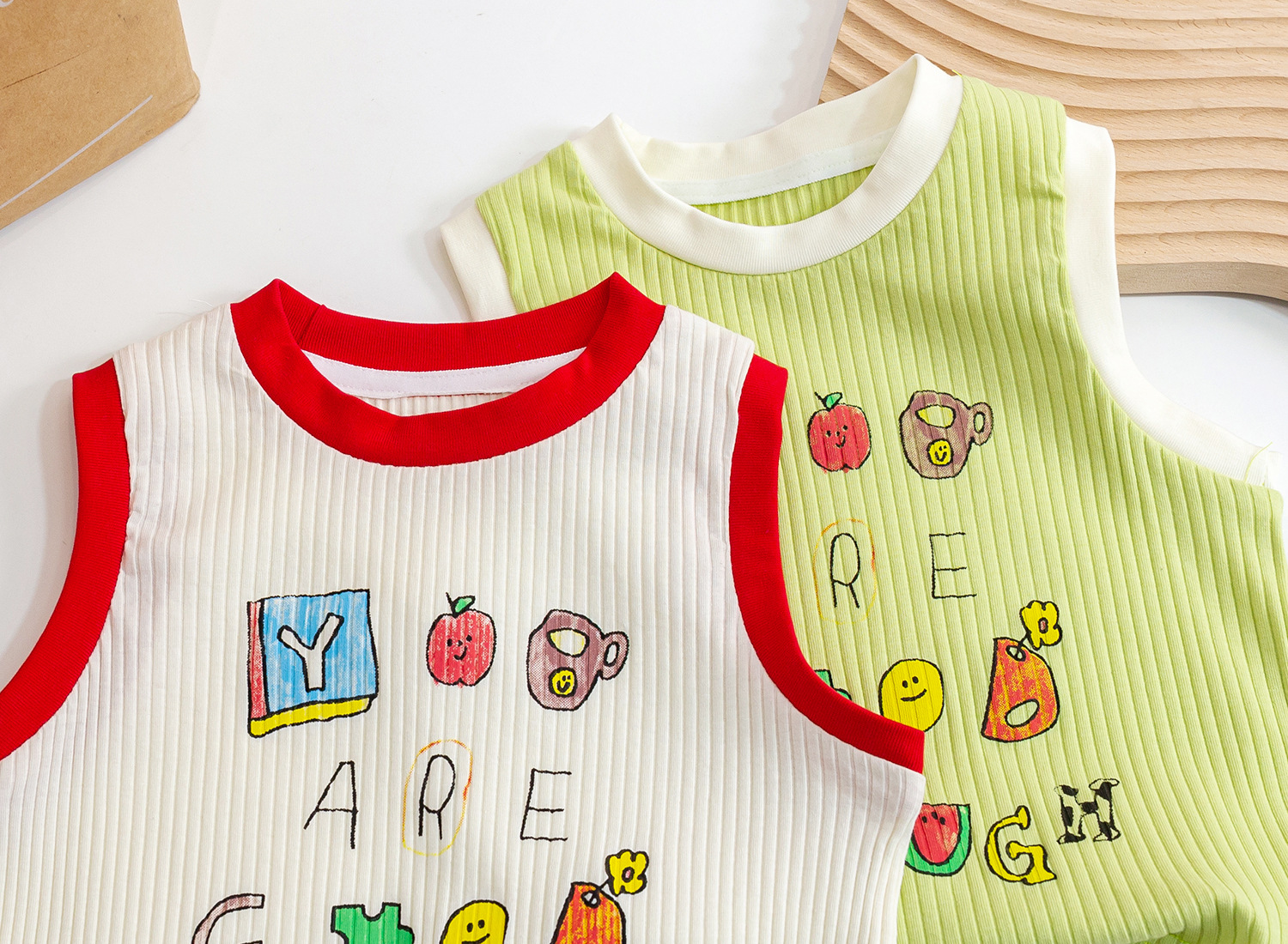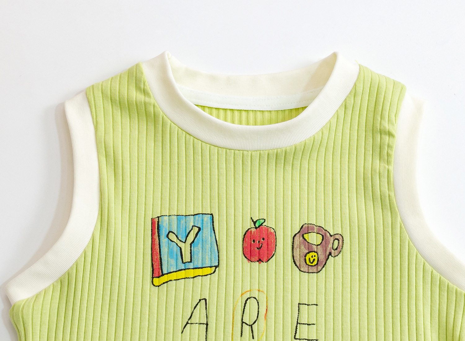 2023女童夏季新款针织背心儿童洋气撞色印花卡通上衣宝宝无袖T恤