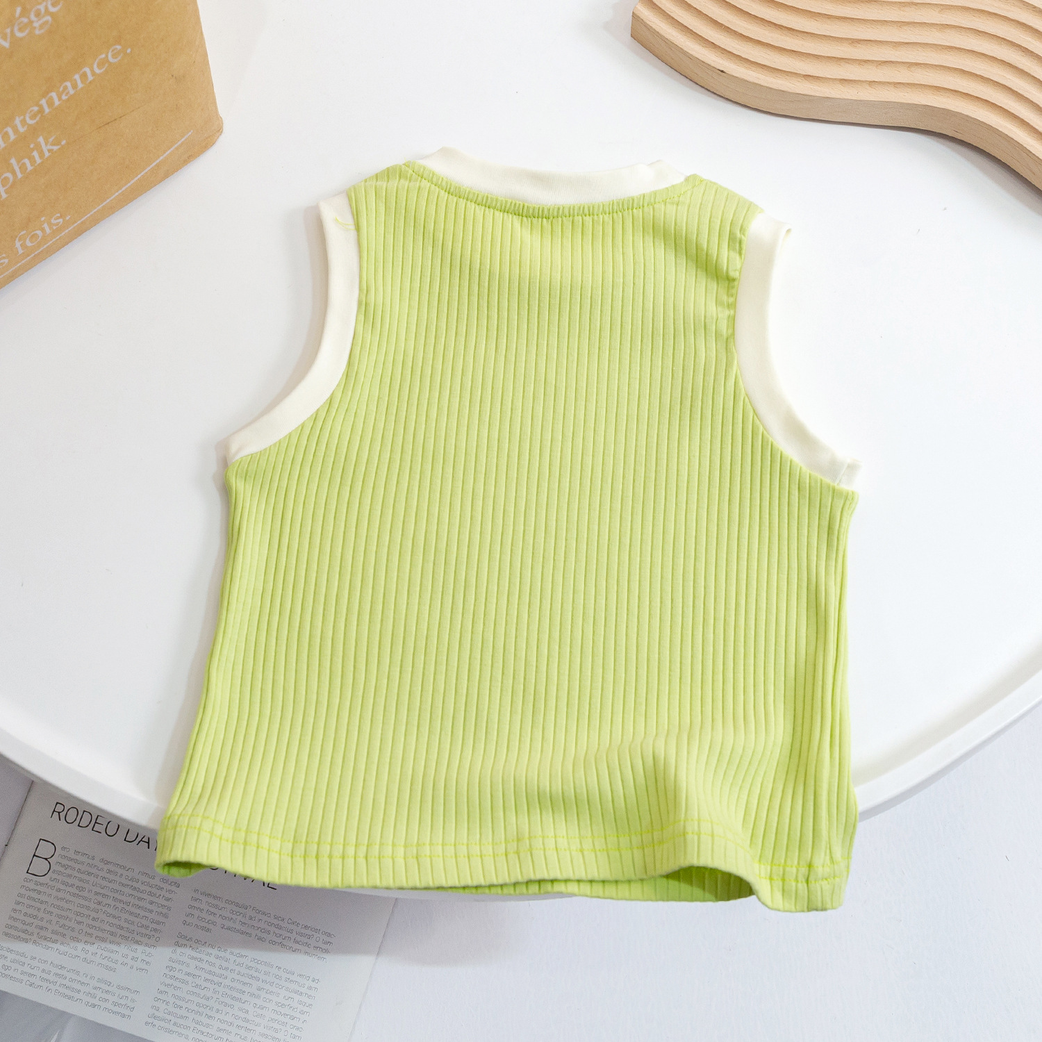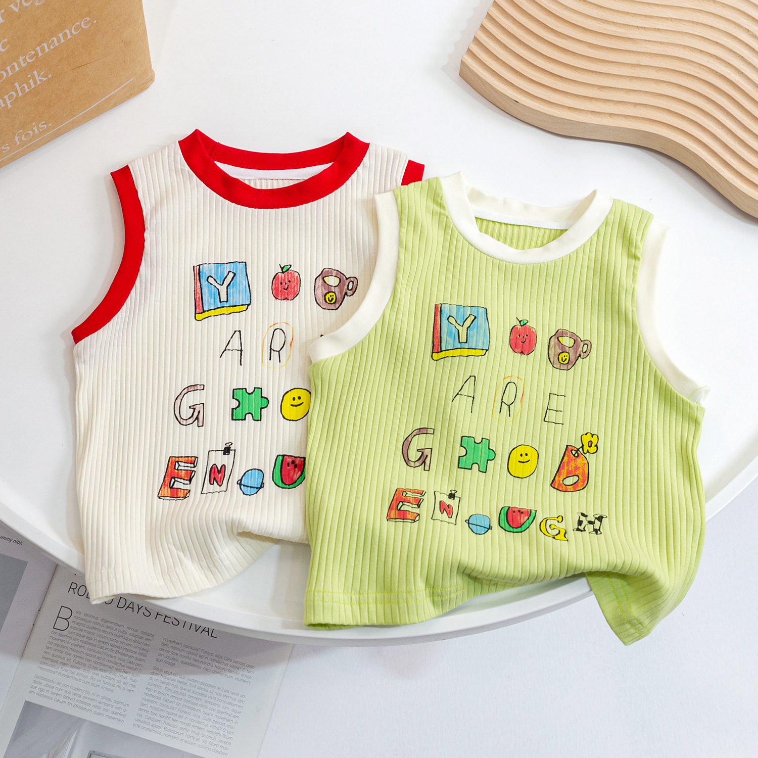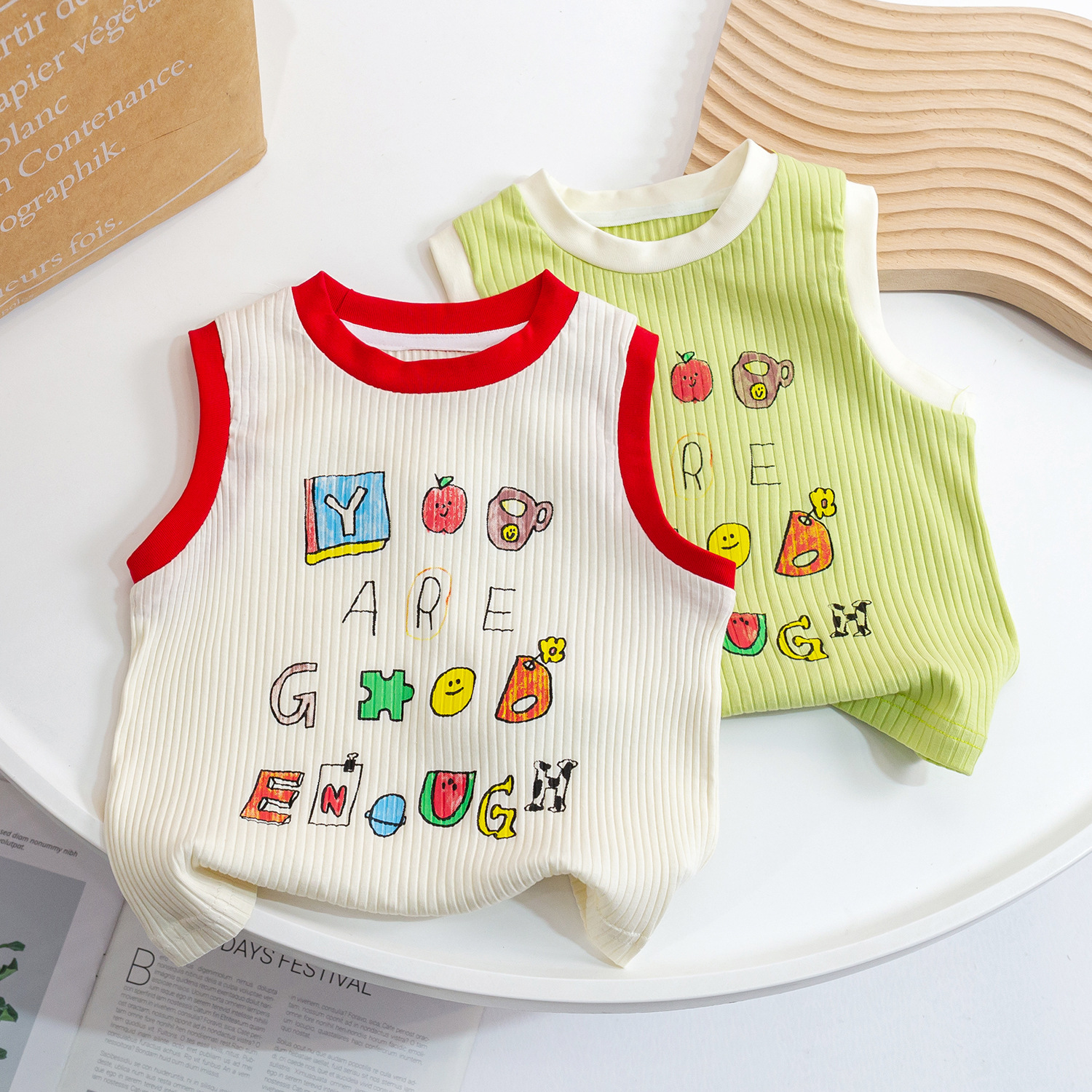 2023女童夏季新款针织背心儿童洋气撞色印花卡通上衣宝宝无袖T恤