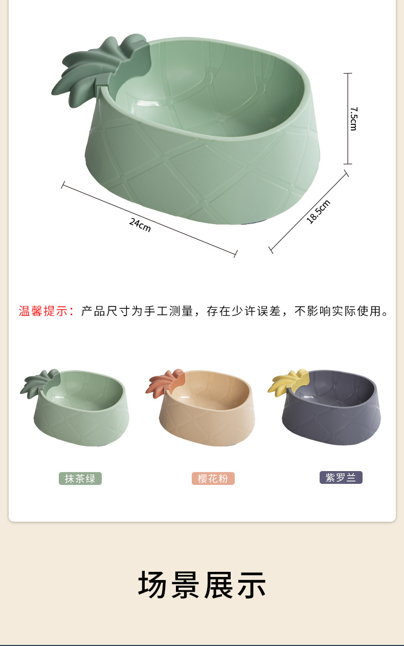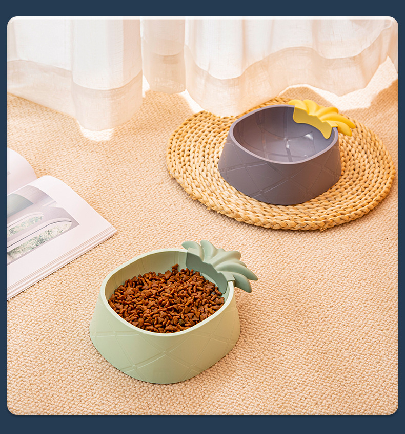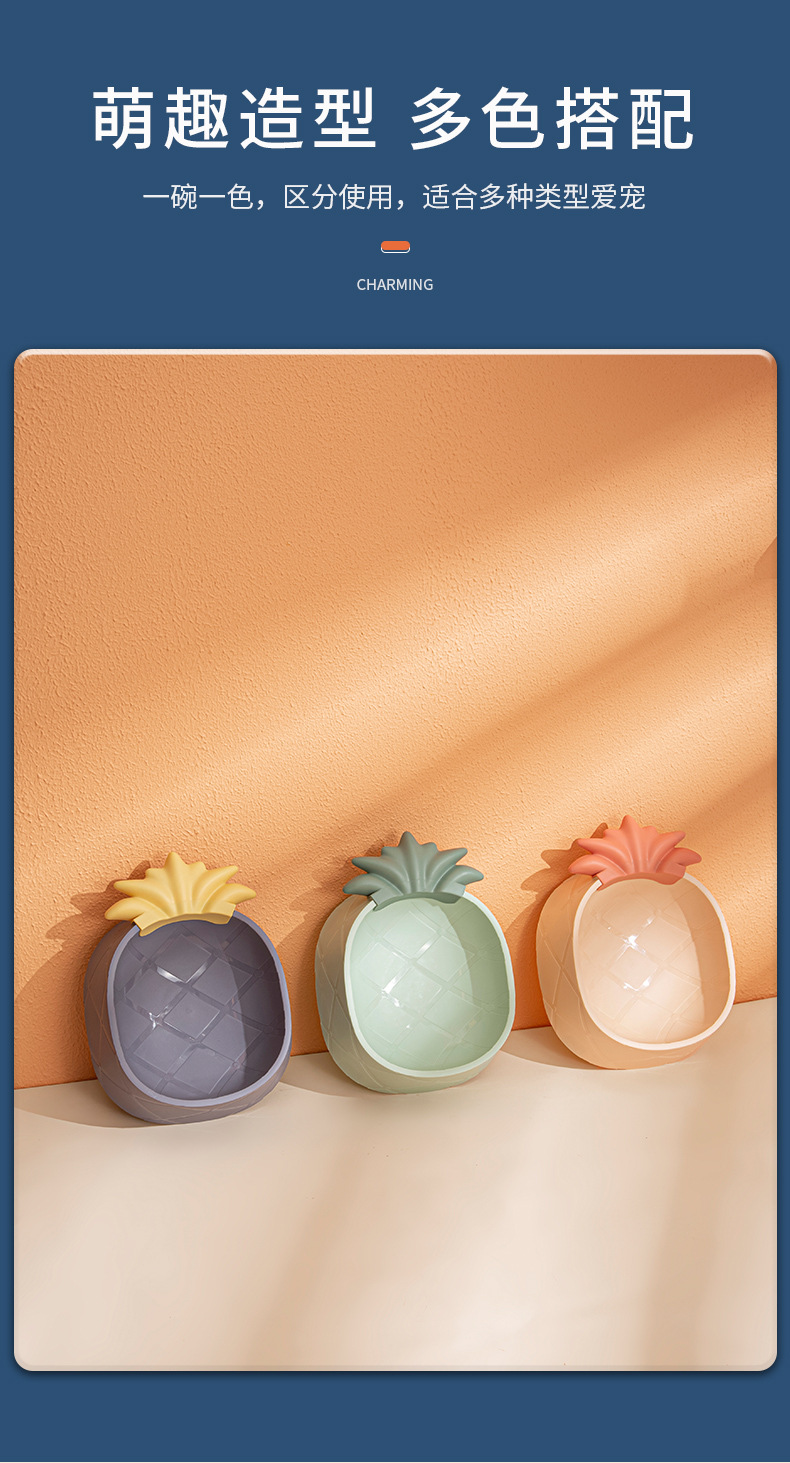 애완 동물 플라스틱 단일 그릇 만화 파인애플 딸기 애완 동물 그릇 스타일 목 보호 노크 방지 고양이 그릇 대용량 개 그릇스토어 가기