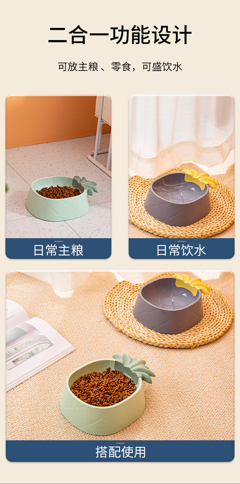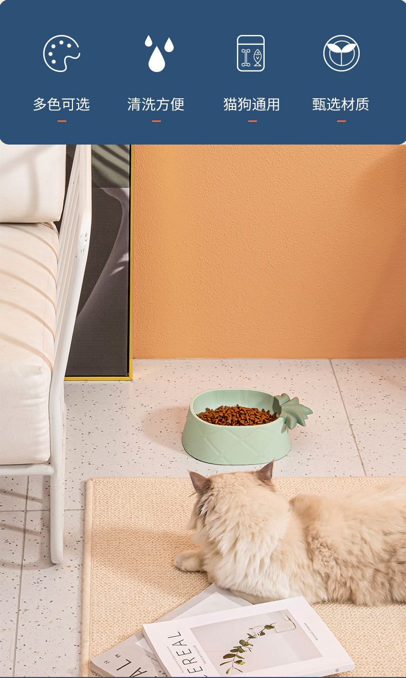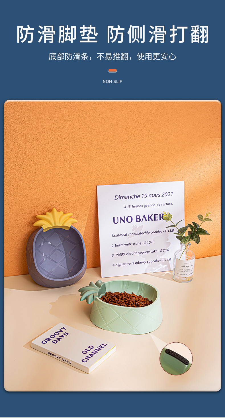 애완 동물 플라스틱 단일 그릇 만화 파인애플 딸기 애완 동물 그릇 스타일 목 보호 노크 방지 고양이 그릇 대용량 개 그릇스토어 가기