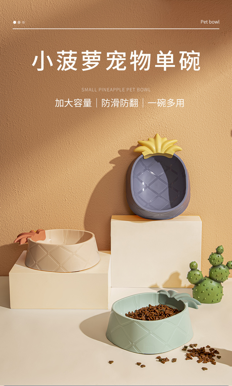 애완 동물 플라스틱 단일 그릇 만화 파인애플 딸기 애완 동물 그릇 스타일 목 보호 노크 방지 고양이 그릇 대용량 개 그릇