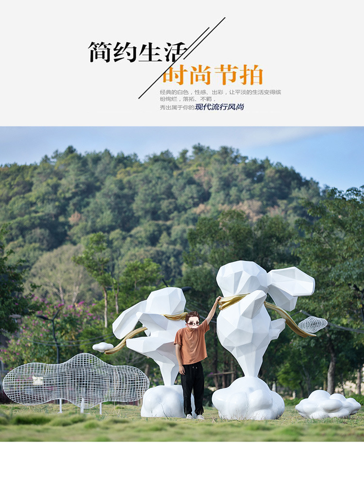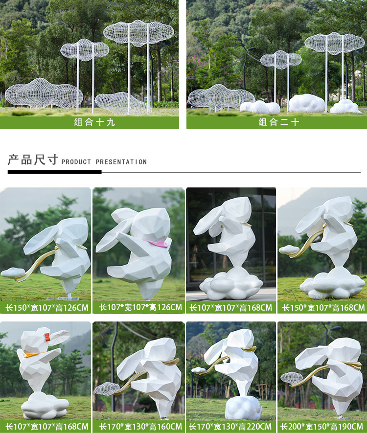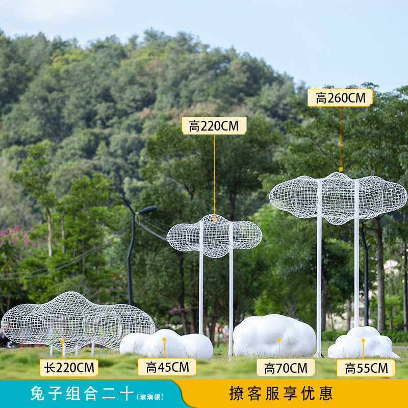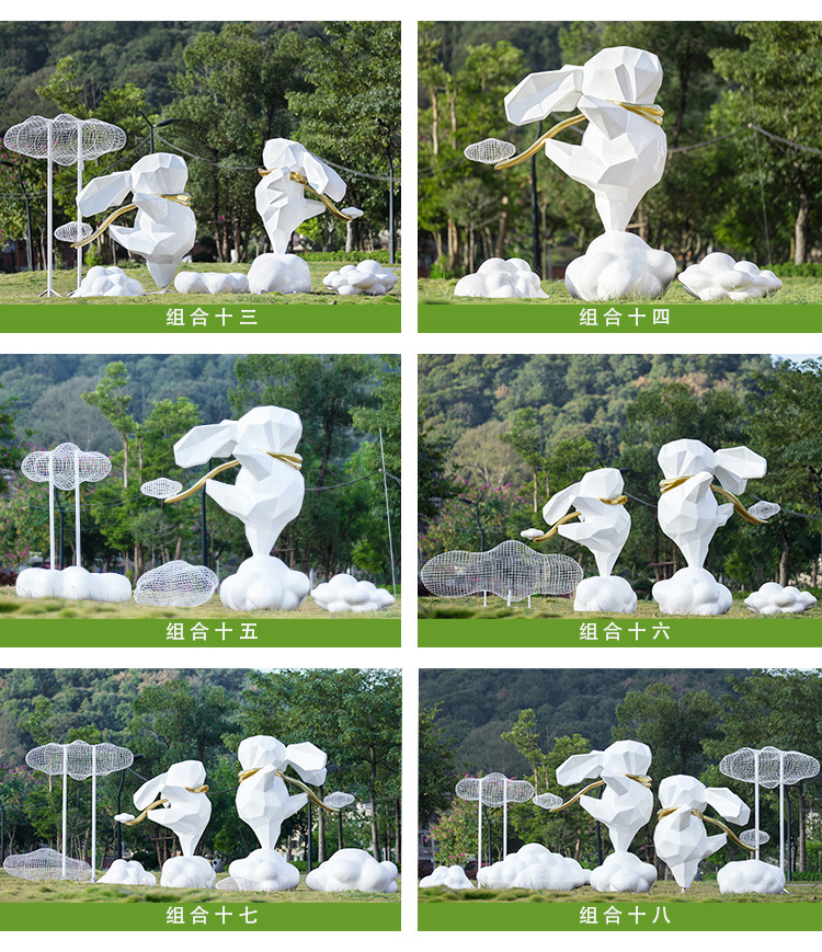야외 정원 풍경 유리 섬유 강화 플라스틱 조각 추상 기하학적 토끼 중공 구름 상점 입구 주거용 건물 장식품