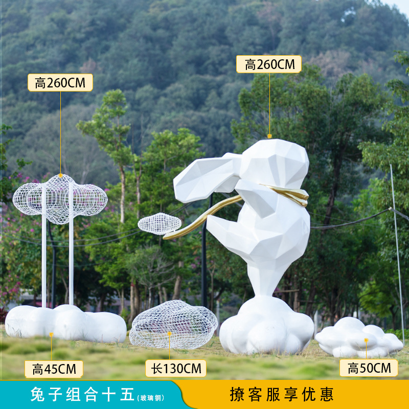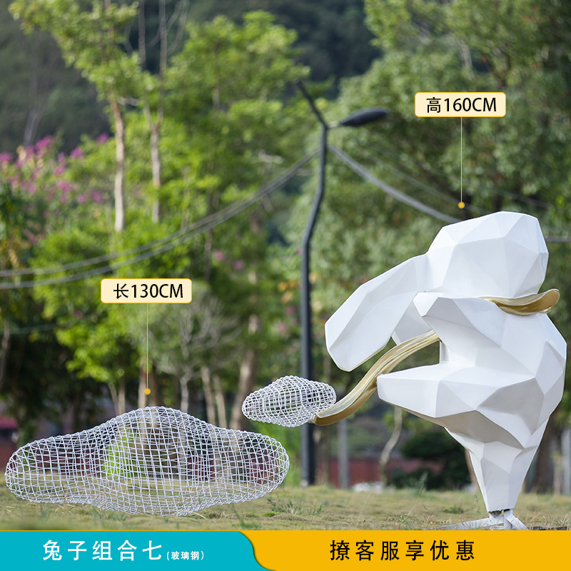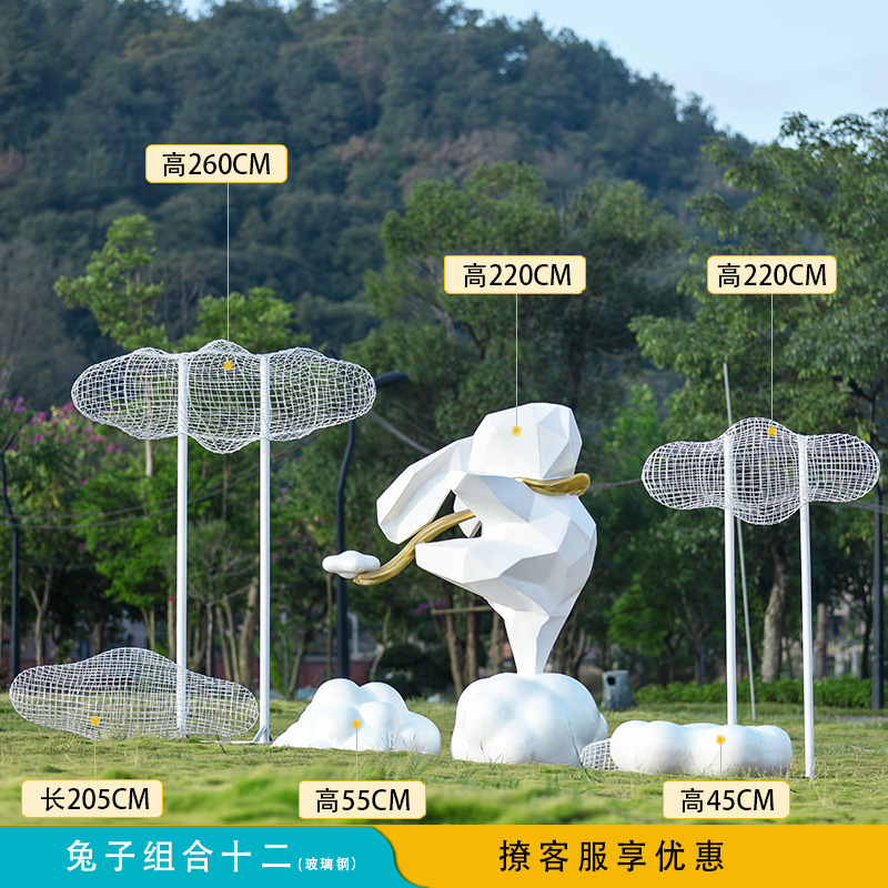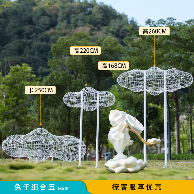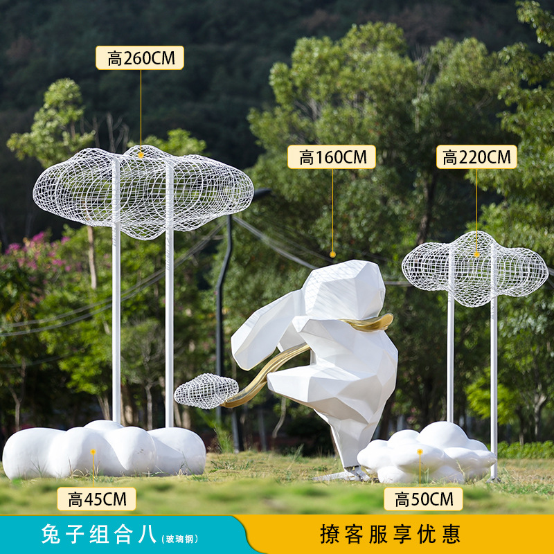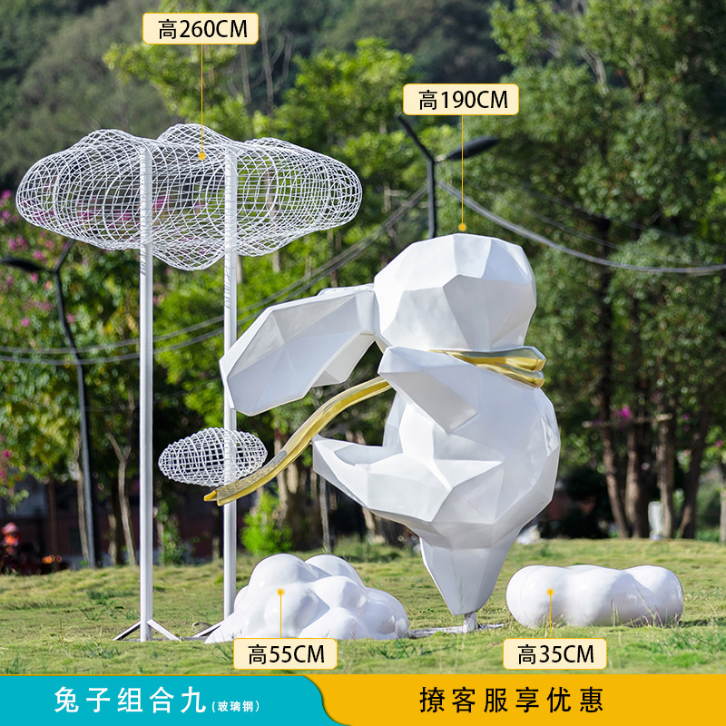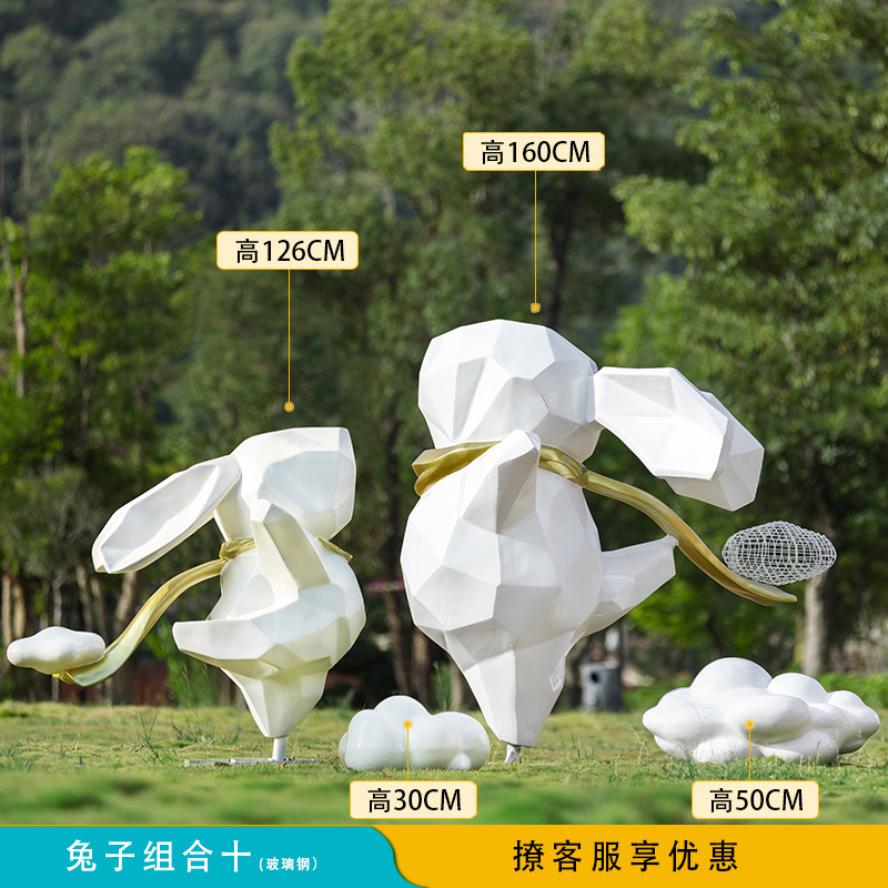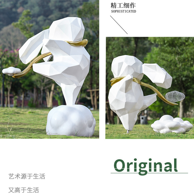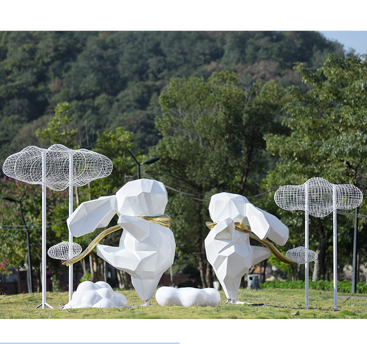 야외 정원 풍경 유리 섬유 강화 플라스틱 조각 추상 기하학적 토끼 중공 구름 상점 입구 주거용 건물 장식품스토어 가기