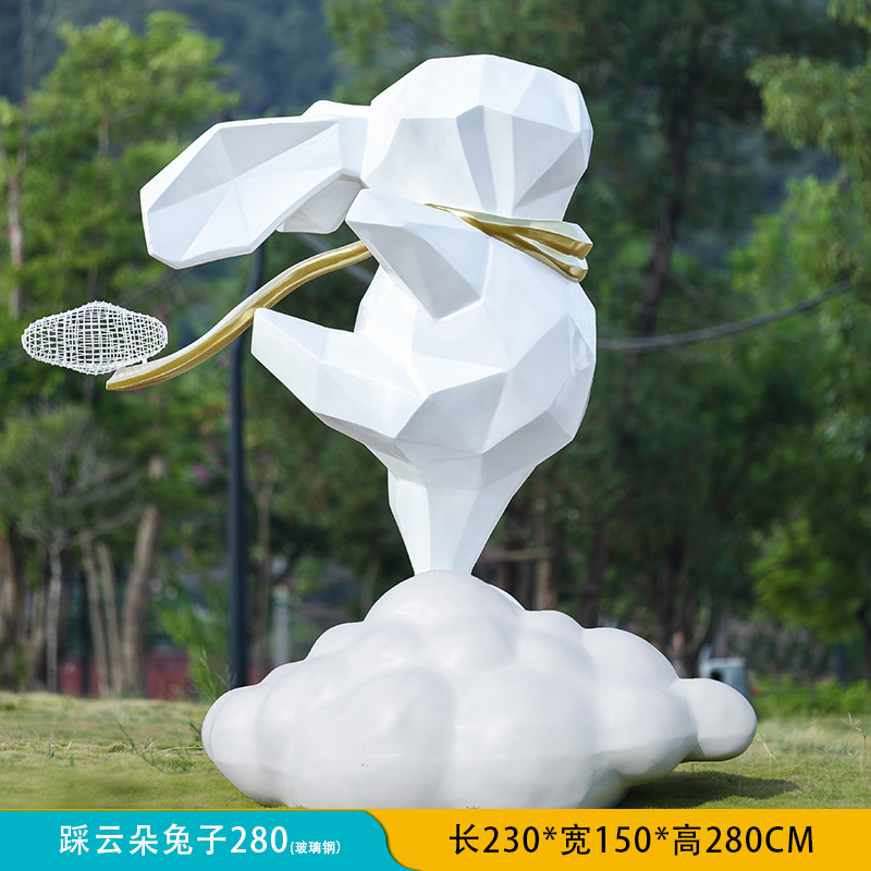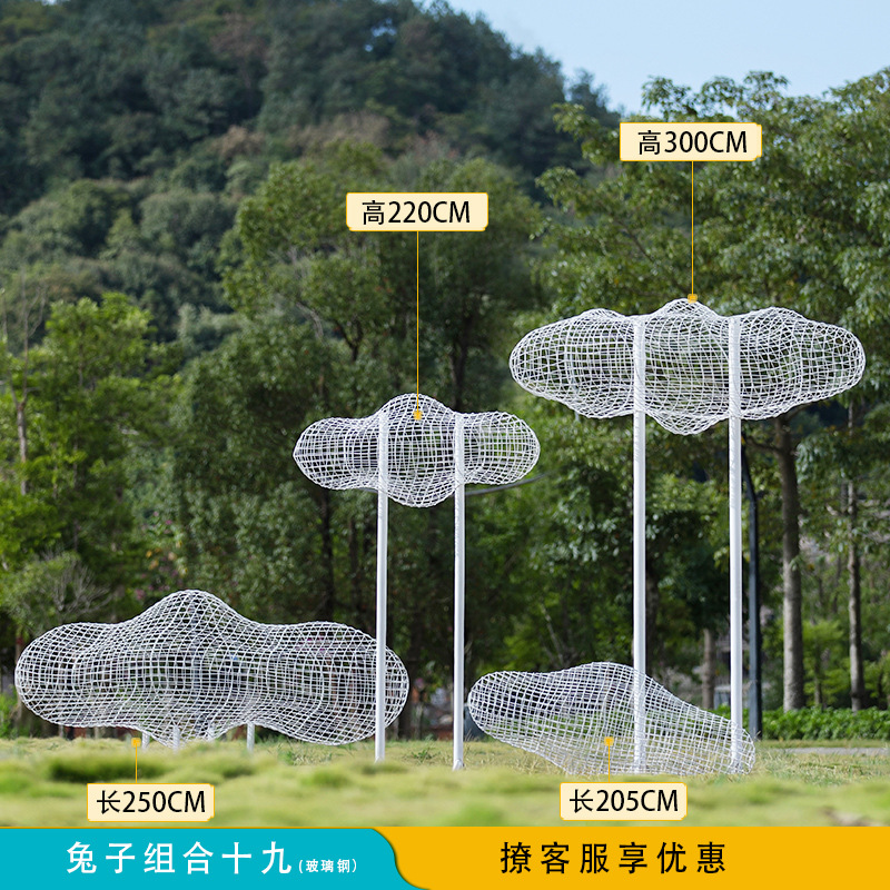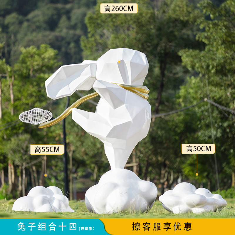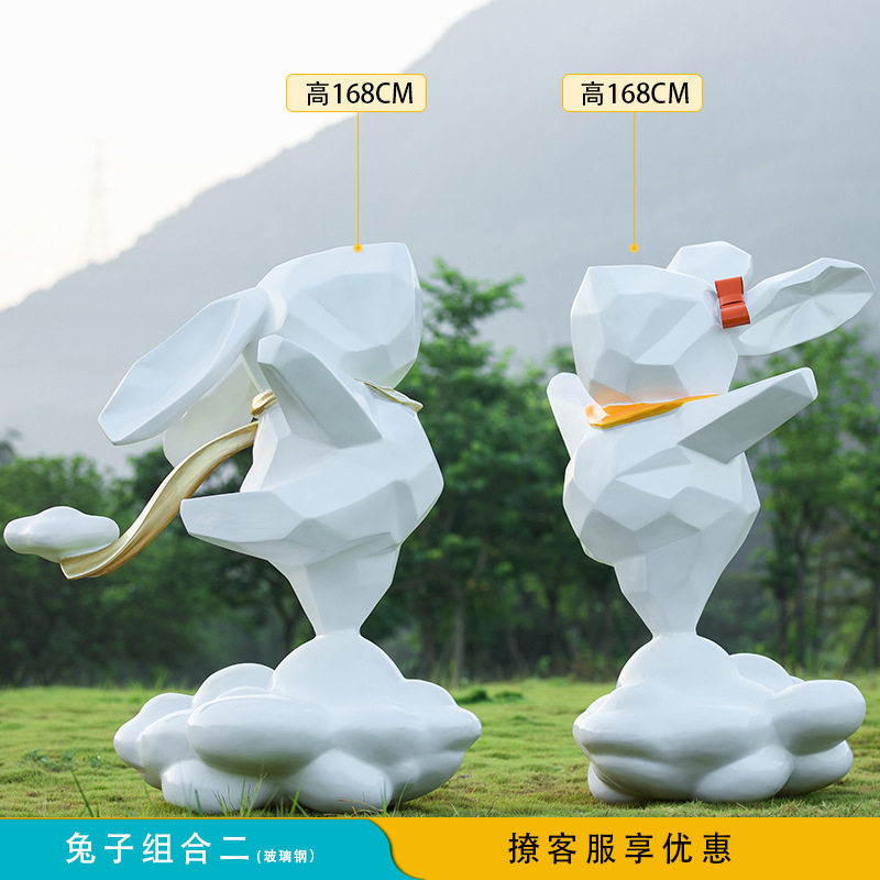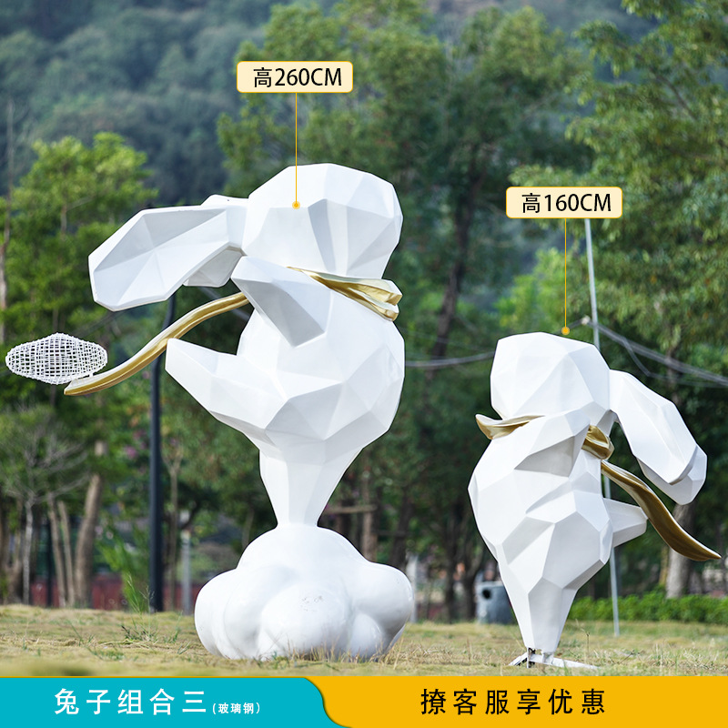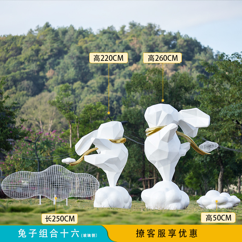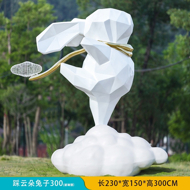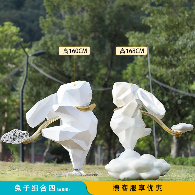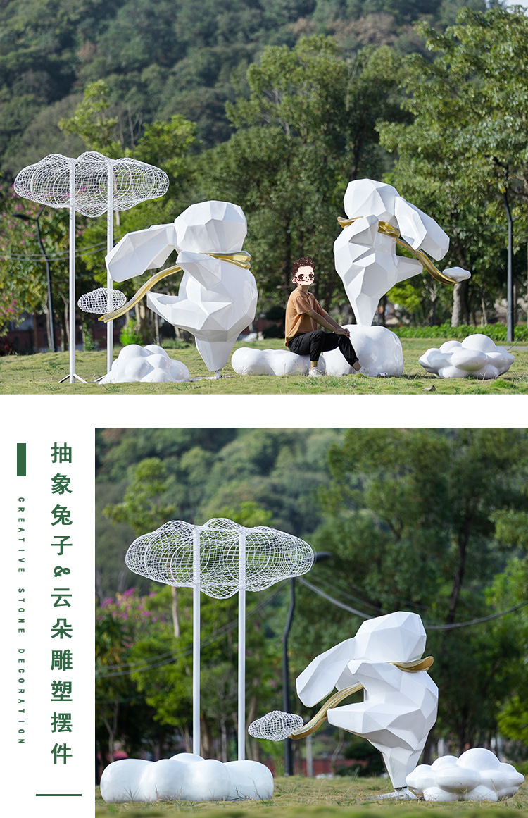 야외 정원 풍경 유리 섬유 강화 플라스틱 조각 추상 기하학적 토끼 중공 구름 상점 입구 주거용 건물 장식품스토어 가기