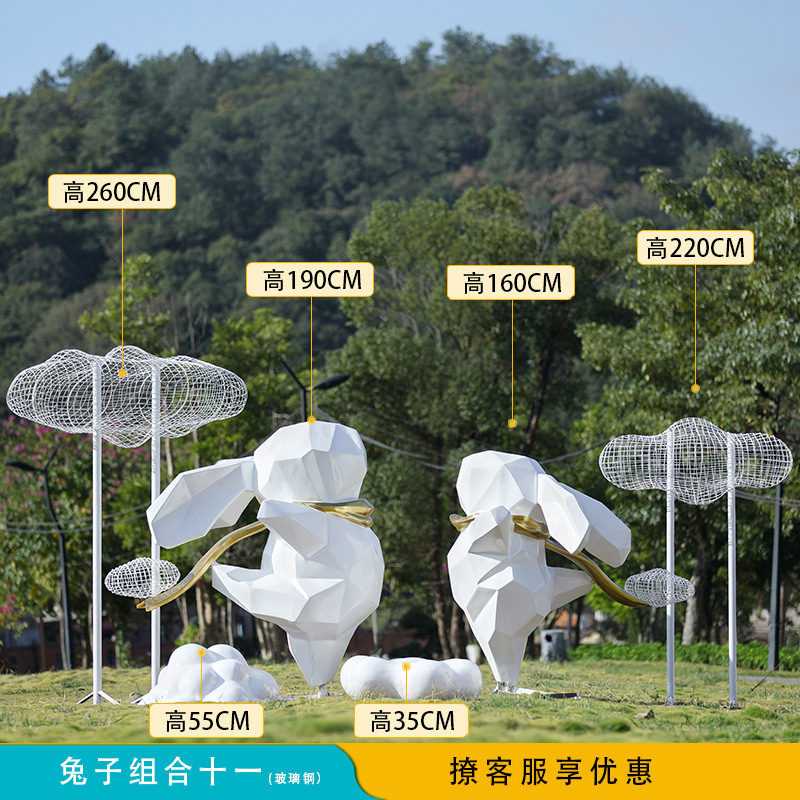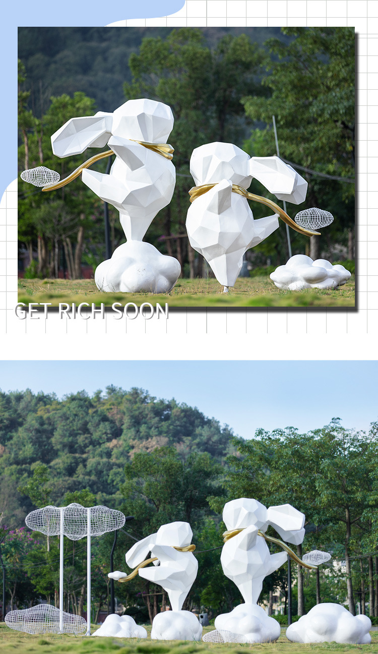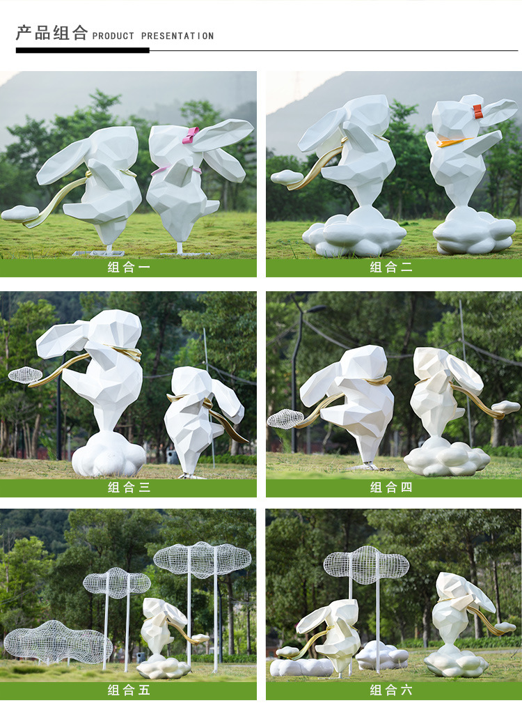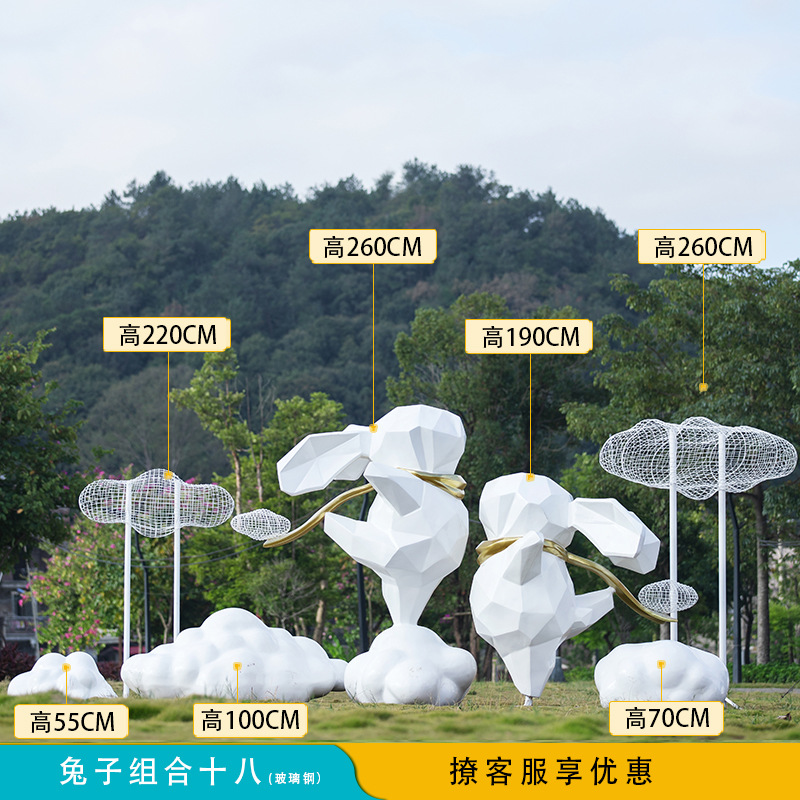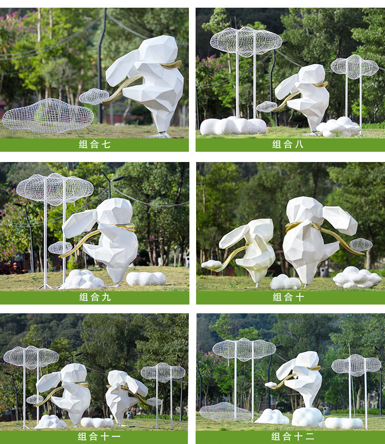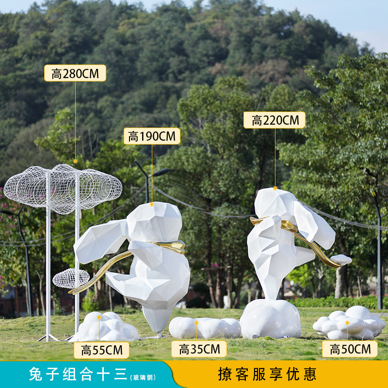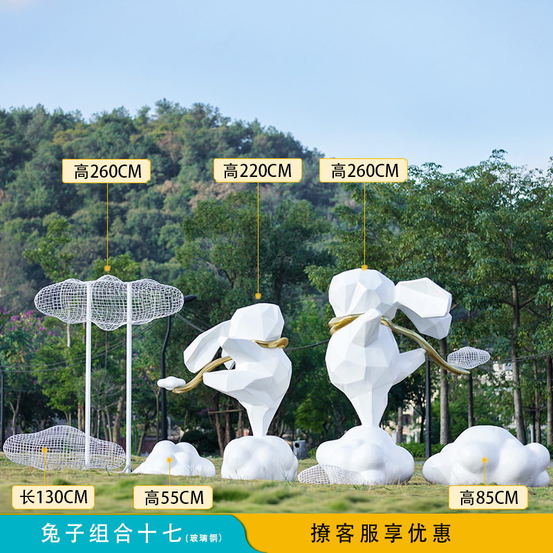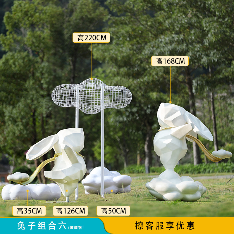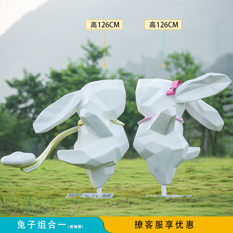 야외 정원 풍경 유리 섬유 강화 플라스틱 조각 추상 기하학적 토끼 중공 구름 상점 입구 주거용 건물 장식품스토어 가기
